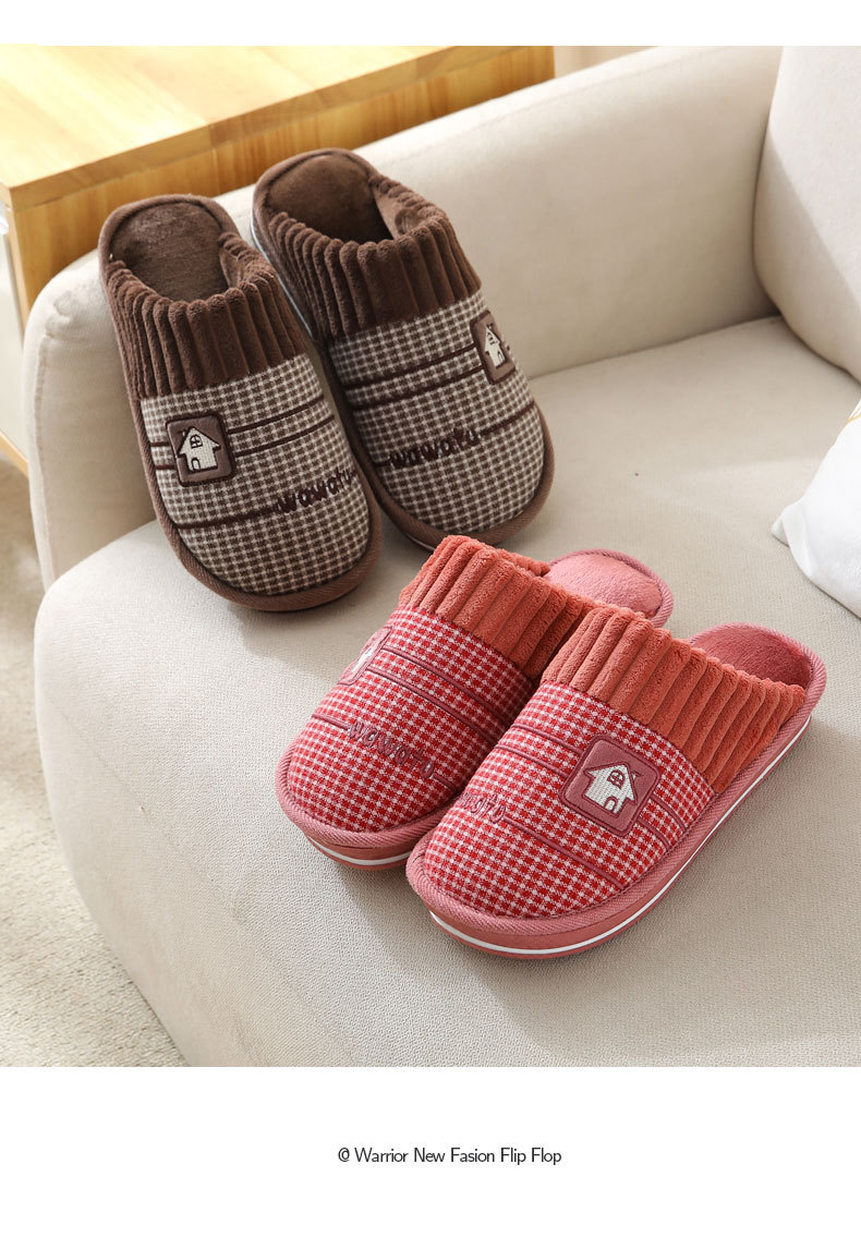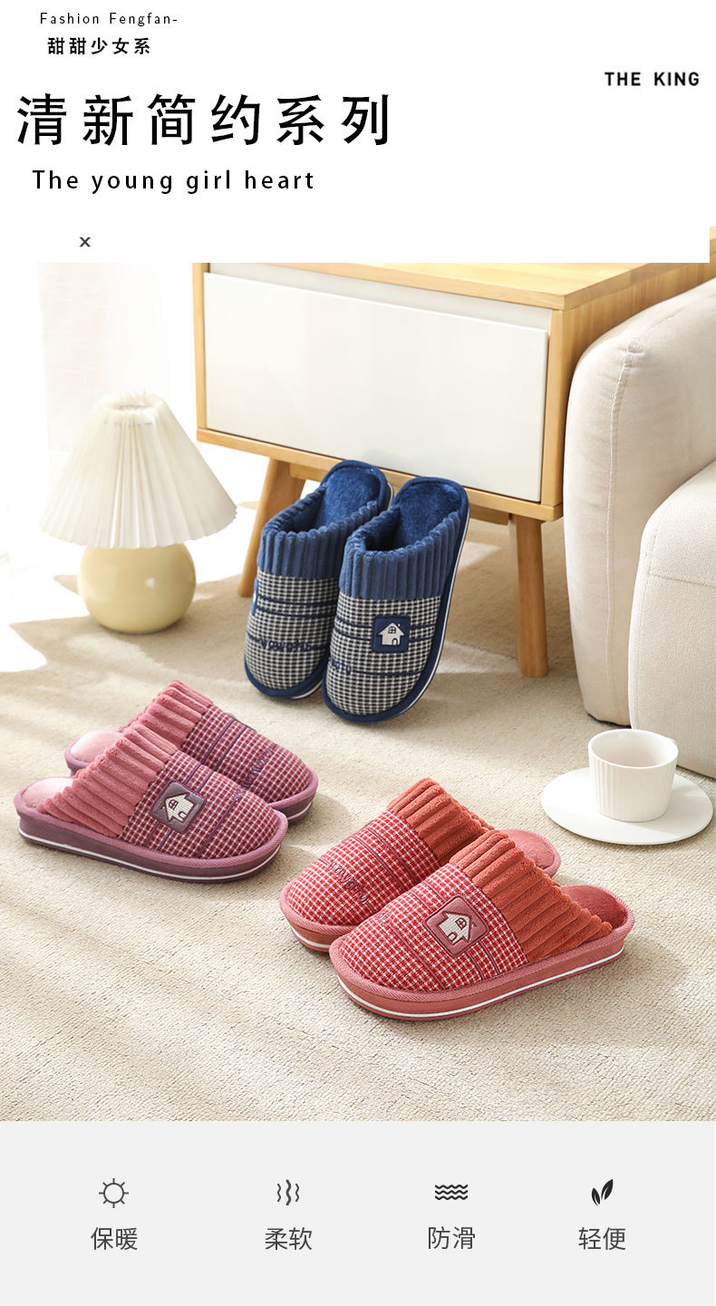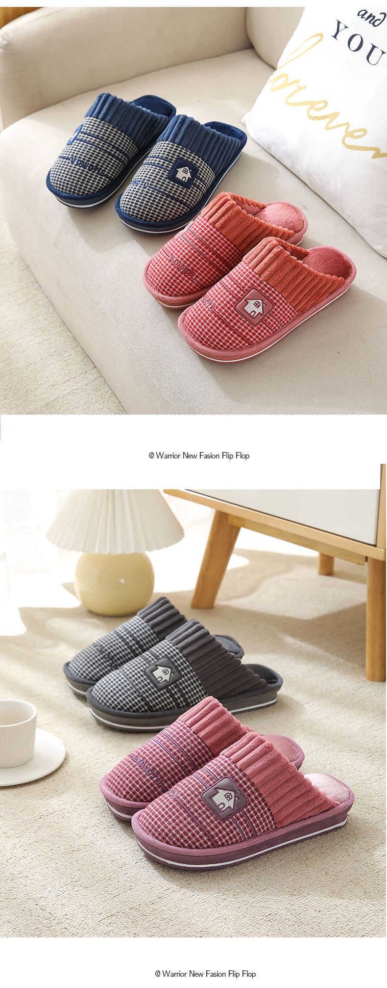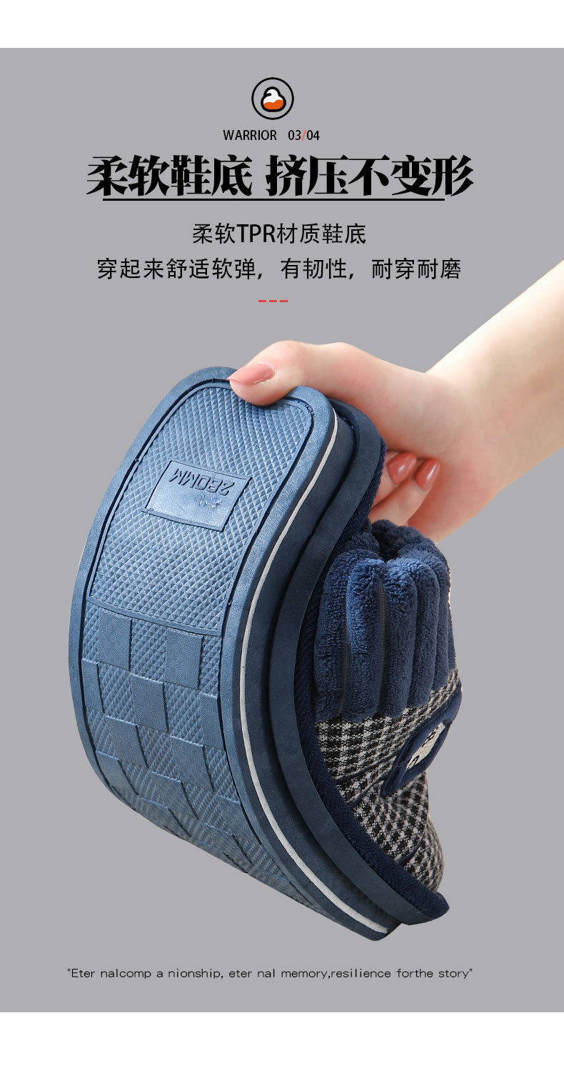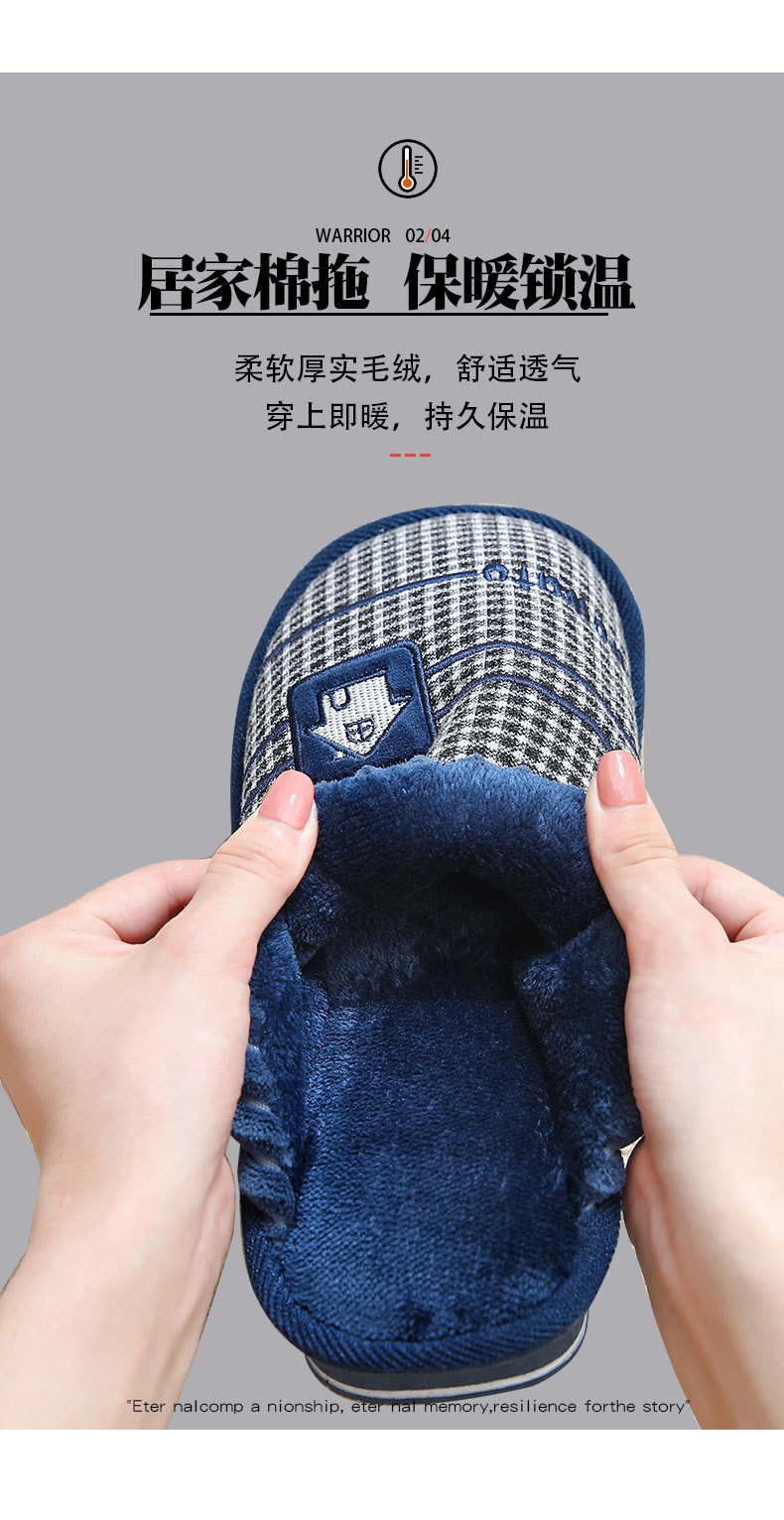 Men's Cotton Slippers for Autumn and Winter, Indoor Home Use, Fleece-Lined, Warm, Northern Home Use, Indoor Non-Slip, Large Size 4546