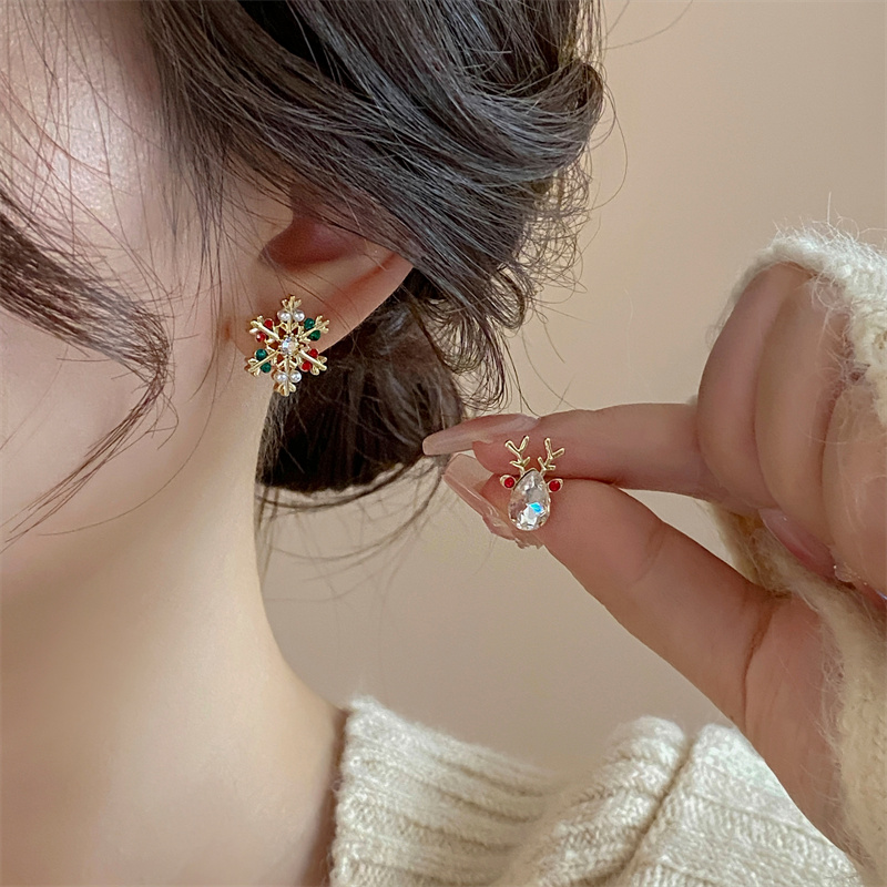 Exquisite Snowflake Elk Christmas Earrings for Women 2025 New Popular High-End Earrings Suitable for Winter Ear Accessories