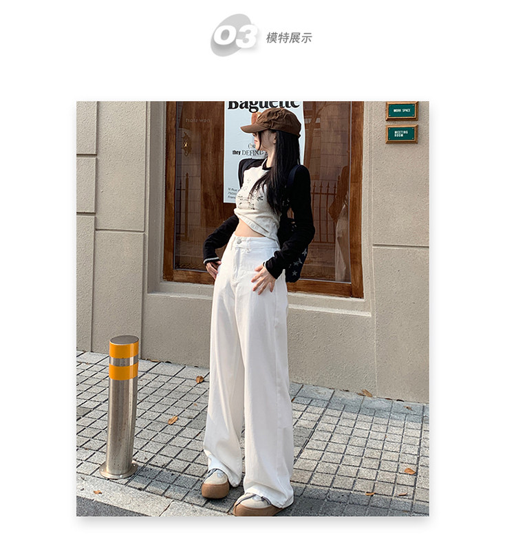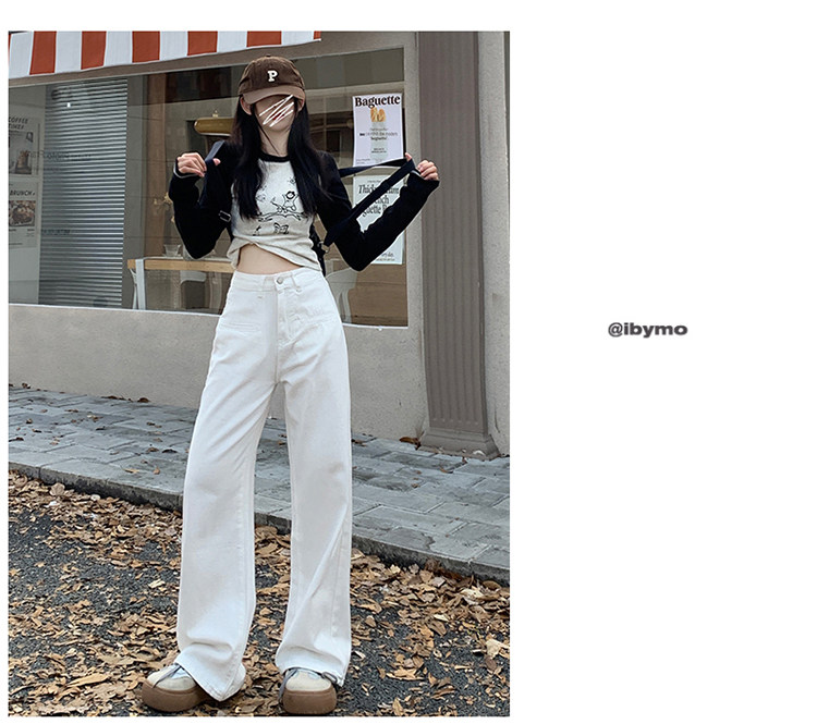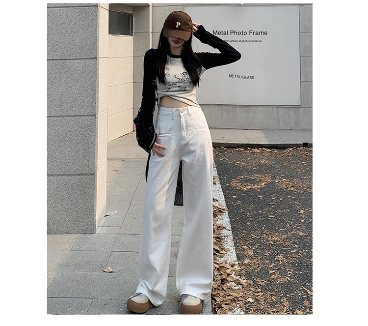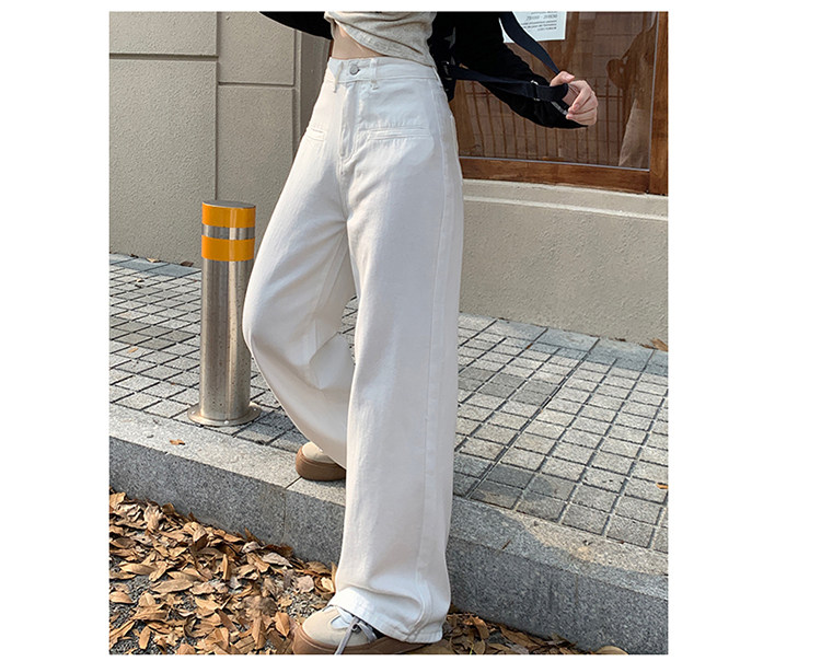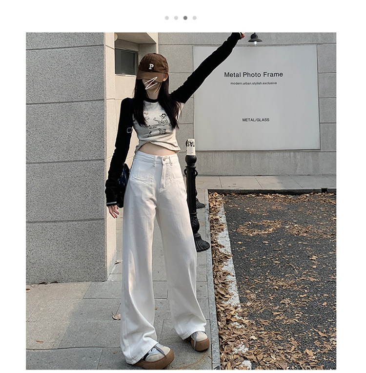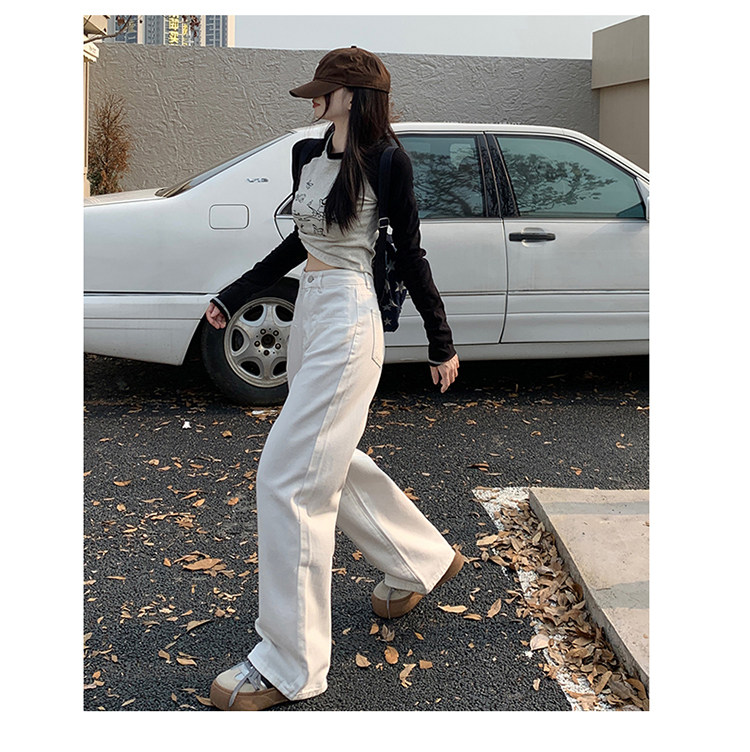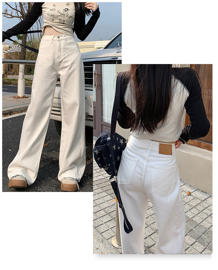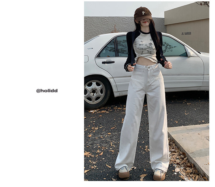 La Chapelle White Wide-Leg Jeans for Women, Winter 2026 New Style, Fleece-Lined, High-Waisted, Loose, Drapey Straight-Leg Pants