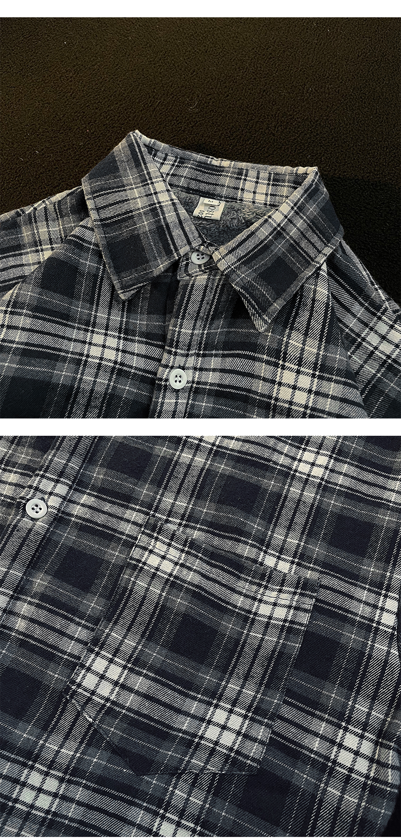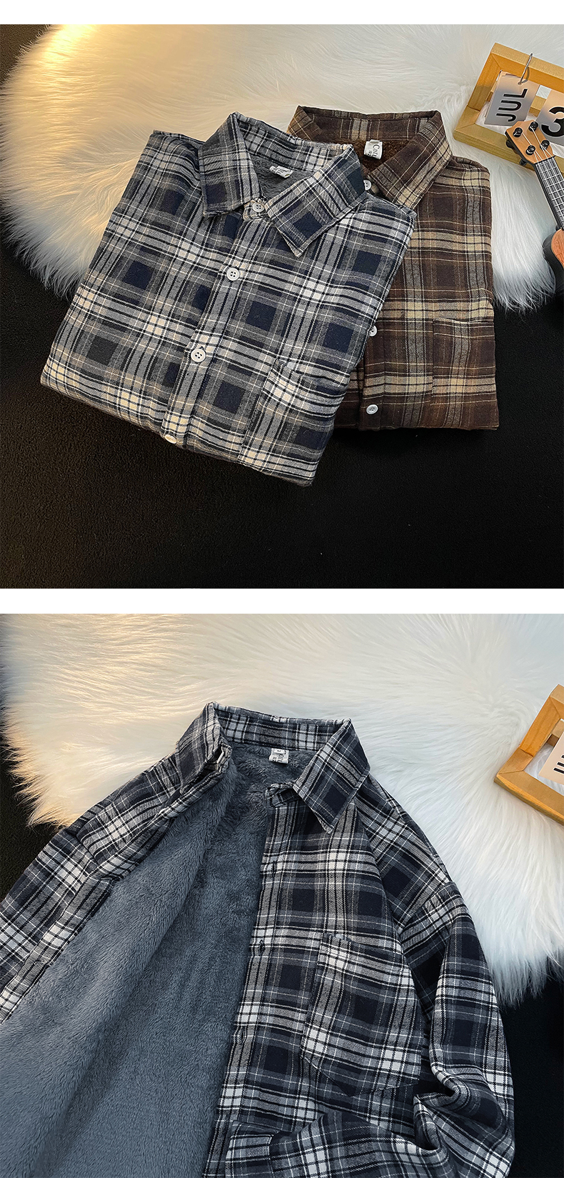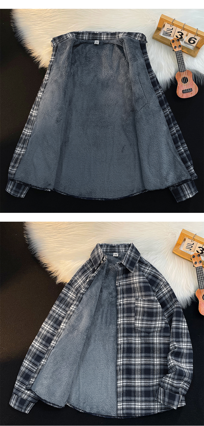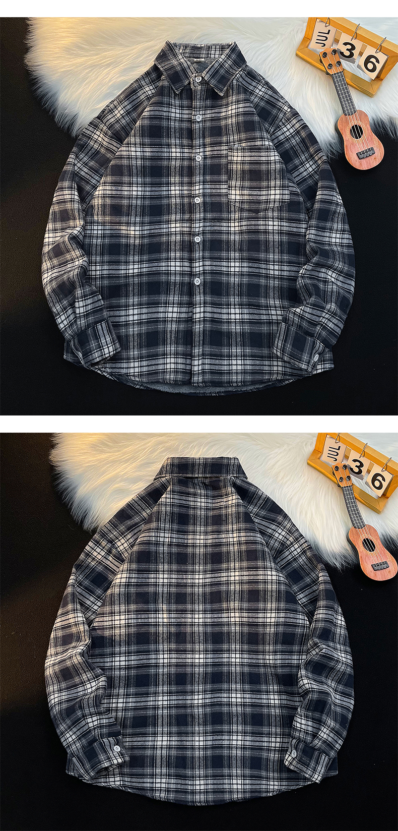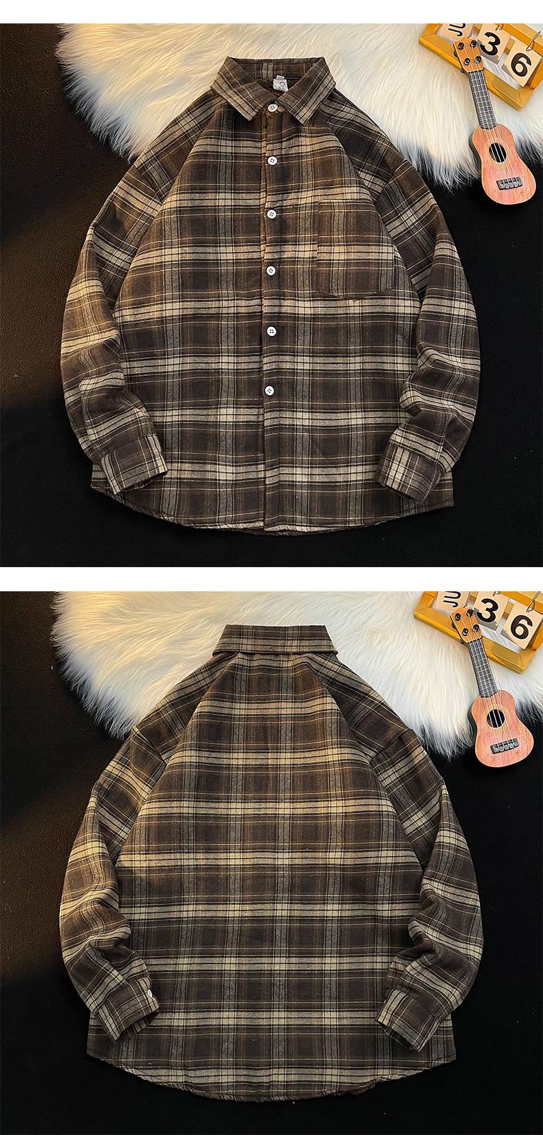 Autumn and Winter Fleece-Lined Thick Plaid Shirt for Men, Long-Sleeved, Japanese Retro Trendy Brand, Vintage Loose Casual Jacket