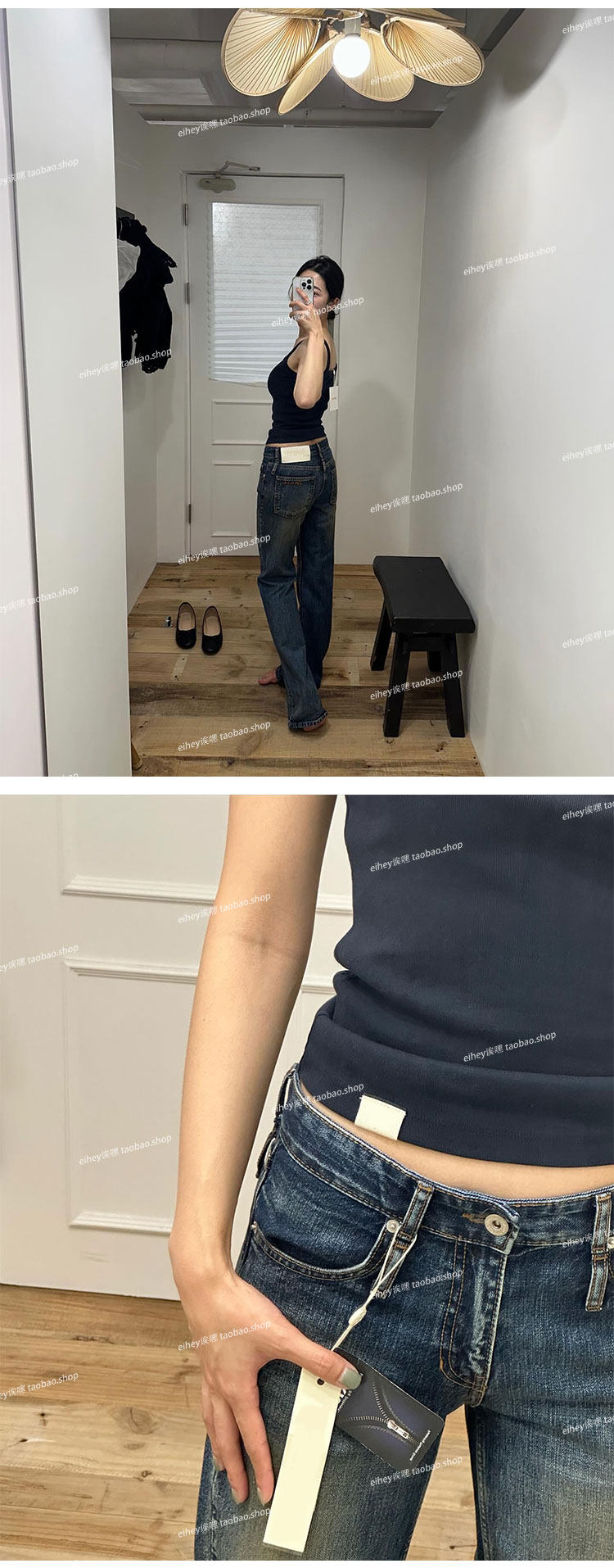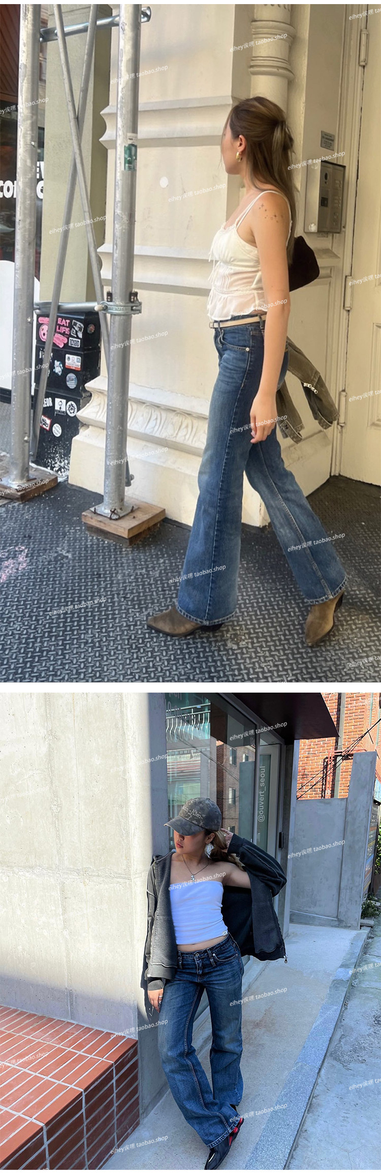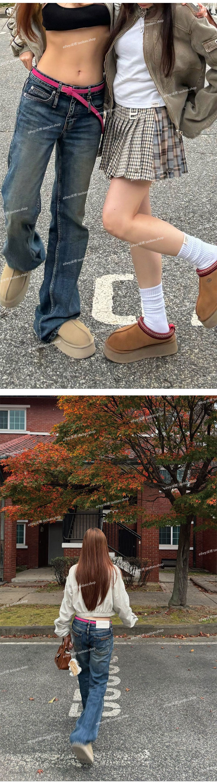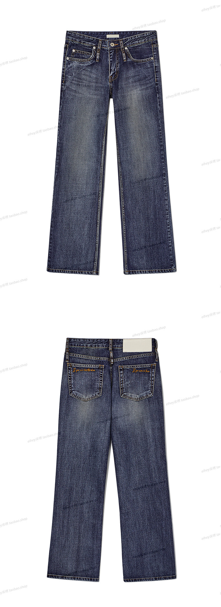 Eihey Low-Waisted Slim Straight Casual Loose Distressed Faded Washed Denim Jeans Wide-Leg Pants for Women