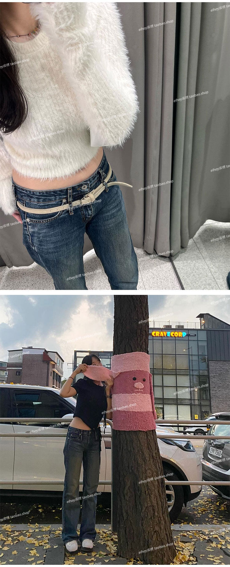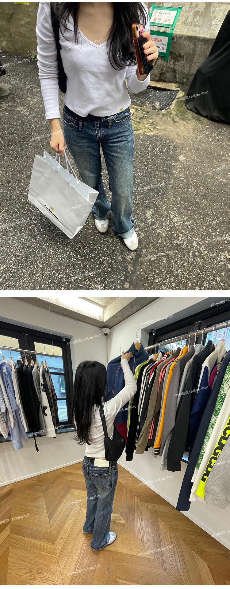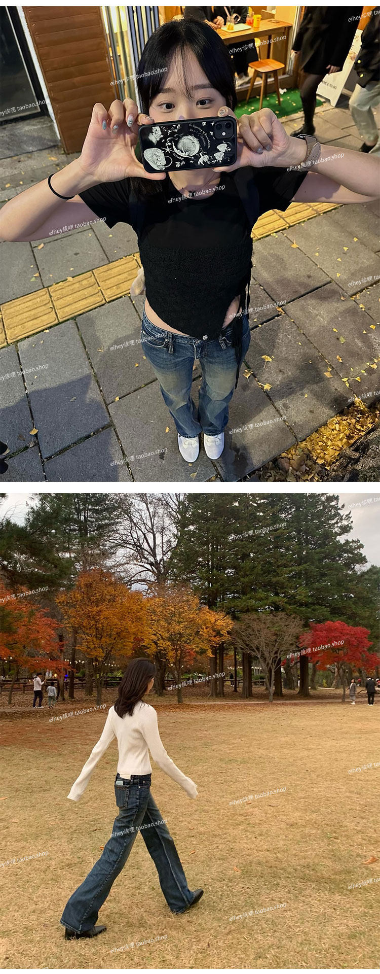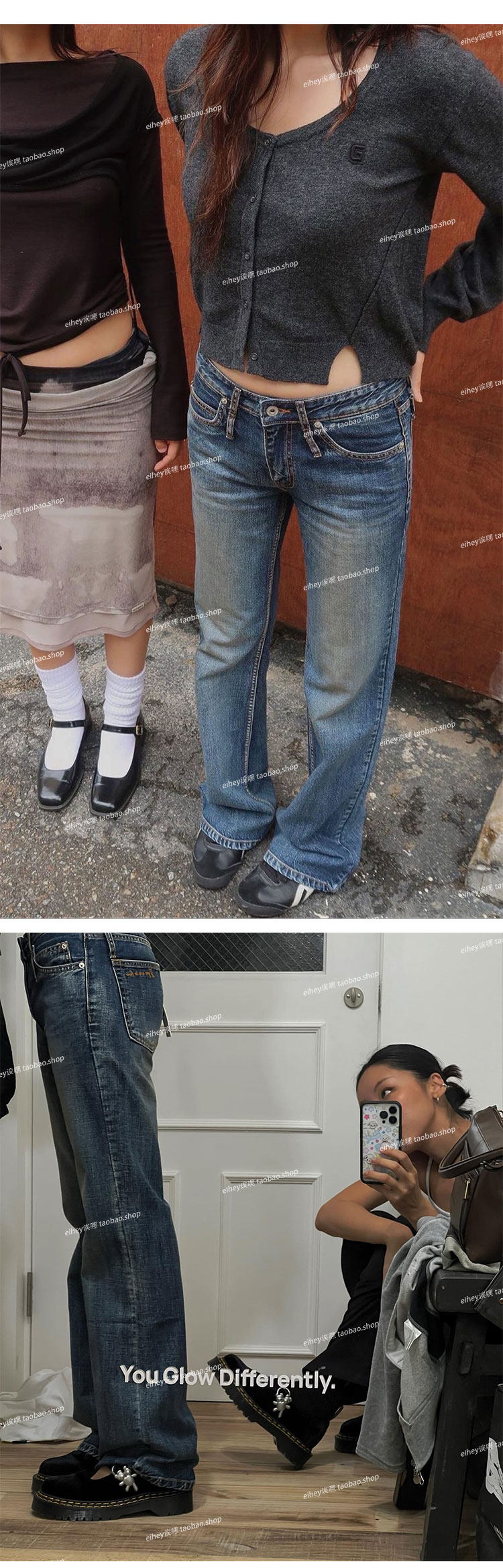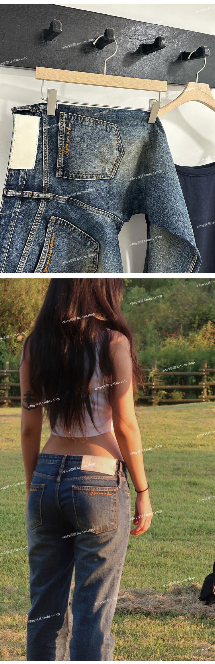 Eihey Low-Waisted Slim Straight Casual Loose Distressed Faded Washed Denim Jeans Wide-Leg Pants for Women