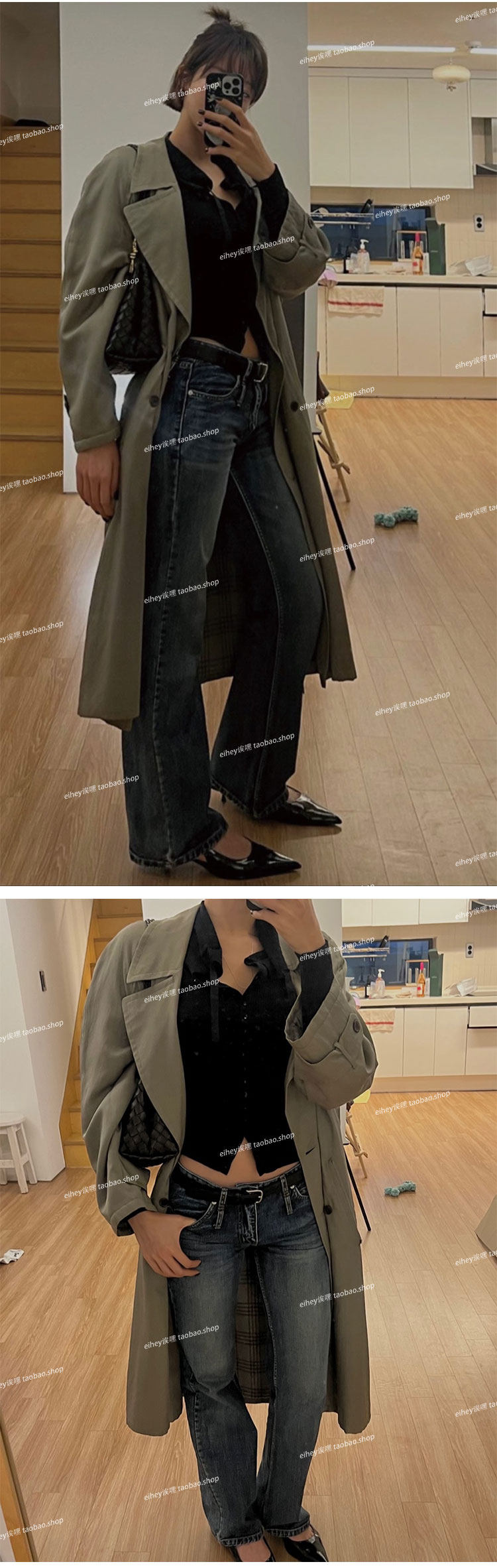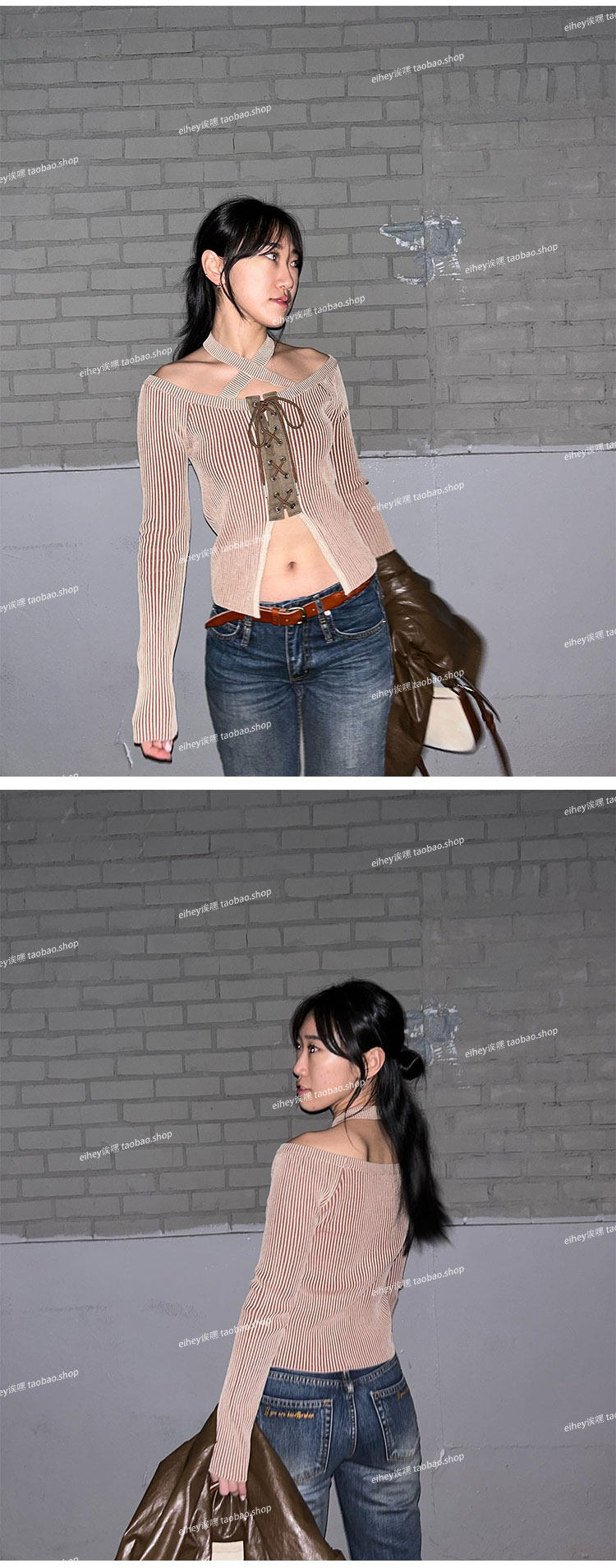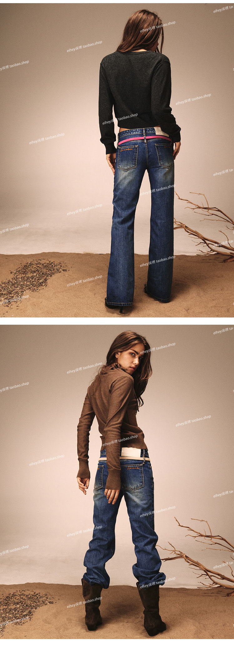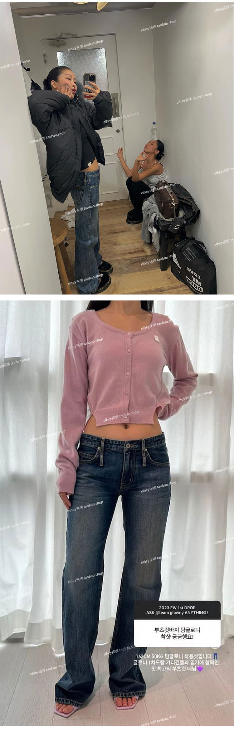 Eihey Low-Waisted Slim Straight Casual Loose Distressed Faded Washed Denim Jeans Wide-Leg Pants for Women
