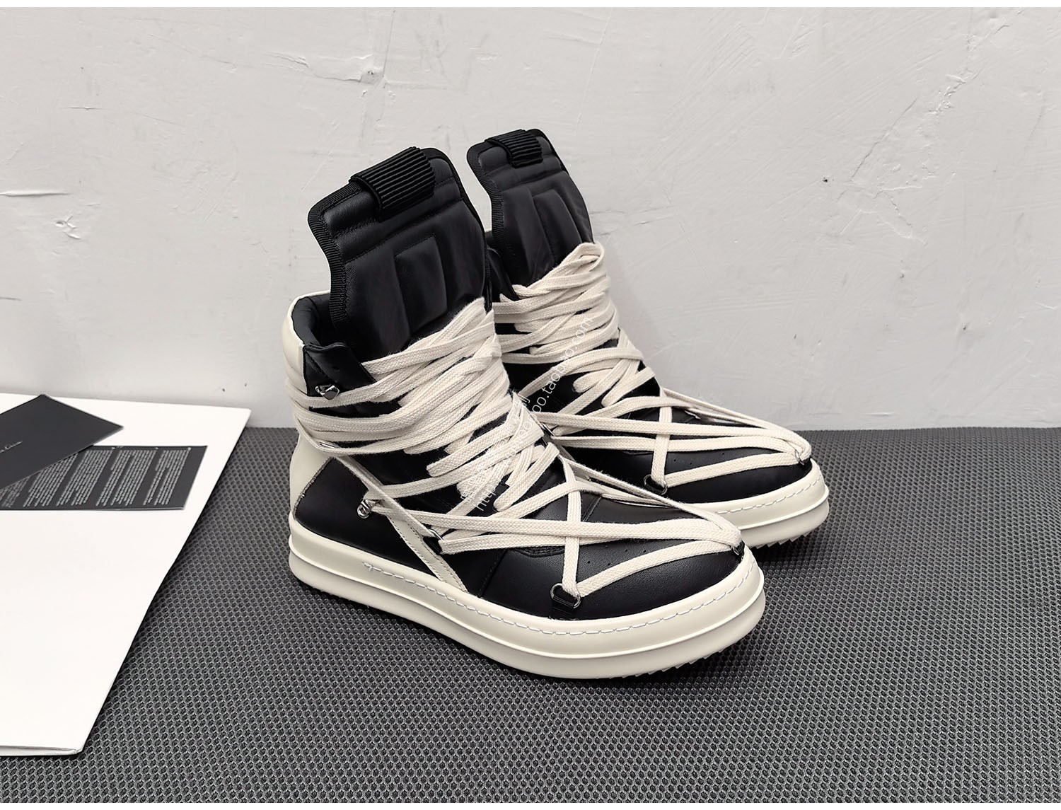 Autumn and Winter High-Top Shoes for Men, Inverted Triangle, Five-Pointed Star, Six-Pointed Star, Mummy Straps, Genuine Leather, Thick-Soled Height-Increasing Sneakers