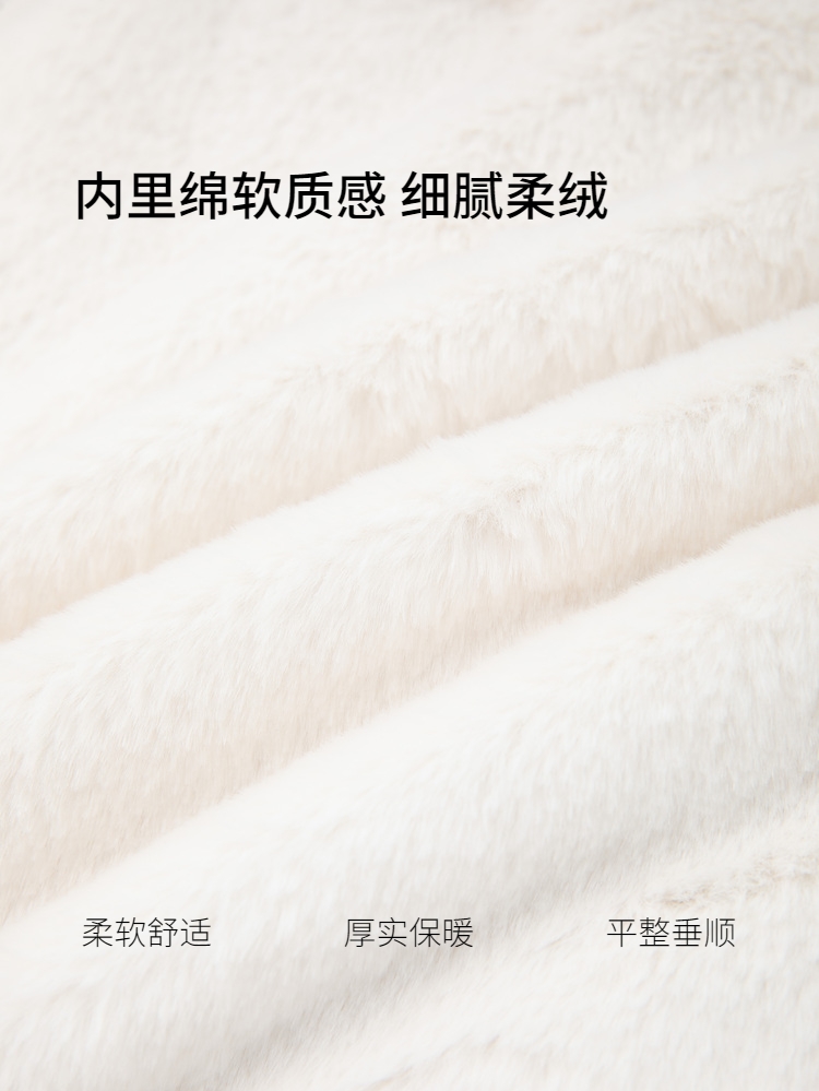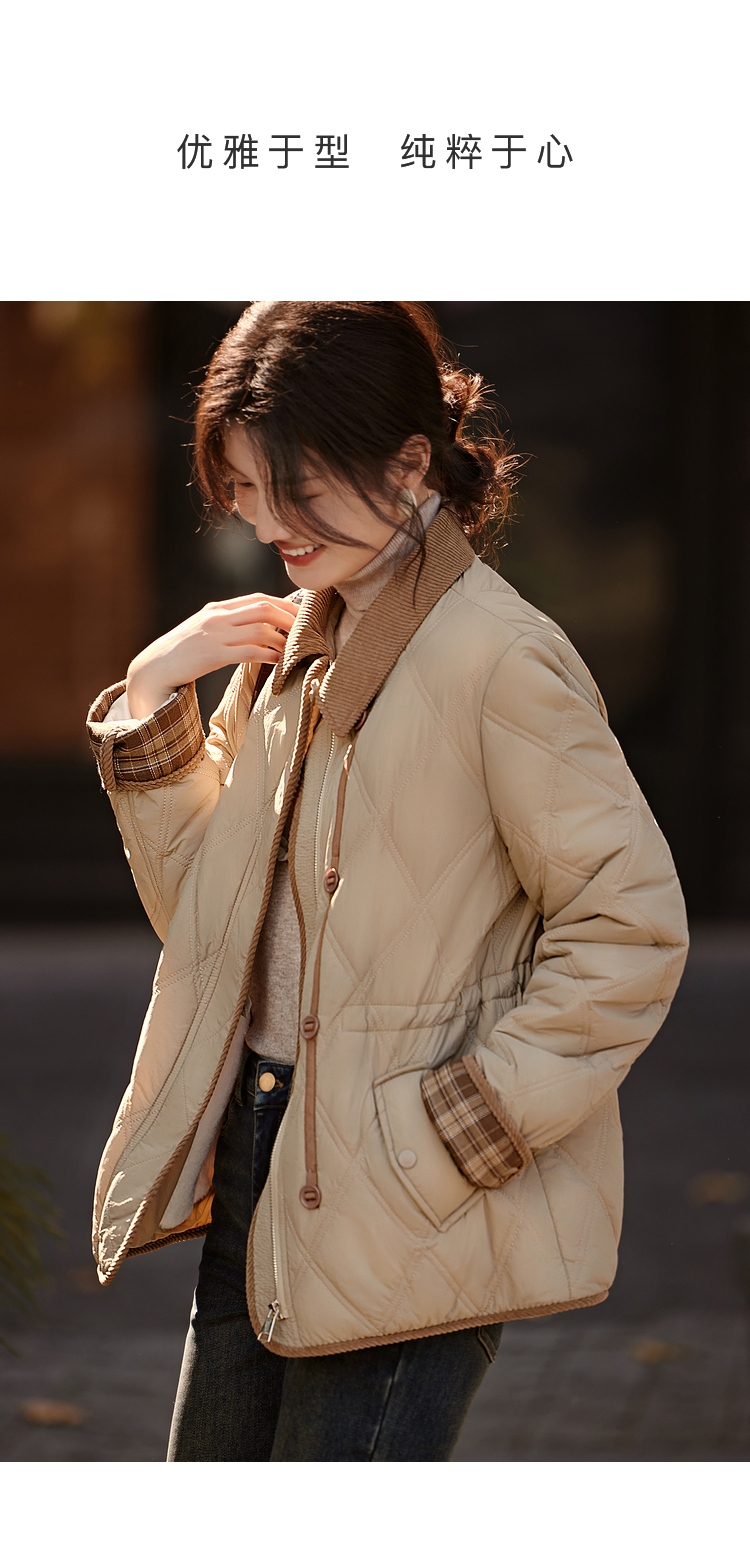 Xwi Xinwei Faux Rabbit Fur Plaid Color-Blocked Quilted Cotton Jacket for Women, Autumn and Winter Drawstring Design Cotton Coat Top