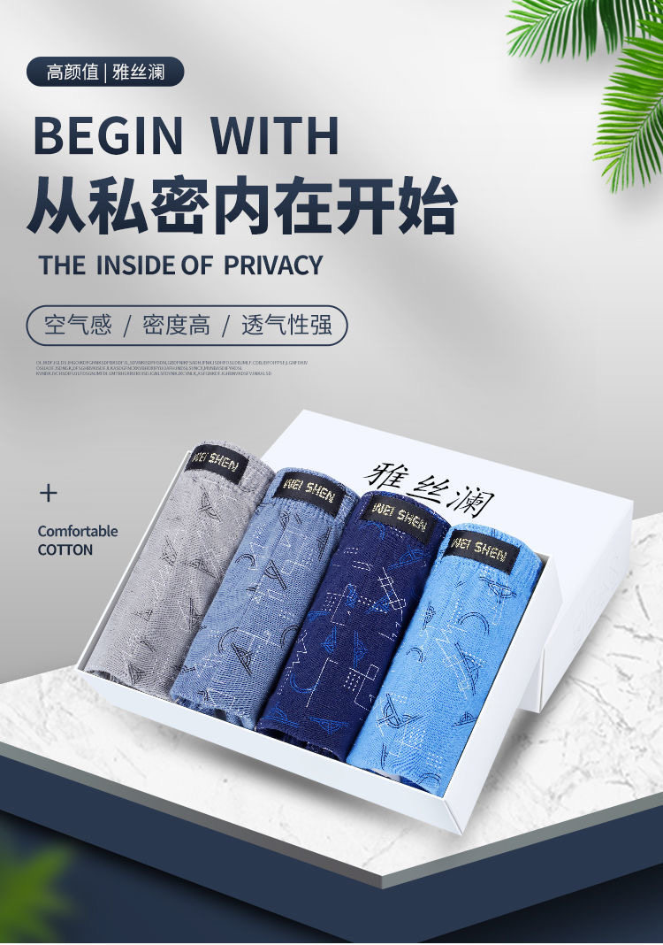 [Yasilan] Men's Briefs, Pure Cotton, Mid-Waist, Youth Modal, Plus Size, 100% Cotton