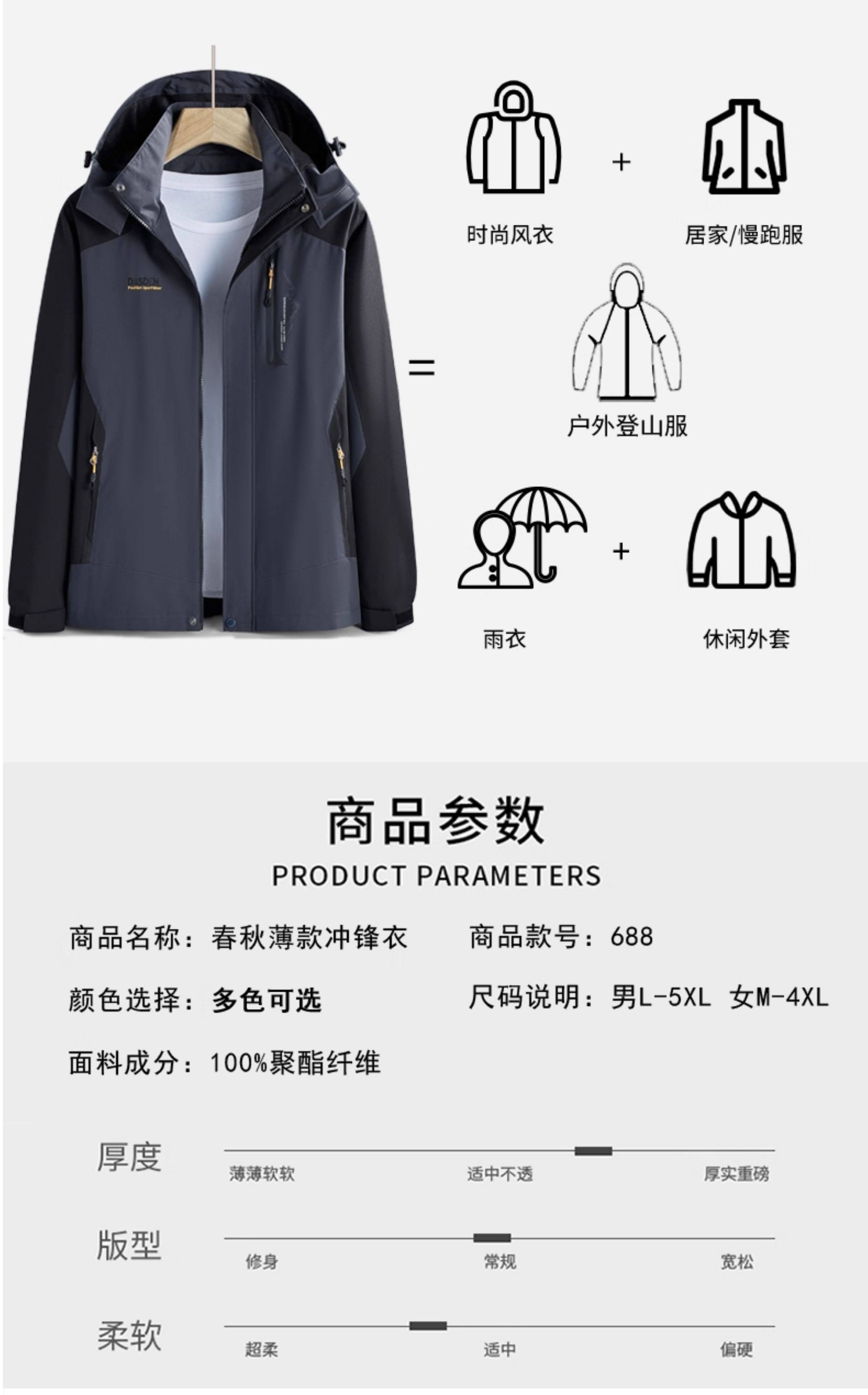 Clearance Sale: Men's and Women's Spring and Autumn Lightweight Outdoor Fashion Brand Windproof, Waterproof, Breathable Jacket, Single-Layer Jacket