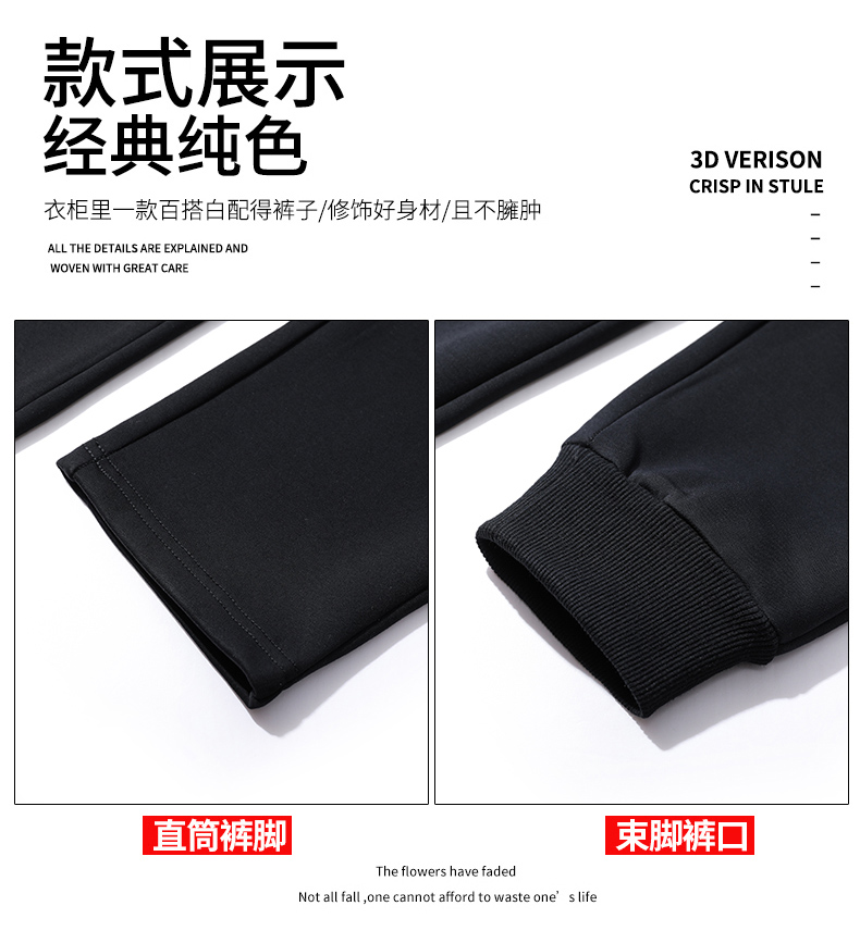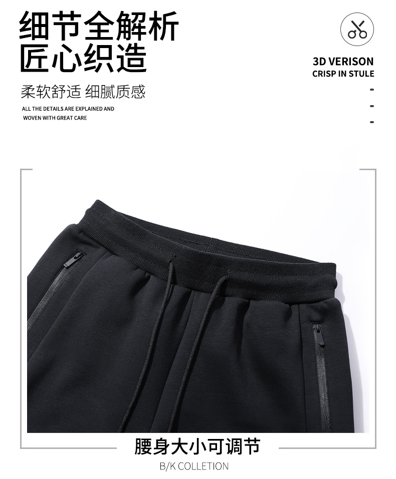 Men's Loose-Fitting Long Sweatpants, Thin Pure Cotton Straight-Leg Zippered Knit Spring and Autumn Style, Fleece-Lined Casual Cuffed Joggers