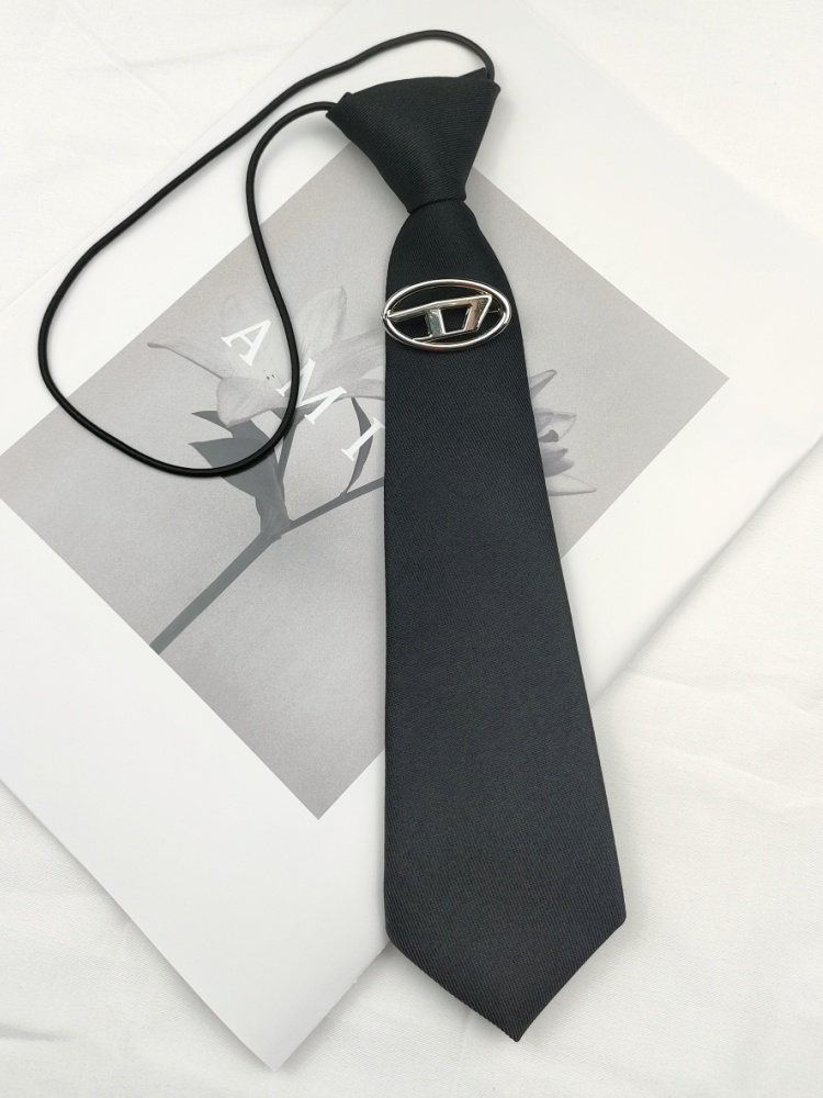 Unique Design Metal D Letter Tie for Women, Trendy College Style Shirt and Suit, No Need to Tie, Lazy Style