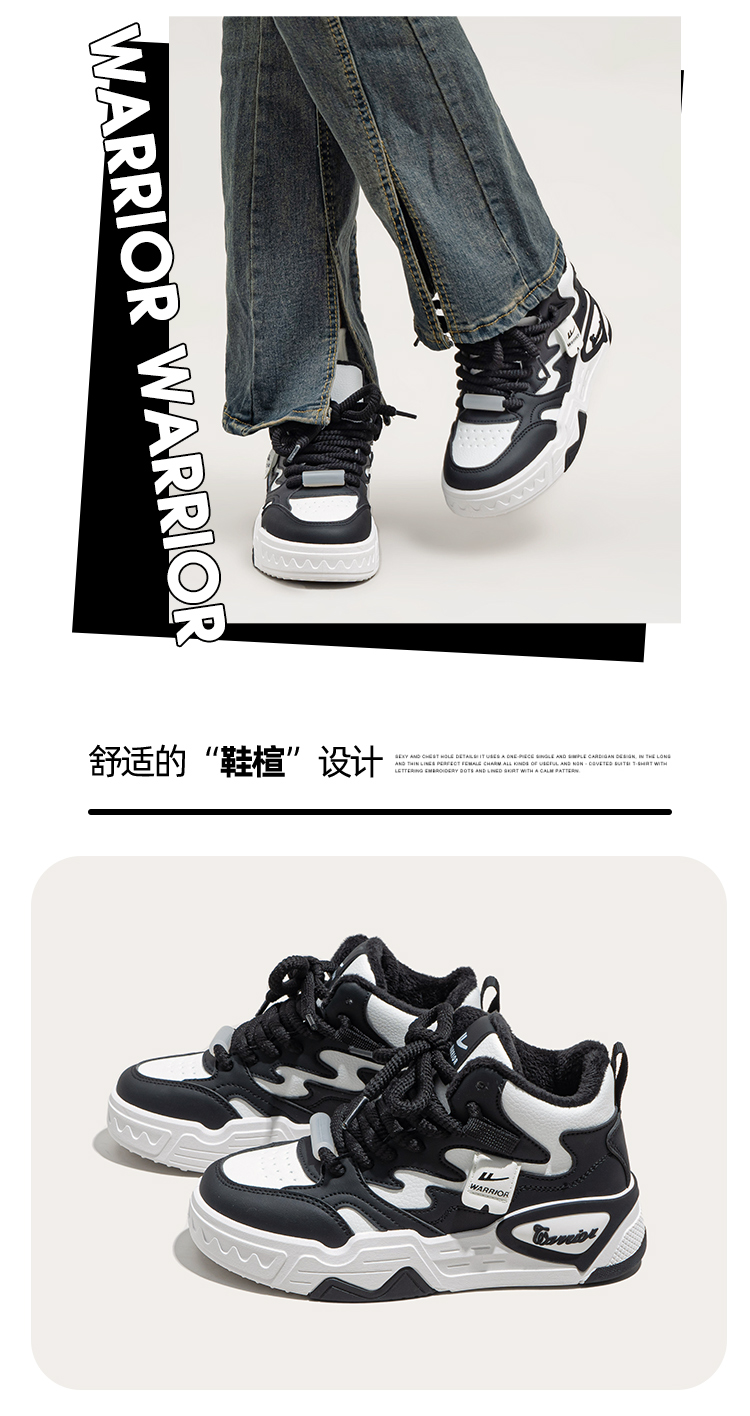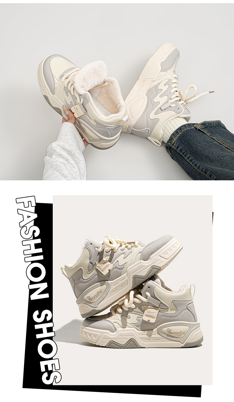 Pull-Back High-Top Shoes for Women, 2025 Autumn and Winter New Style, Women's Shoes with Plush Lining, Thick Soles, Trendy and Versatile, Double-Layer Cotton Sneakers for Women