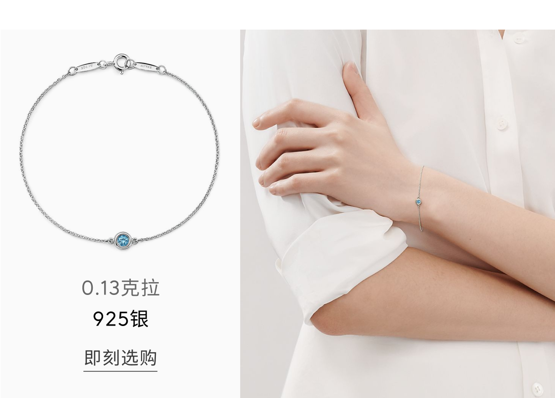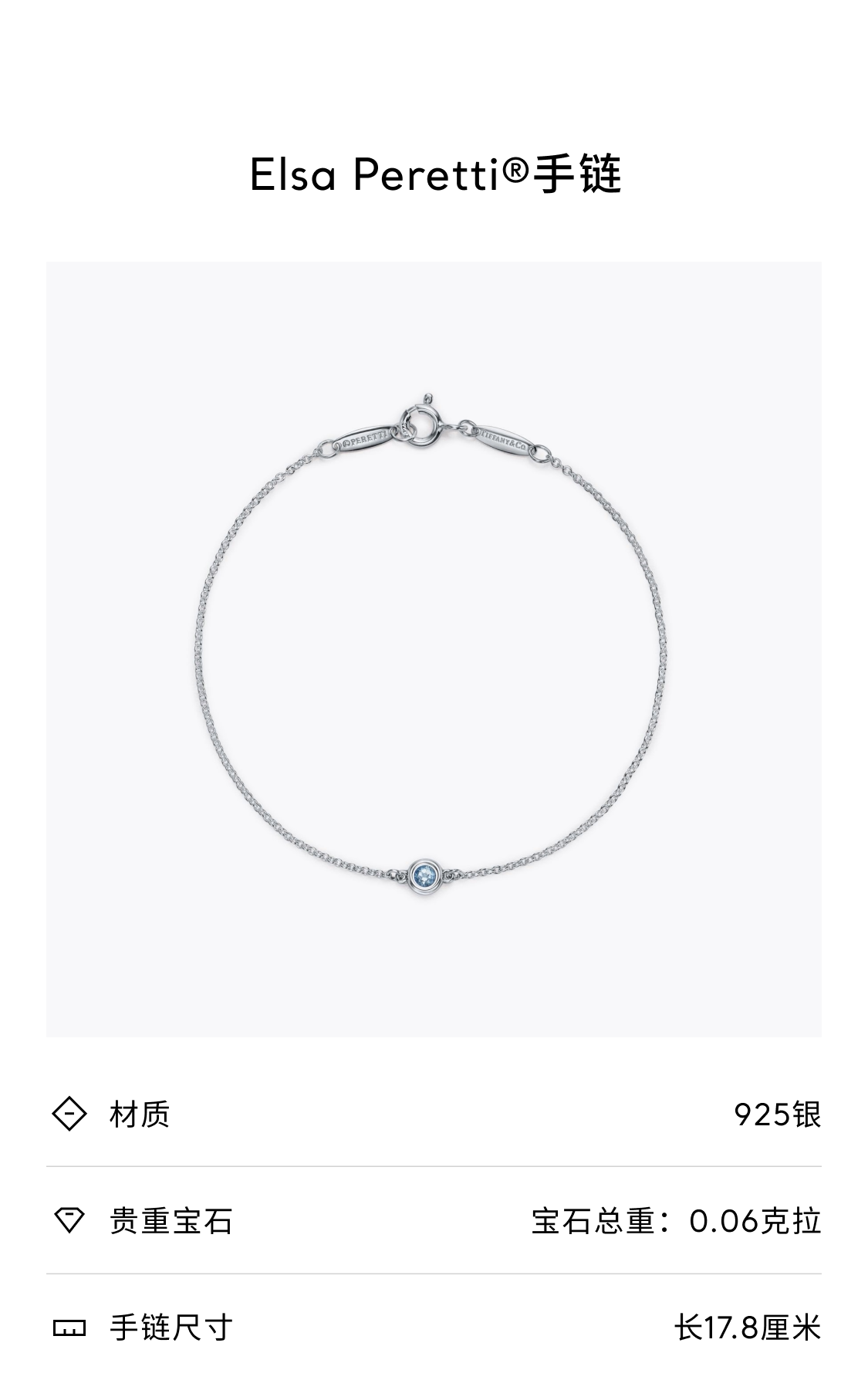 Tiffany 蒂芙尼 Elsa Peretti® 系列 海蓝宝石手链【礼物】