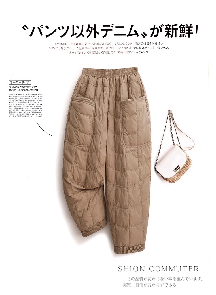 Clearance Sale~ Petite Women's down Cotton Pants for Outdoor Wear, Winter Padded Casual Harem Pants, Slimming Mom Pants