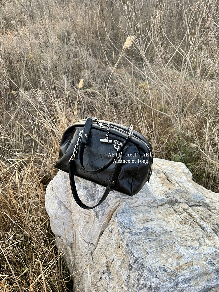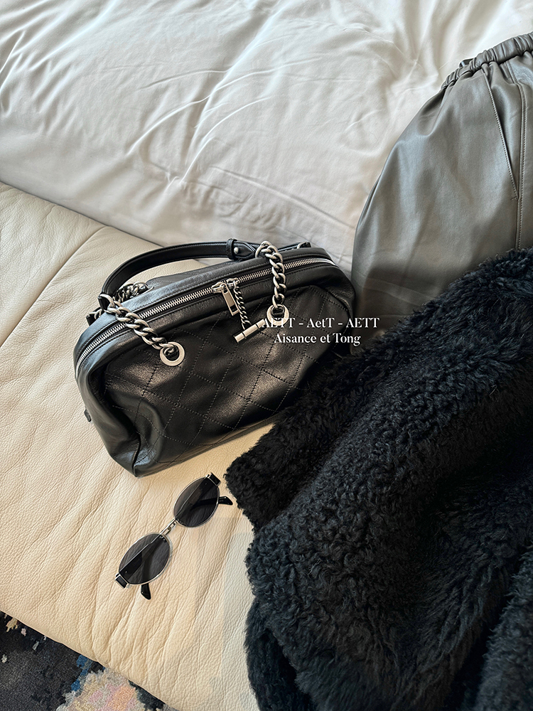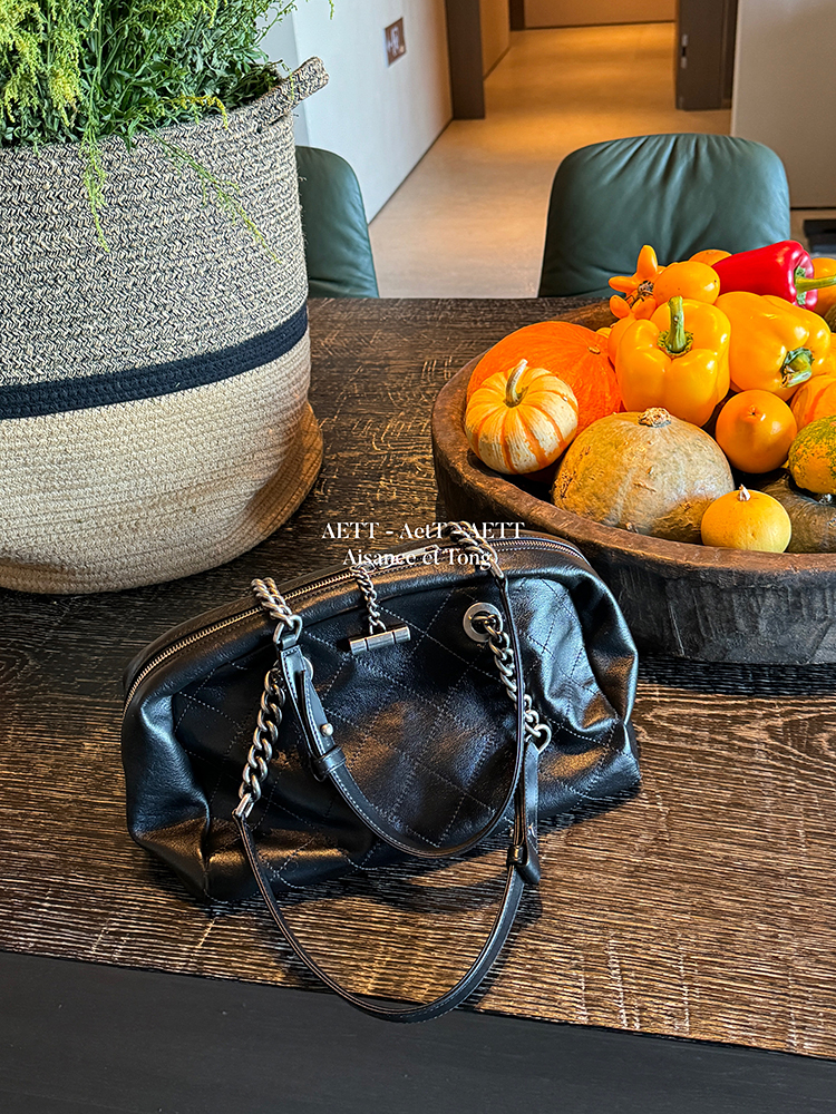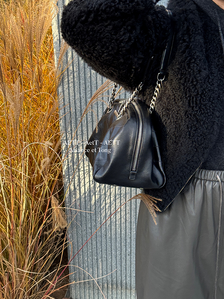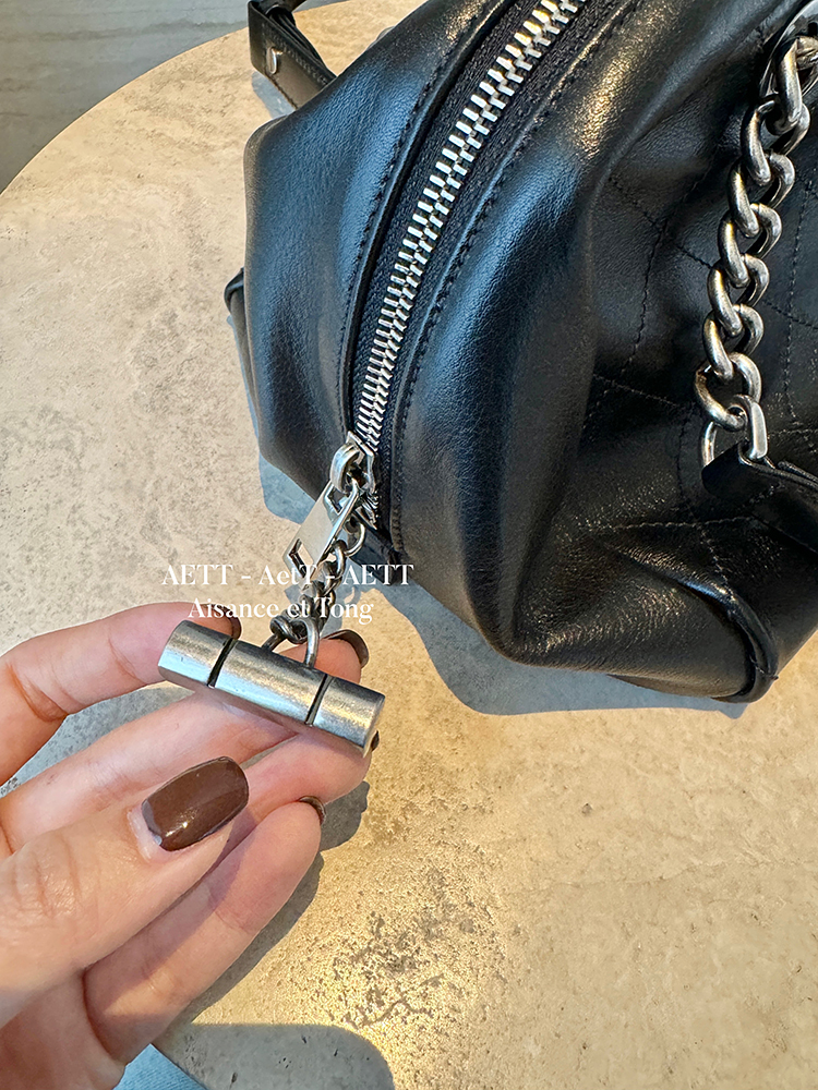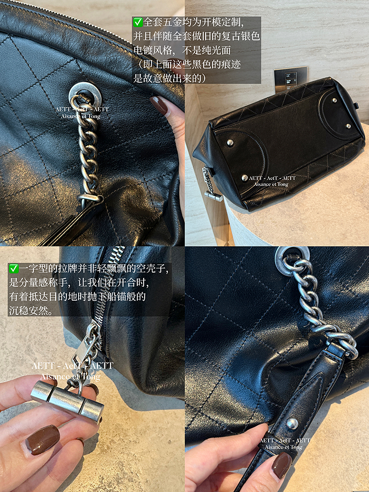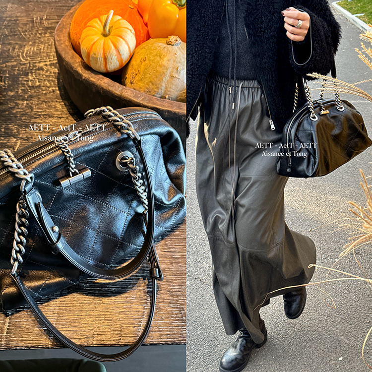 属于清新纯净的水染皮,色泽乌黑透亮,单看皮面已自带中古感;
