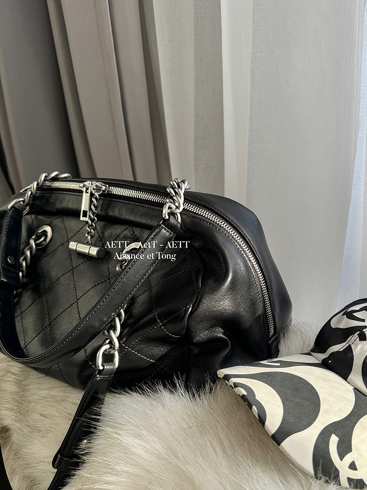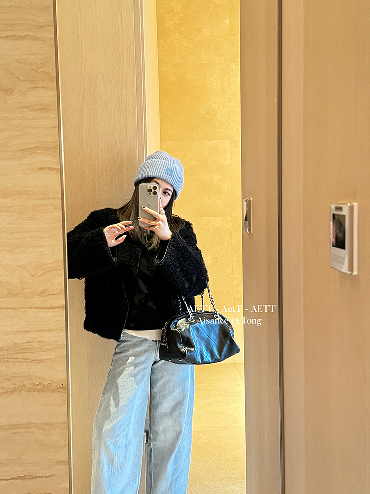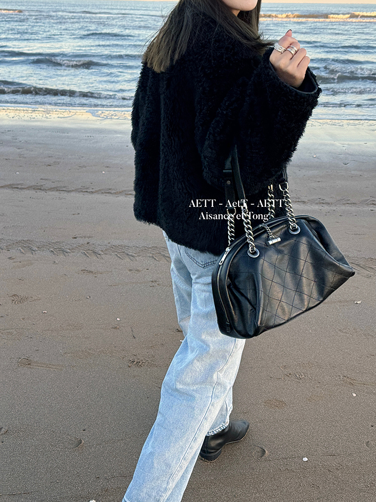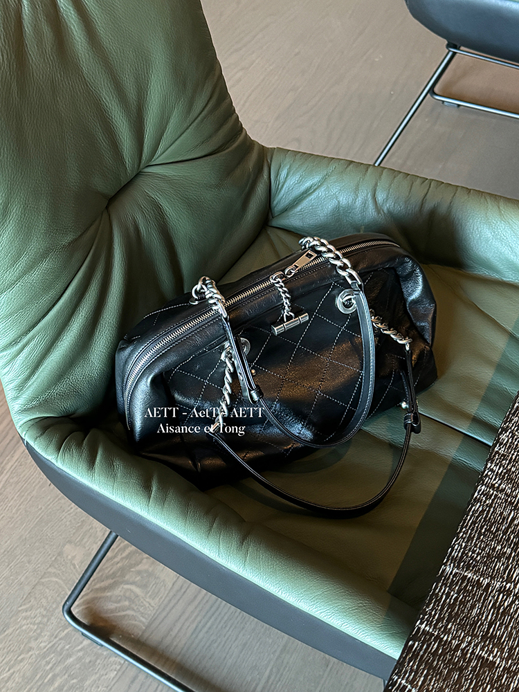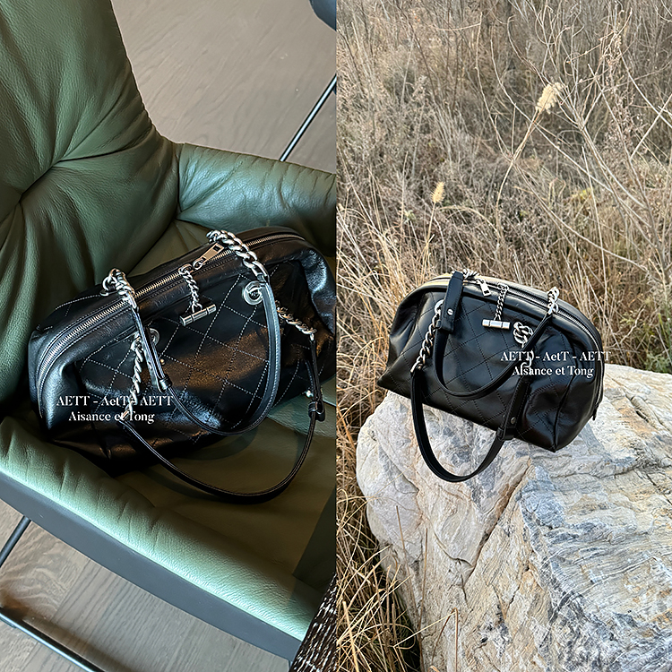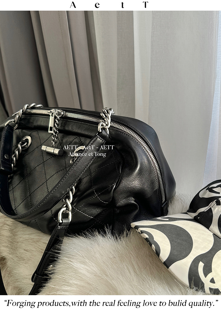 属于清新纯净的水染皮,色泽乌黑透亮,单看皮面已自带中古感;
