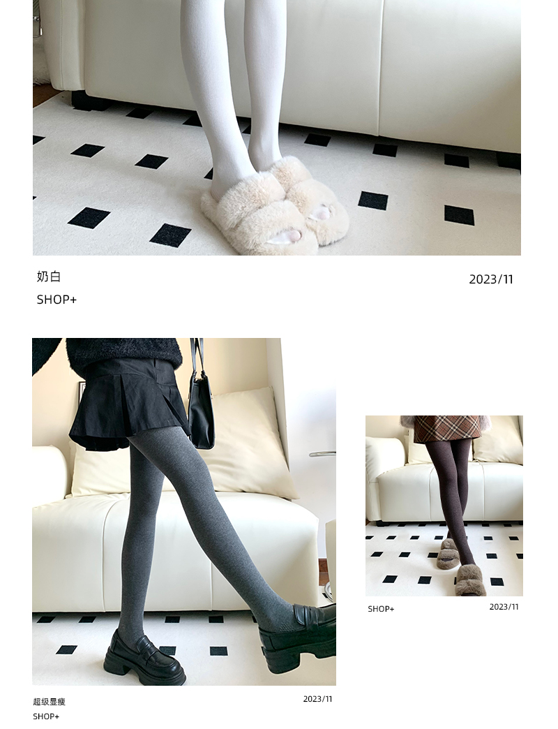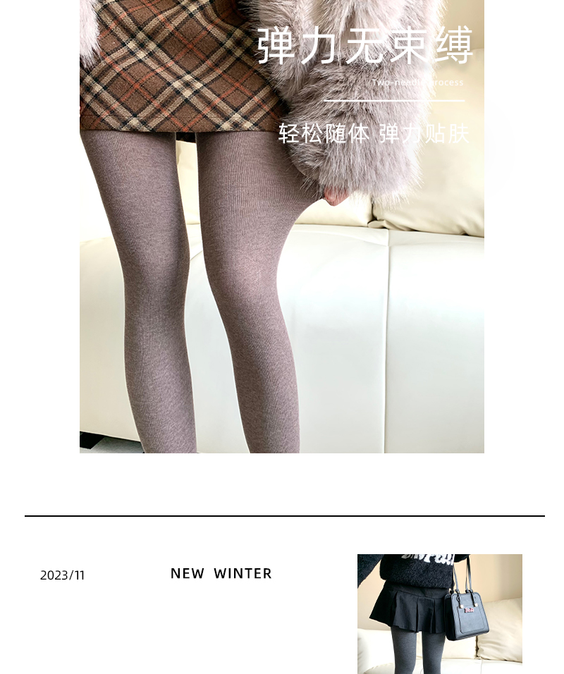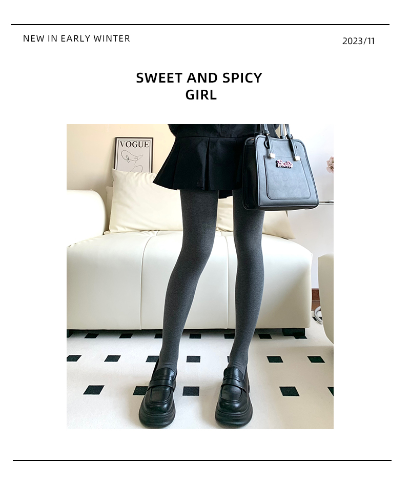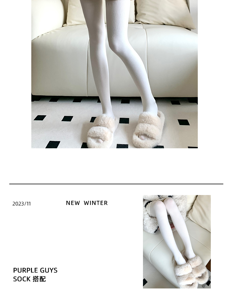 Purple Guys Gray Pantyhose for Women, Autumn and Winter, Fleece-Lined, Thickened, Warm, Cashmere, Slight Compression, Slimming Leggings