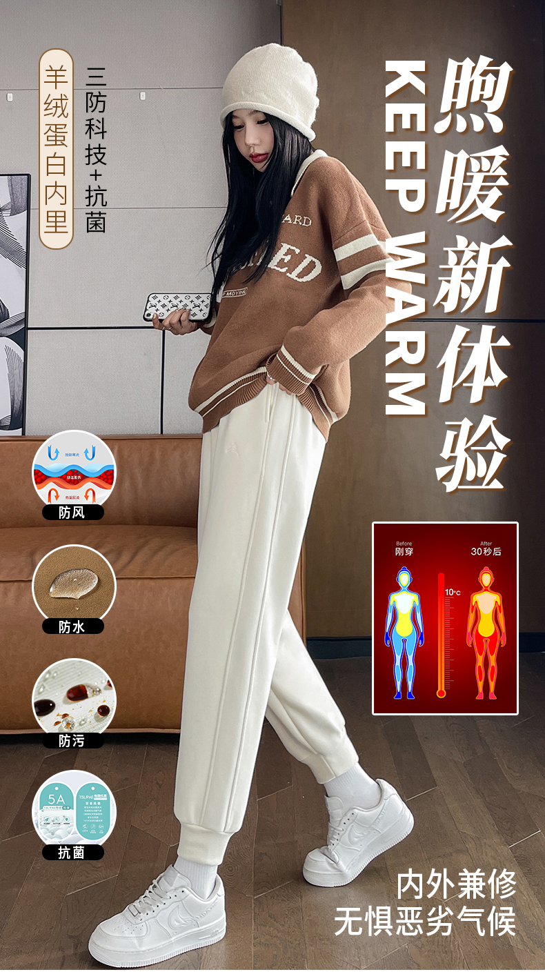 Double-Sided Fleece Nine-Level Nano Windproof Pants for Women 2025 New Autumn and Winter Fleece-Lined Petite Casual Jogger Sweatpants