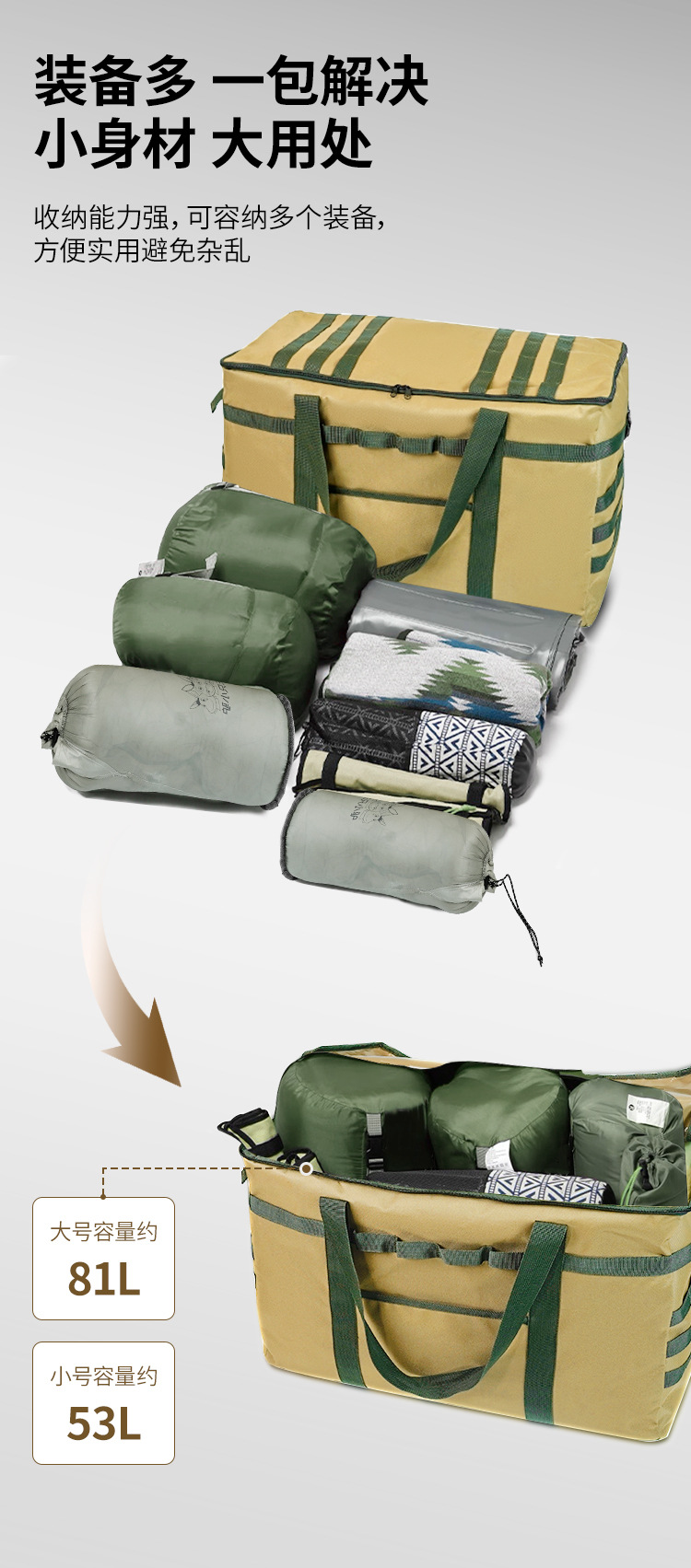 Outdoor Equipment Storage Bag Large Capacity Camping Tent Sleeping Bag Portable Waterproof Canvas Bag Travel Bag 80L