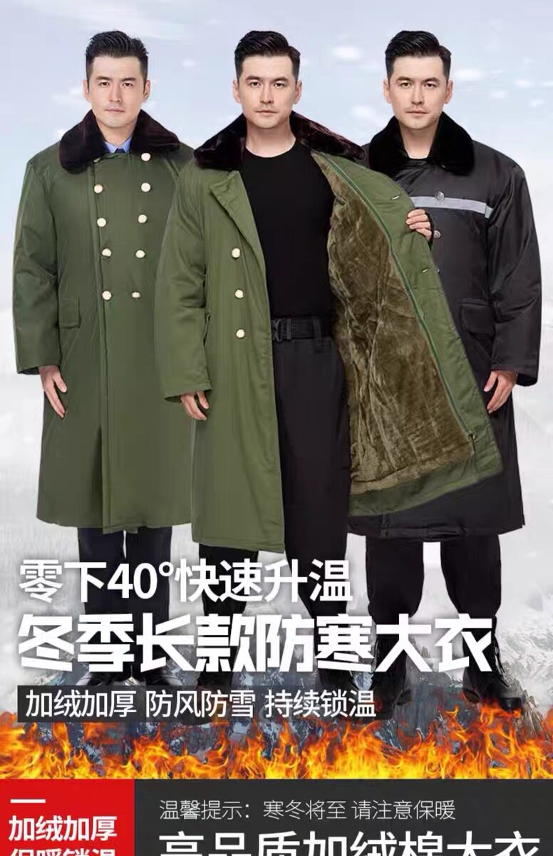 New Style Military Overcoat for Men, Thickened Long Version for Women, Winter Cold-Proof Clothing, Northeast Cotton-Padded Jacket, Old-Fashioned Military Green Coat
