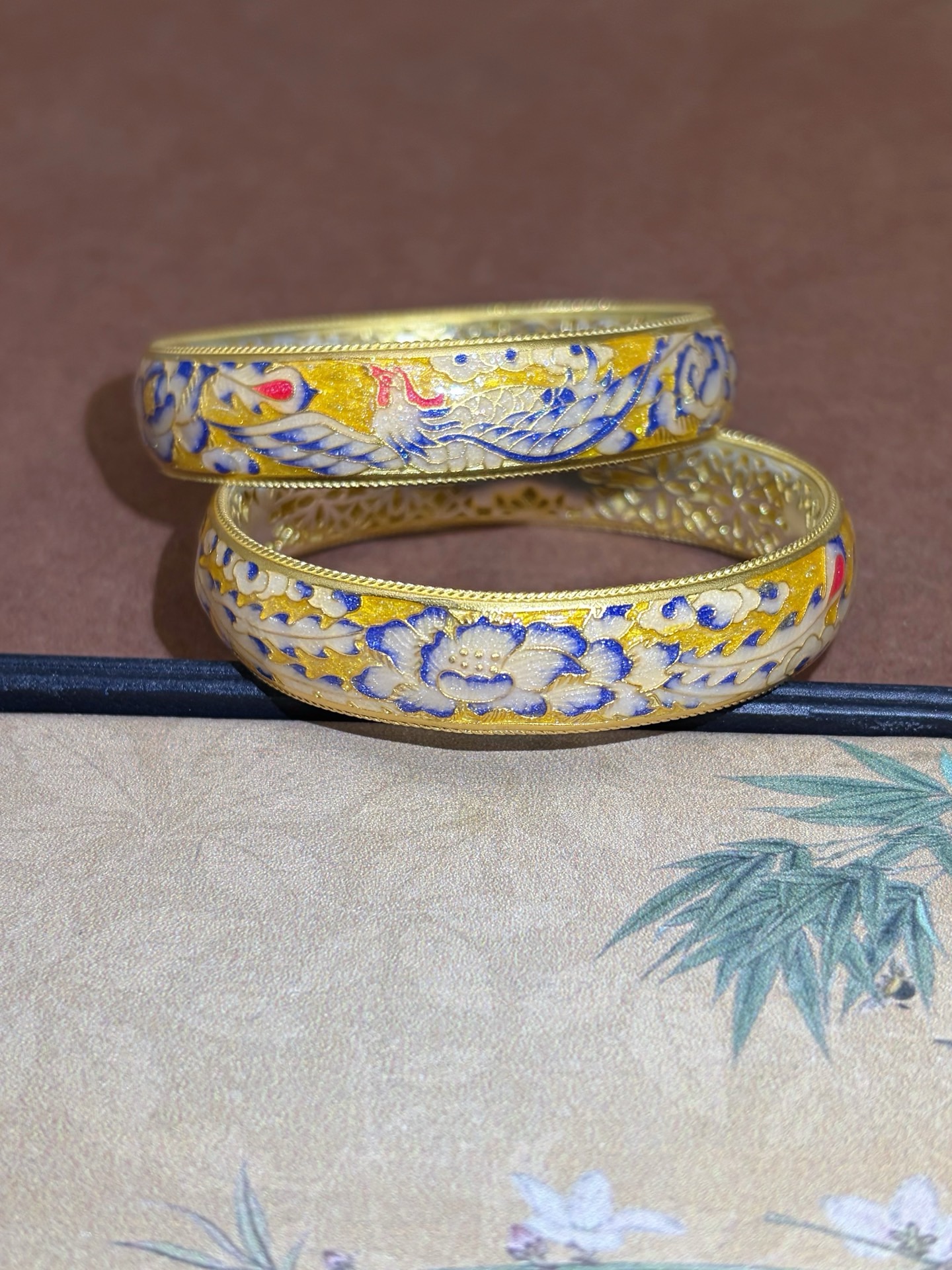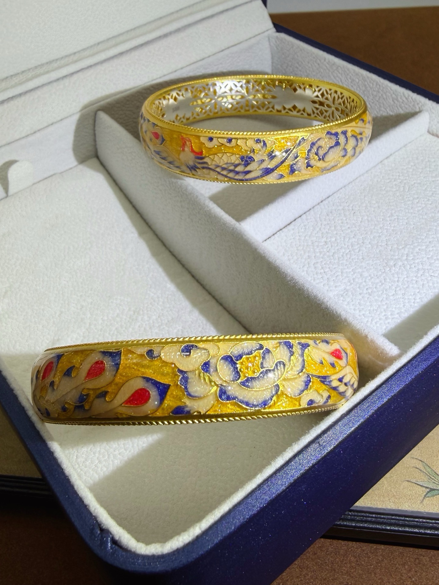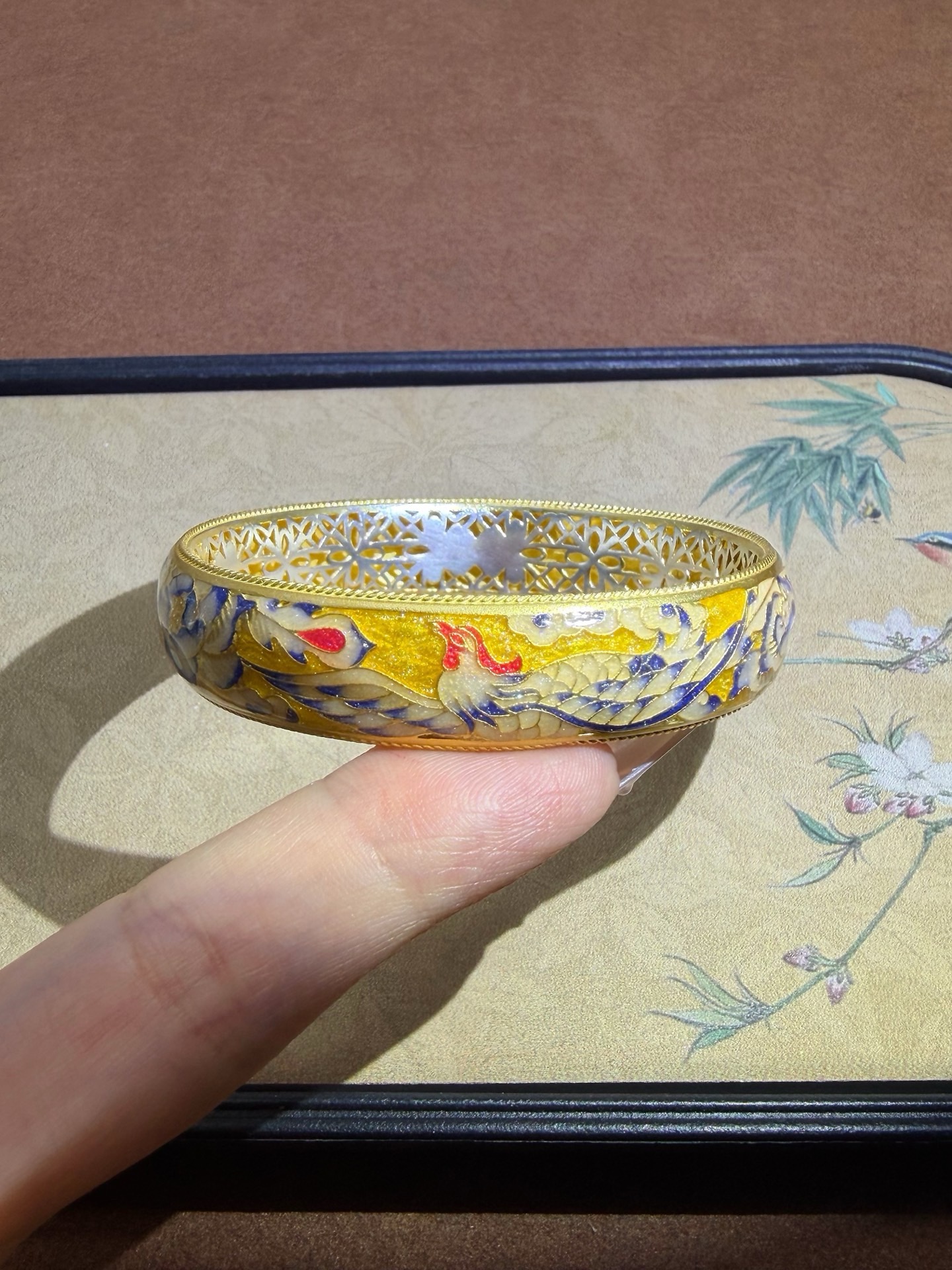 Phoenix and Peony Fine Enamel Closed Bracelet, 999 Pure Silver, New Chinese Style, High-End Feel, Versatile, Gift for Girlfriend