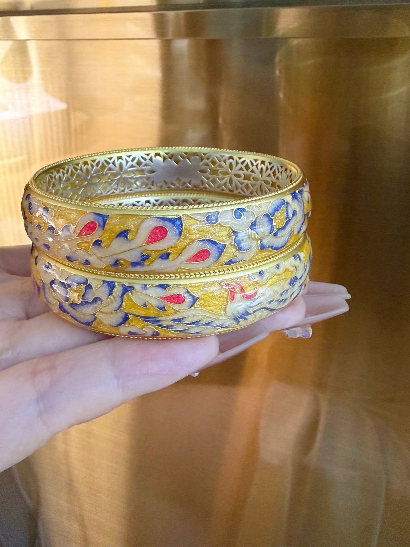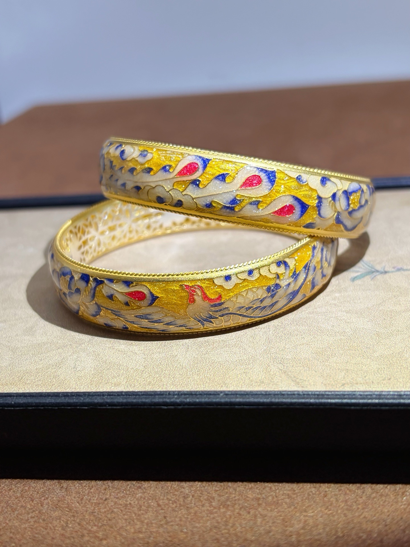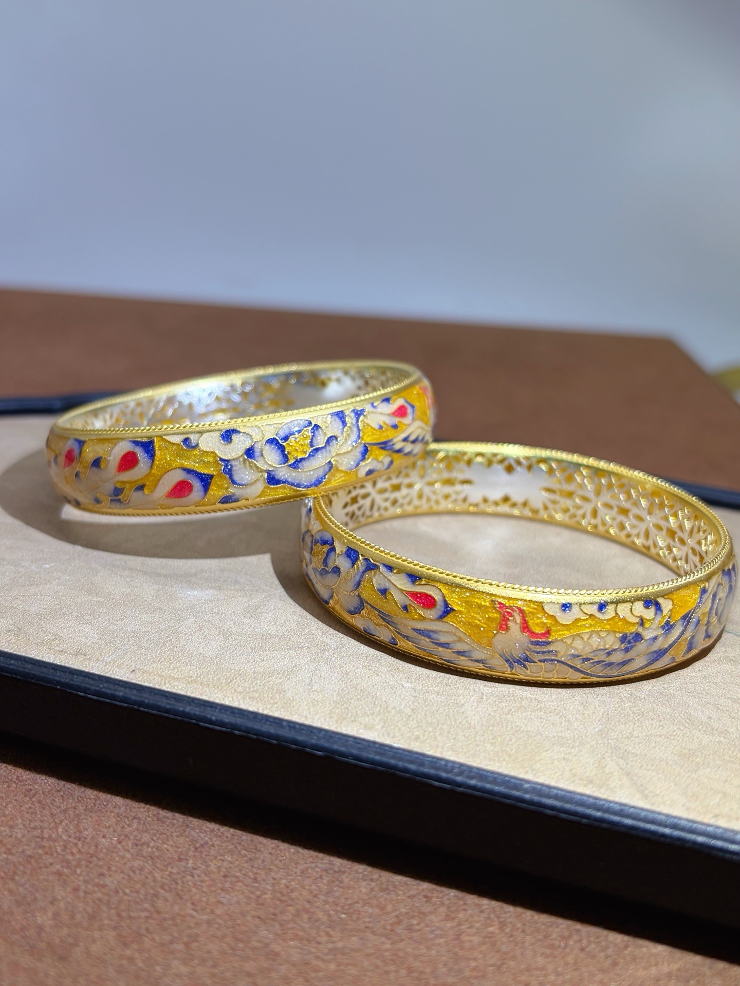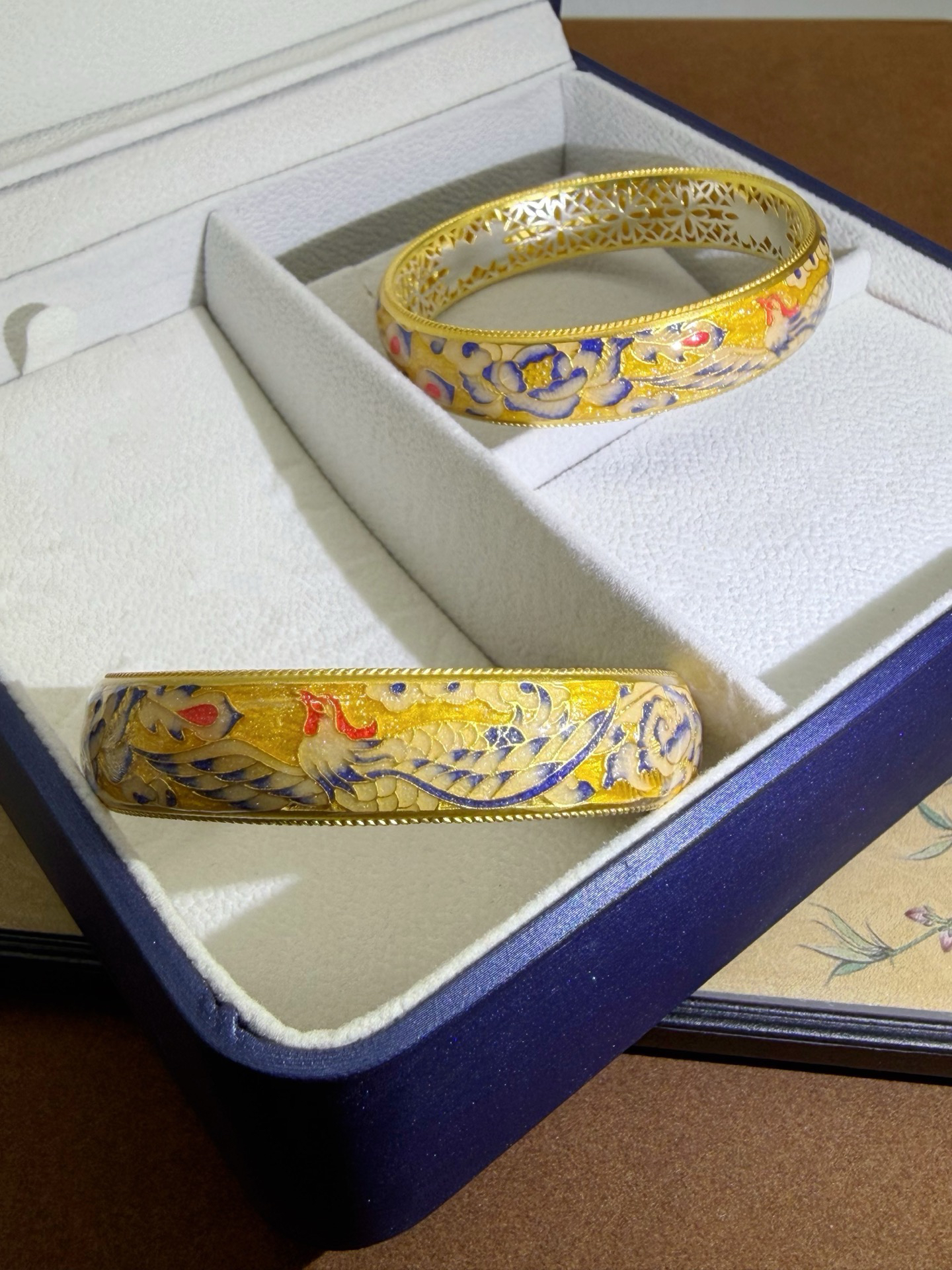 Phoenix and Peony Fine Enamel Closed Bracelet, 999 Pure Silver, New Chinese Style, High-End Feel, Versatile, Gift for Girlfriend