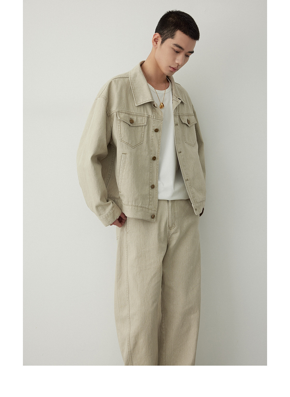 Osens 100% Cotton Two-Tone Brushed Twill Texture Heavy Jacket 26 Spring Vintage Washed Denim Jacket for Men