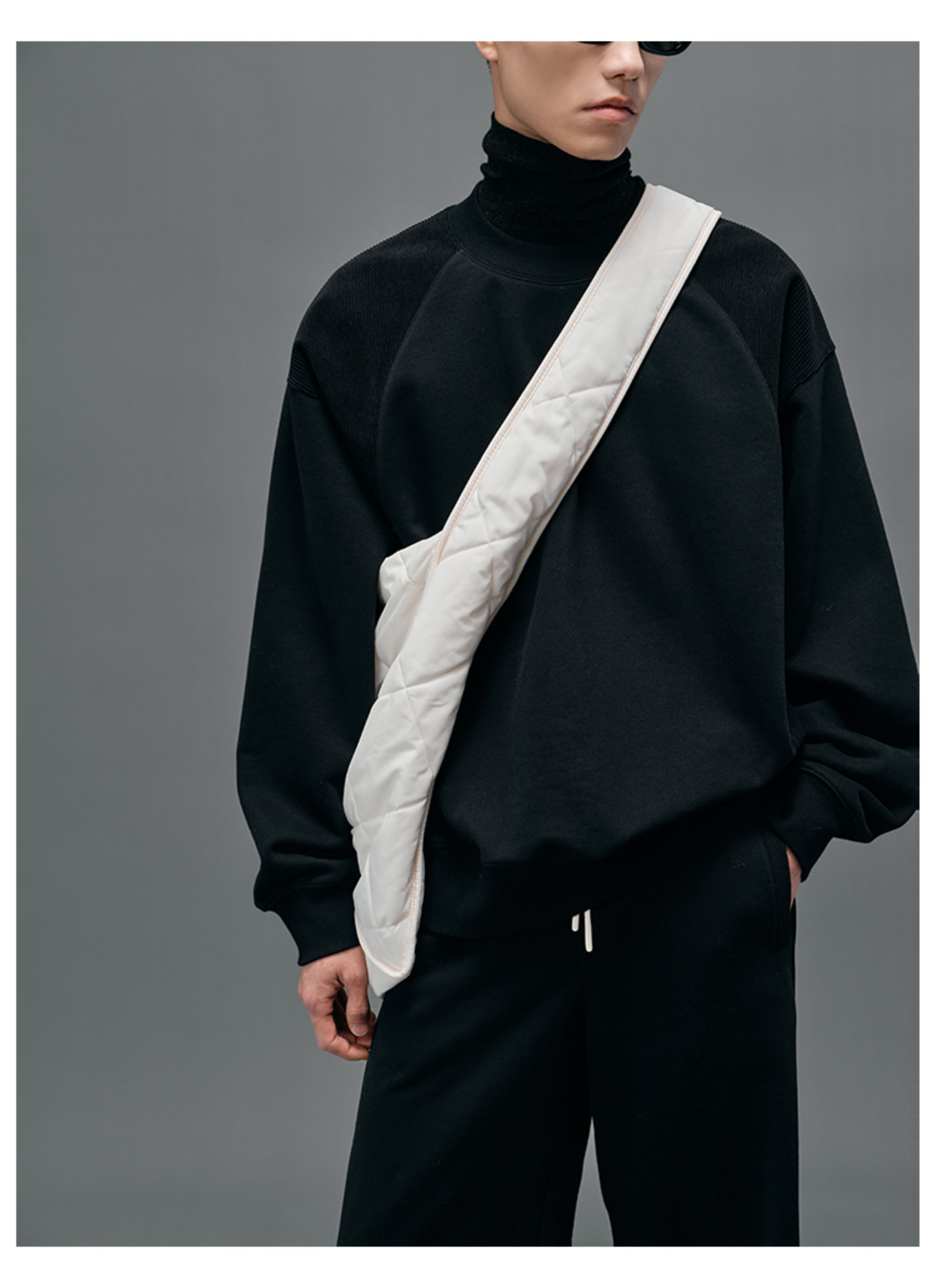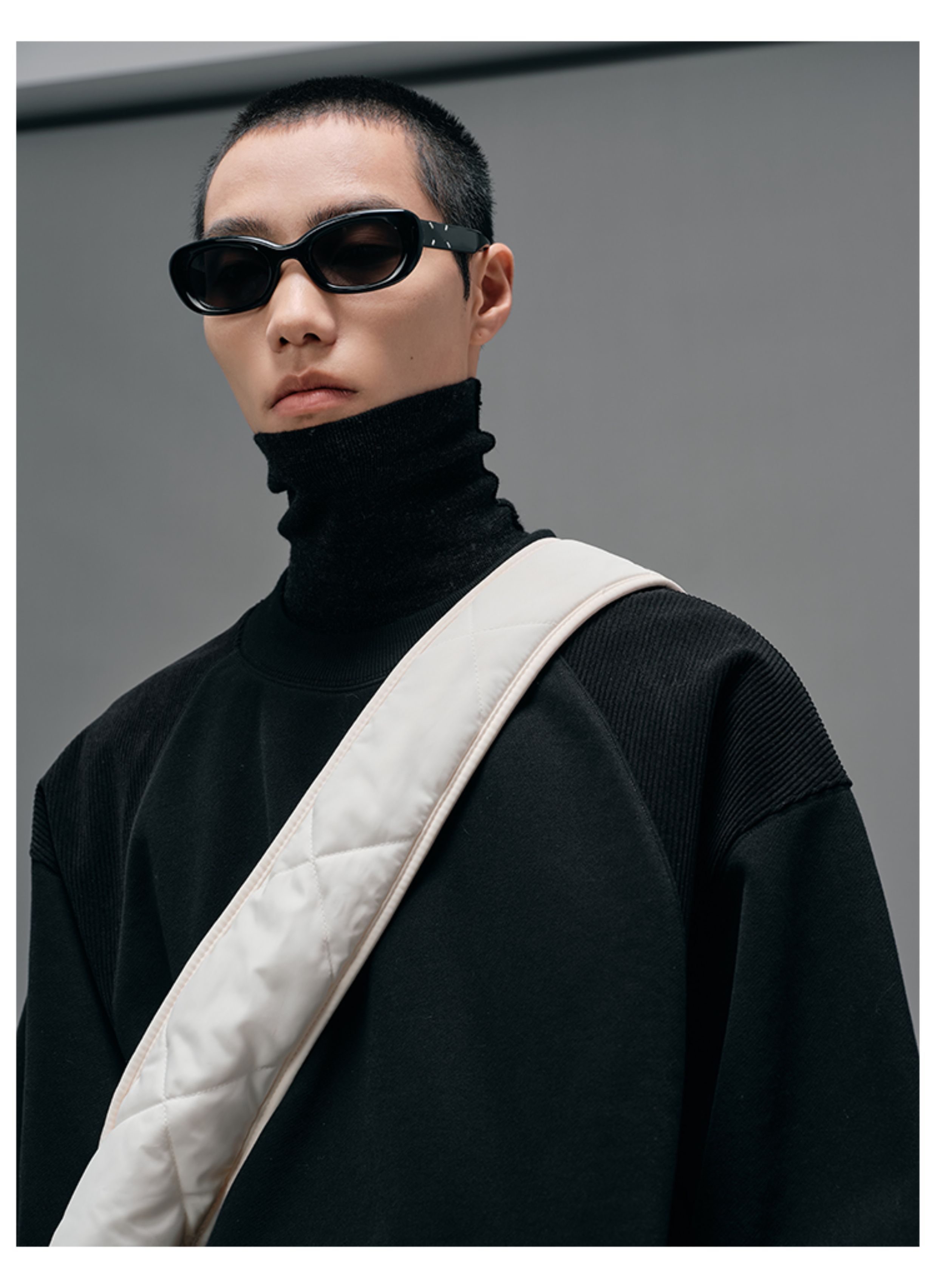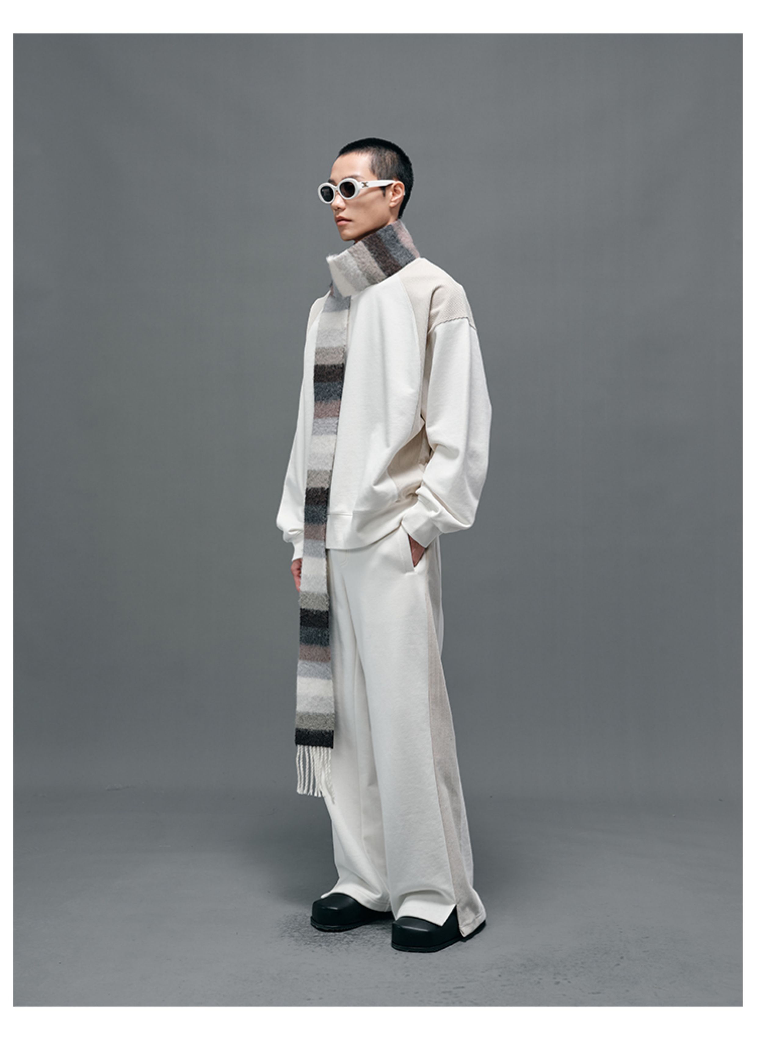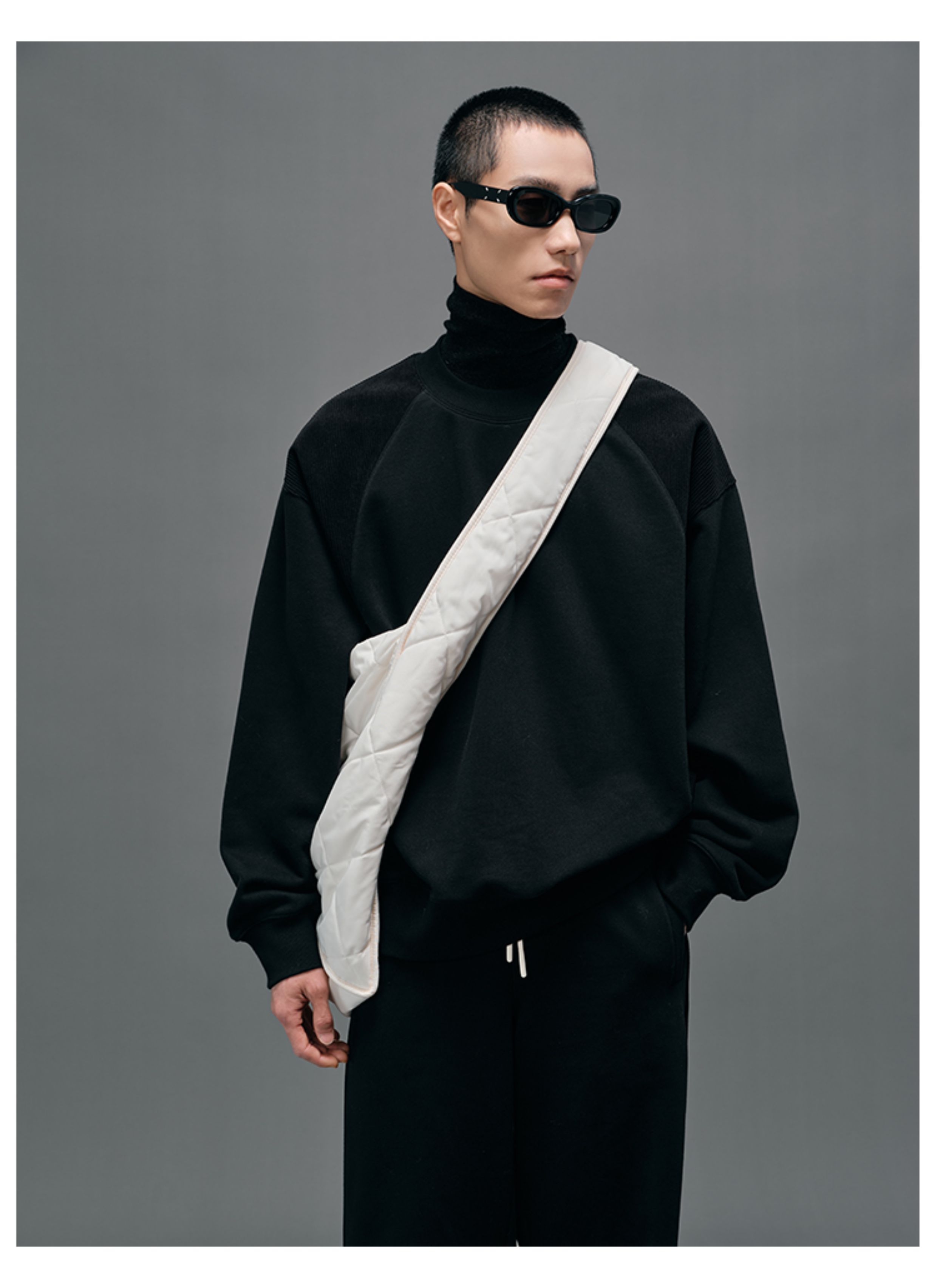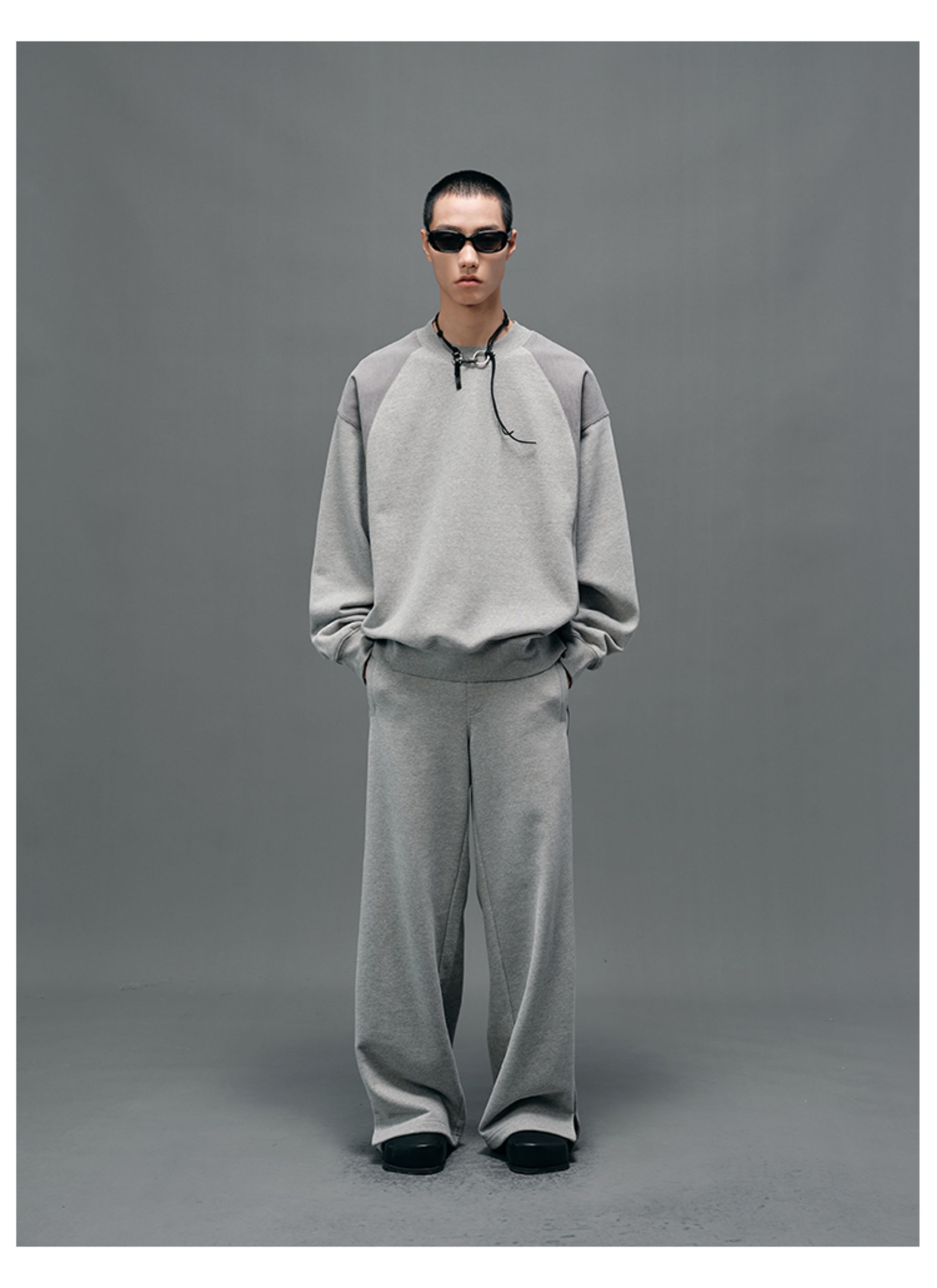 【Nans】480G Cotton Blend Fleece Terry Corduroy Patchwork Silhouette Crew Neck Sweatshirt/Straight-Leg Sweatpants