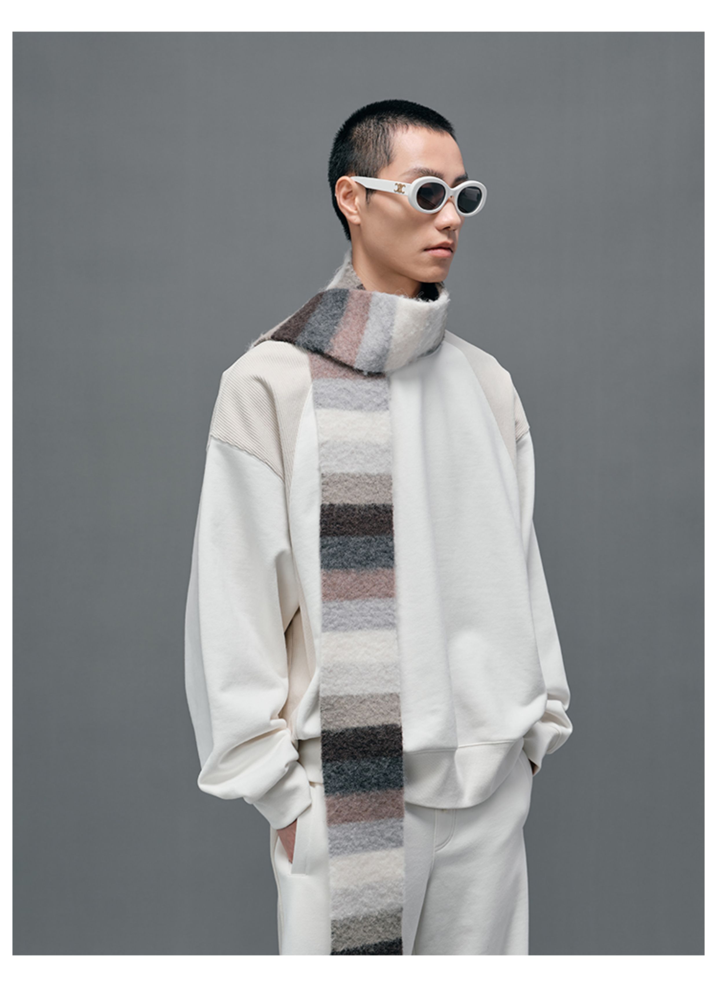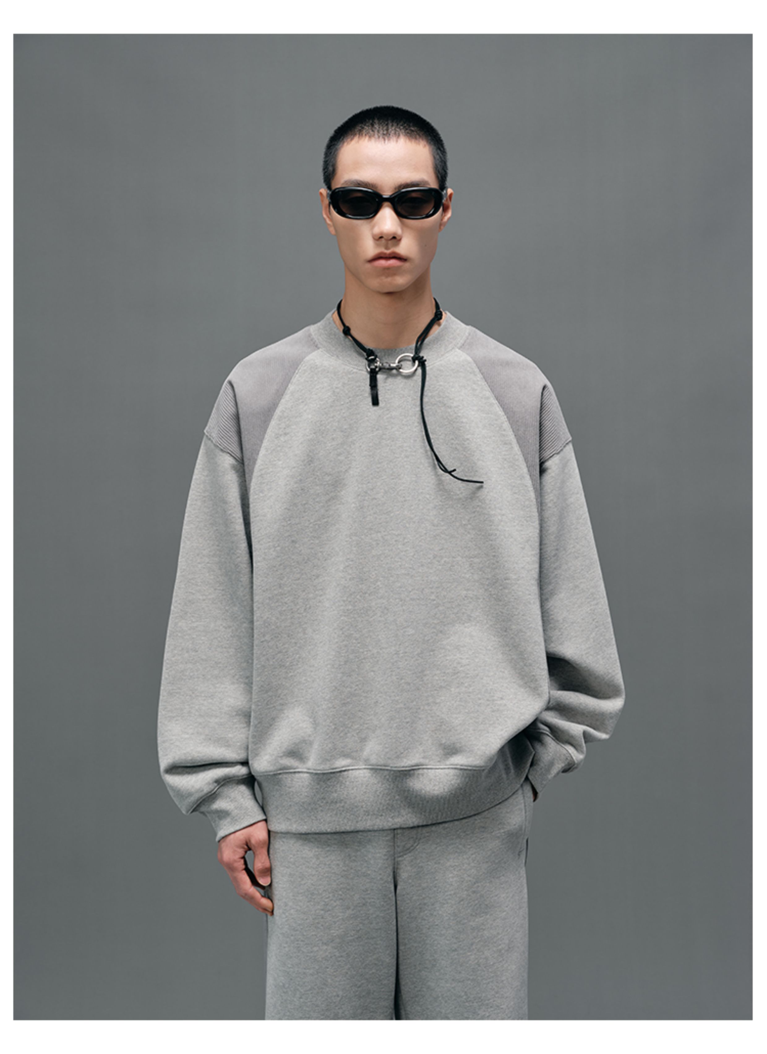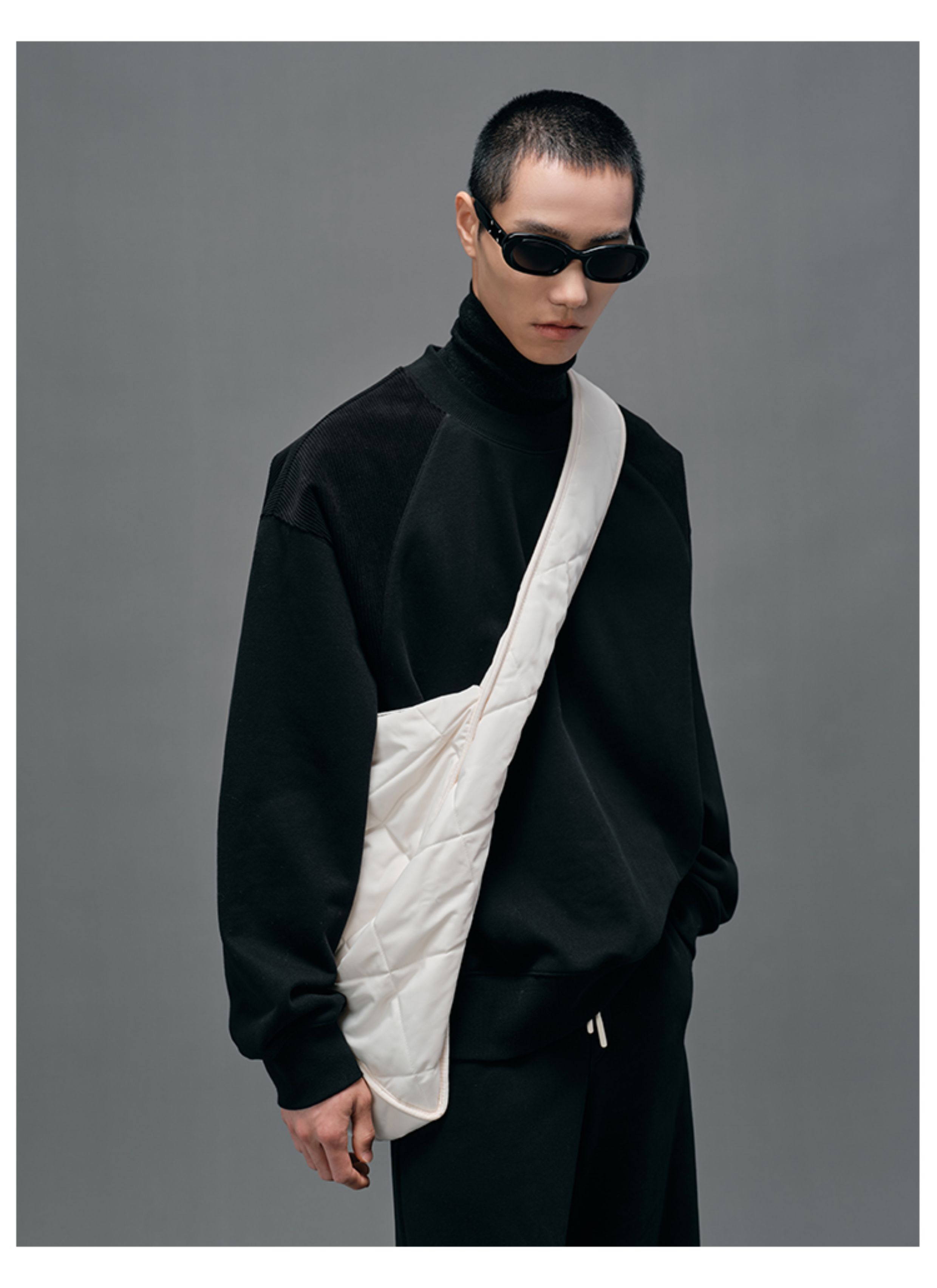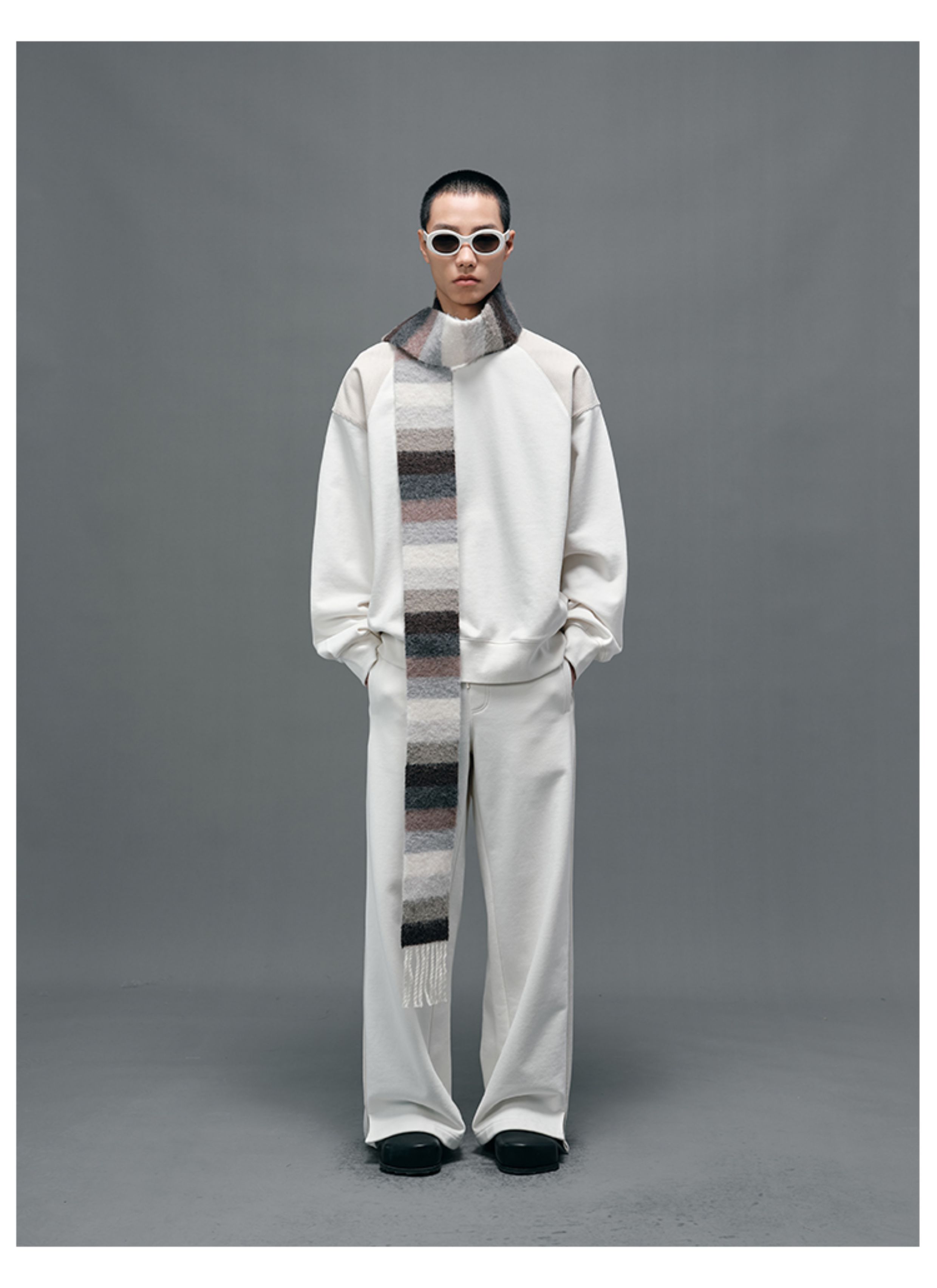 【Nans】480G Cotton Blend Fleece Terry Corduroy Patchwork Silhouette Crew Neck Sweatshirt/Straight-Leg Sweatpants