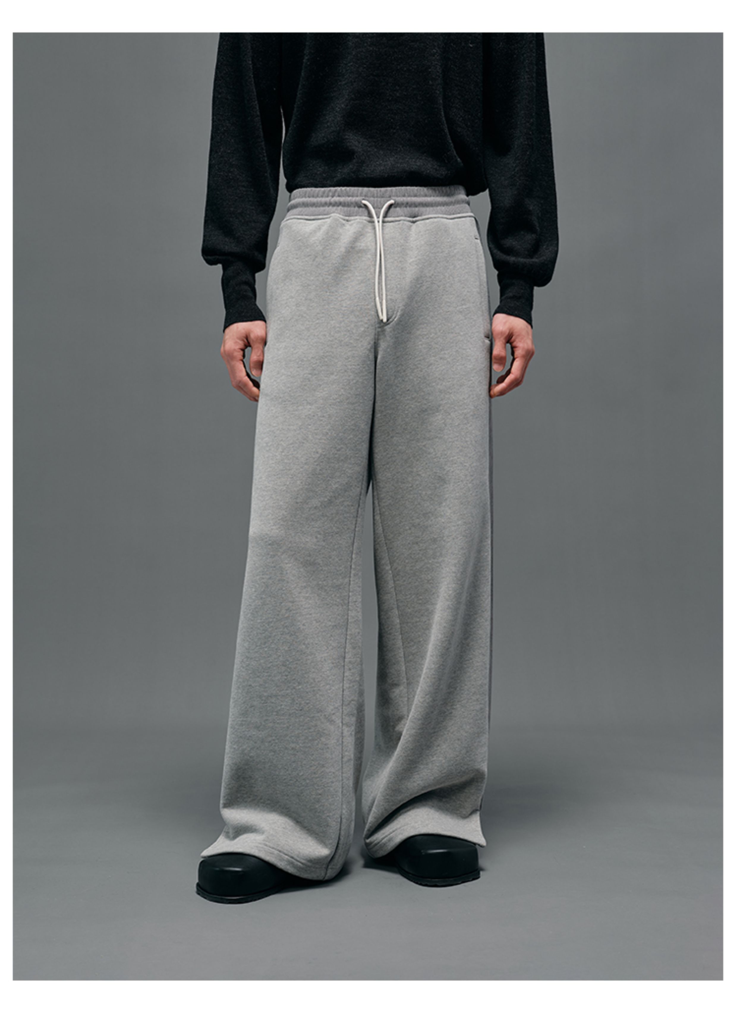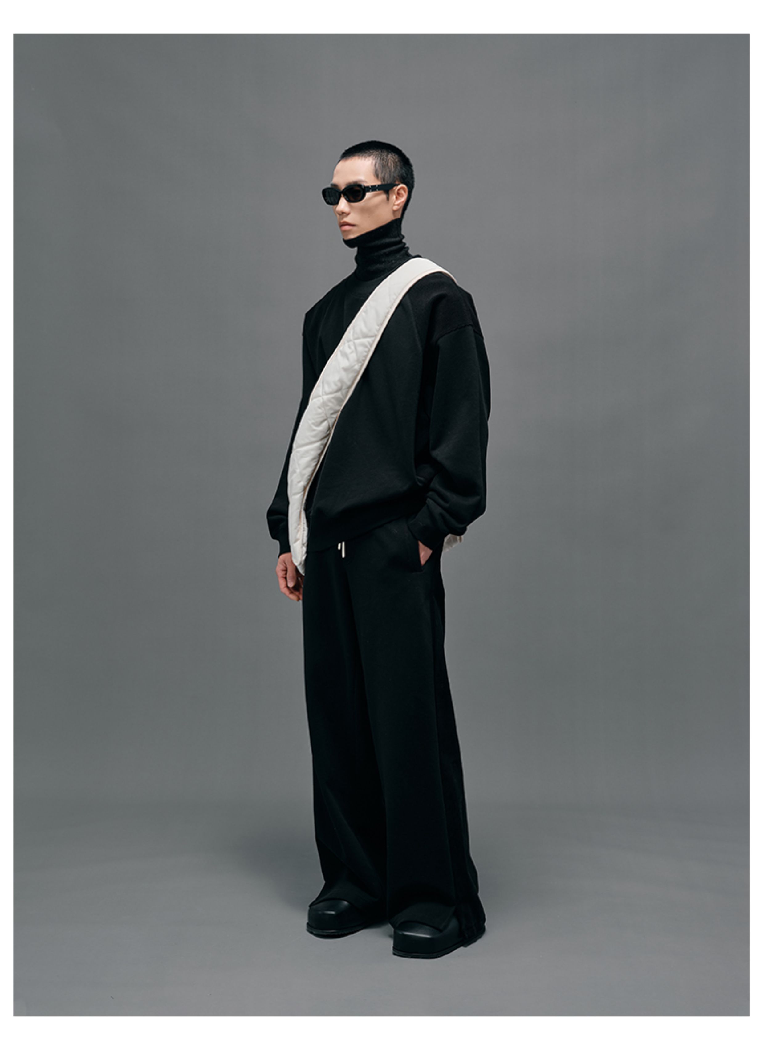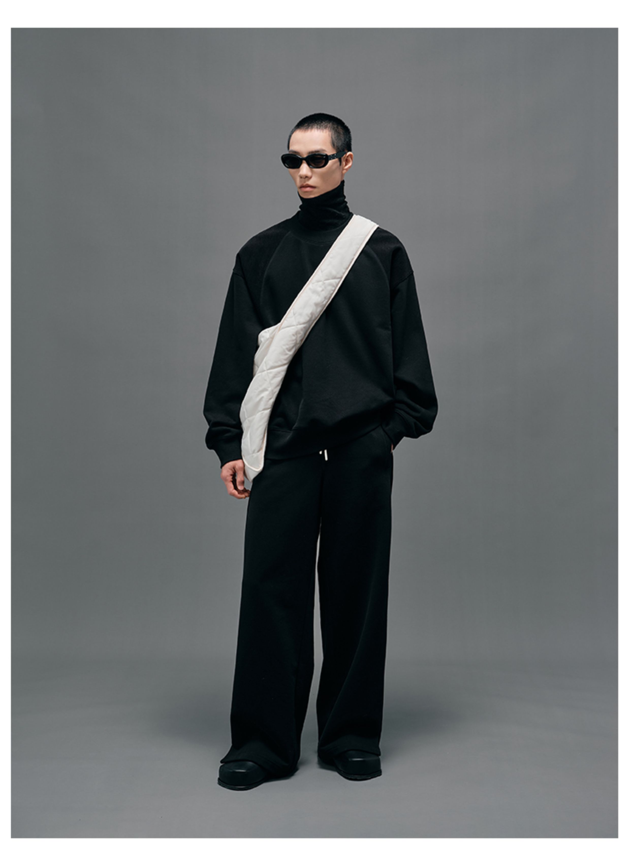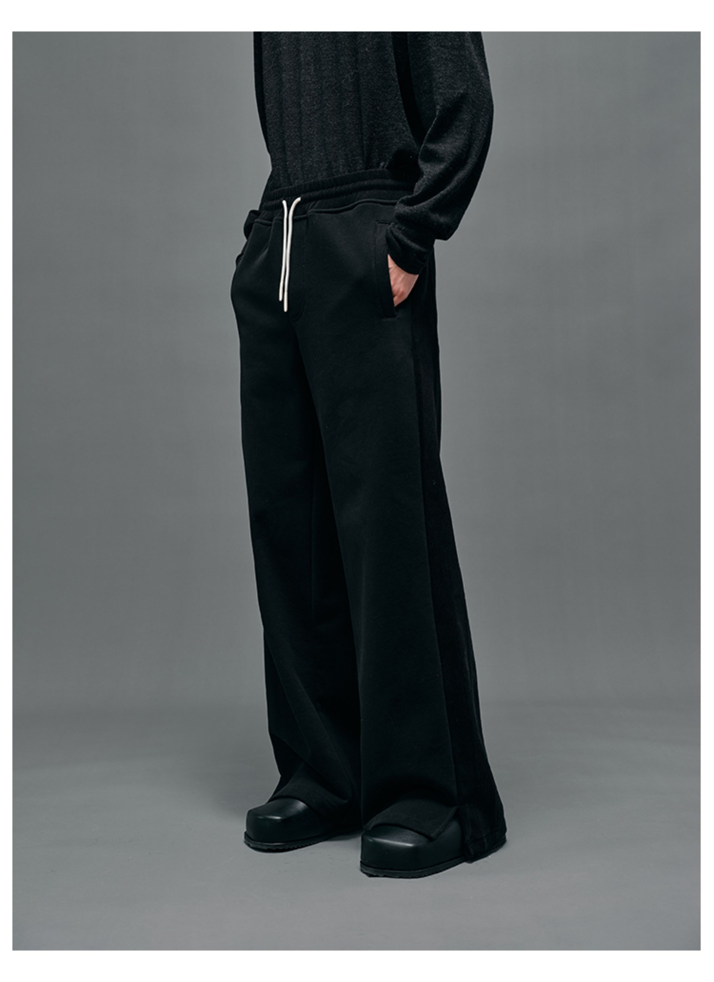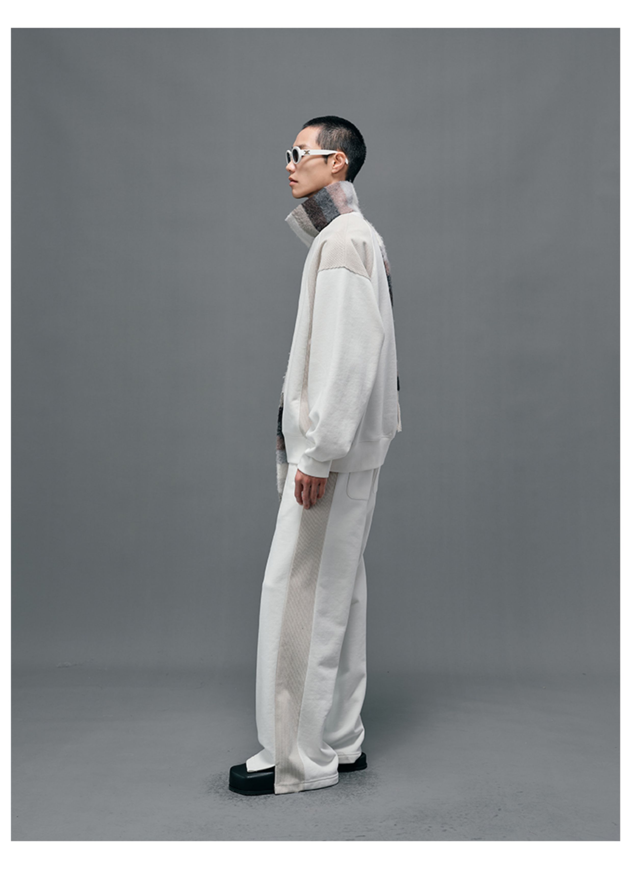 【Nans】480G Cotton Blend Fleece Terry Corduroy Patchwork Silhouette Crew Neck Sweatshirt/Straight-Leg Sweatpants