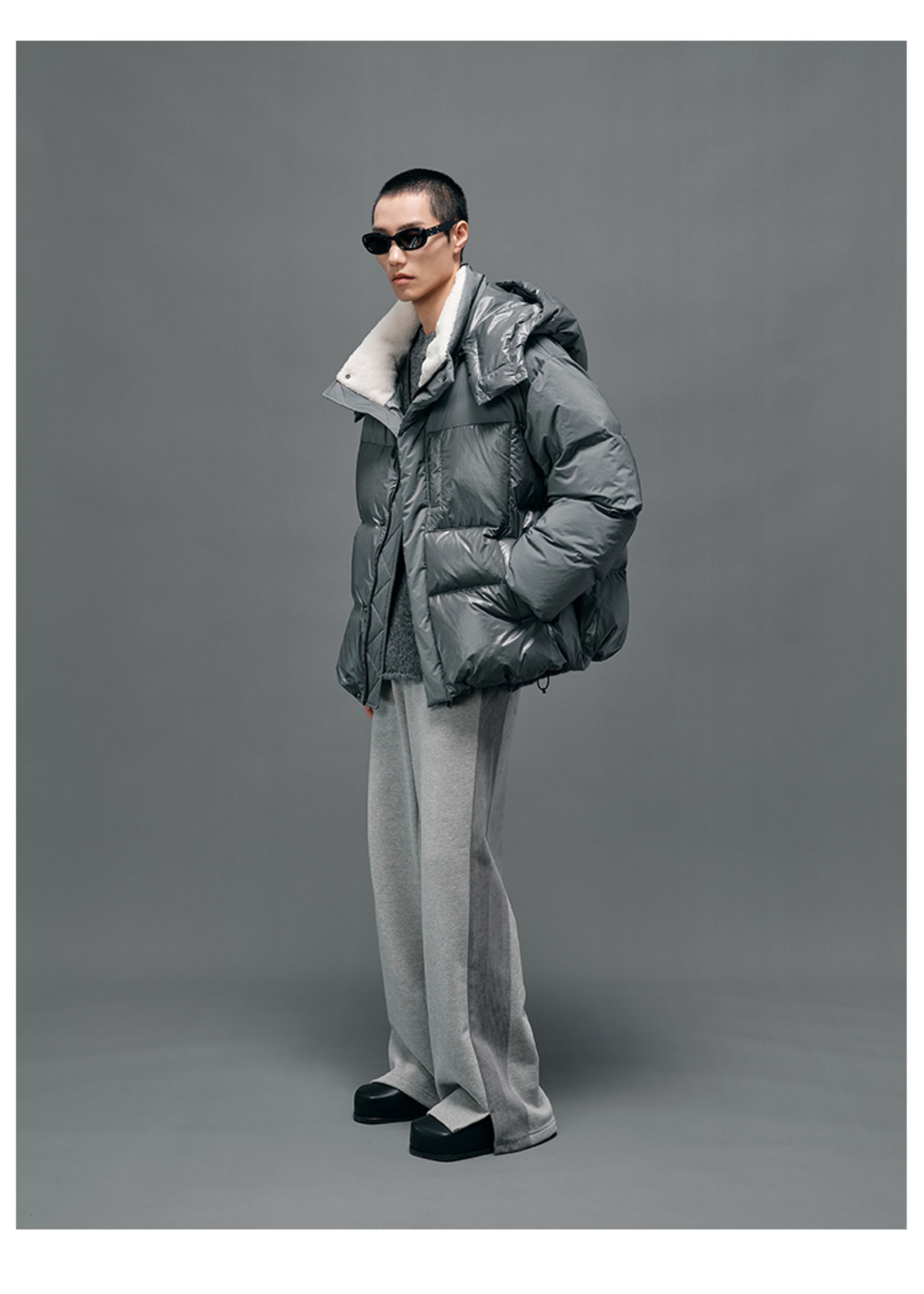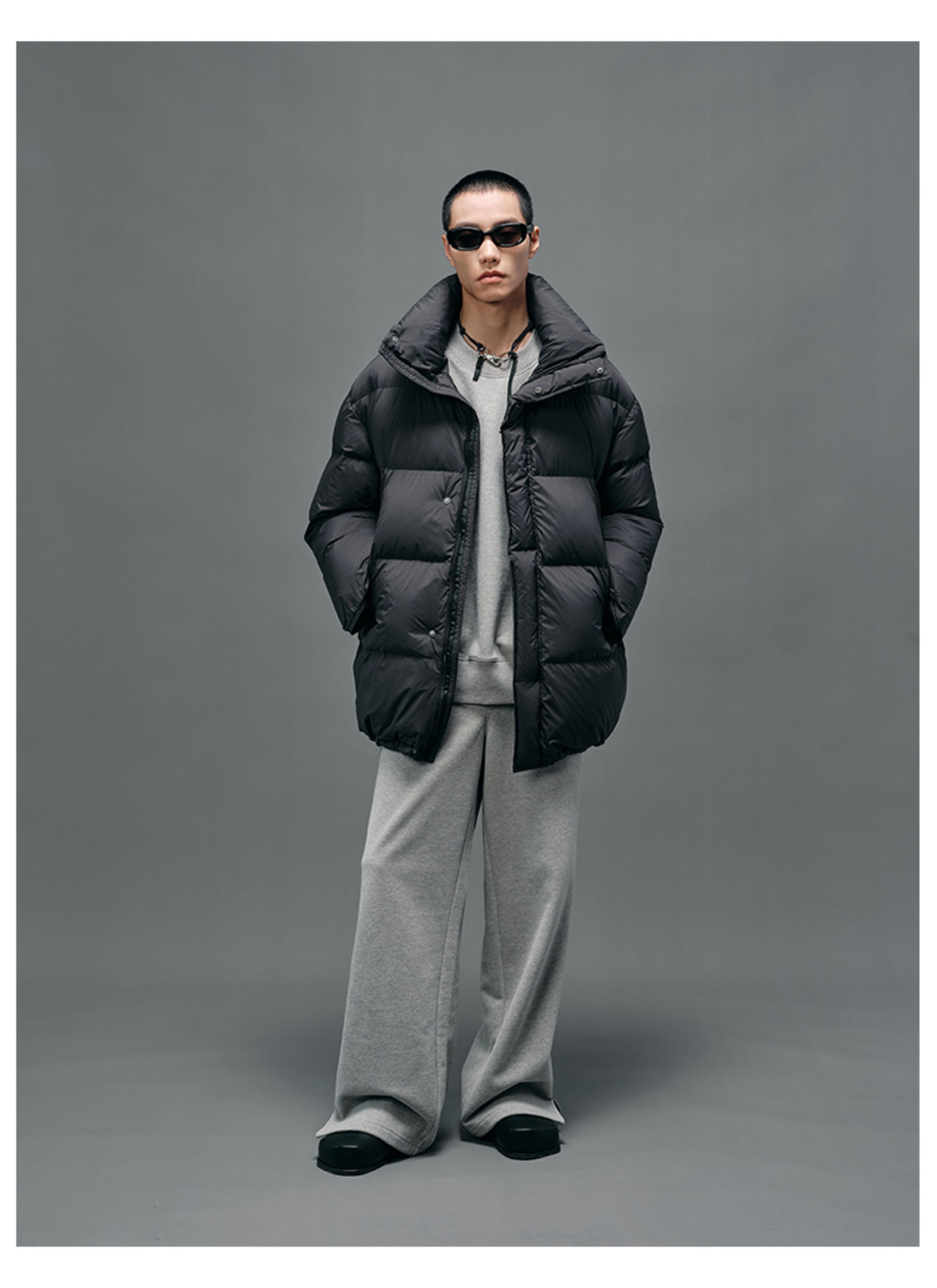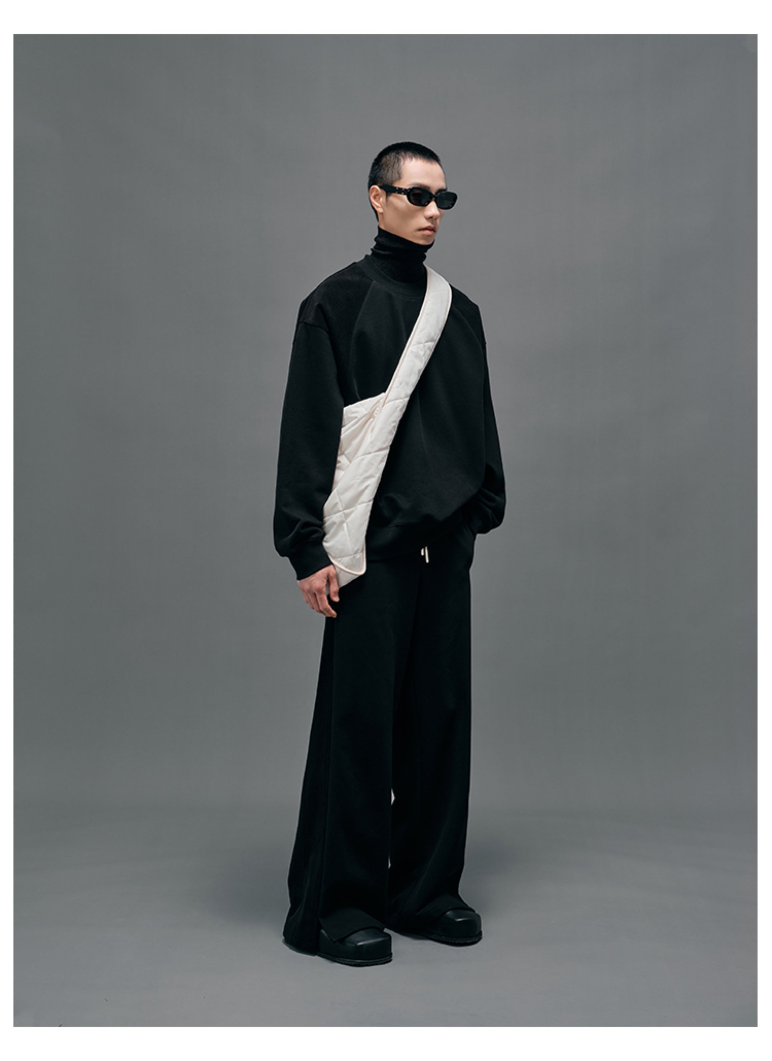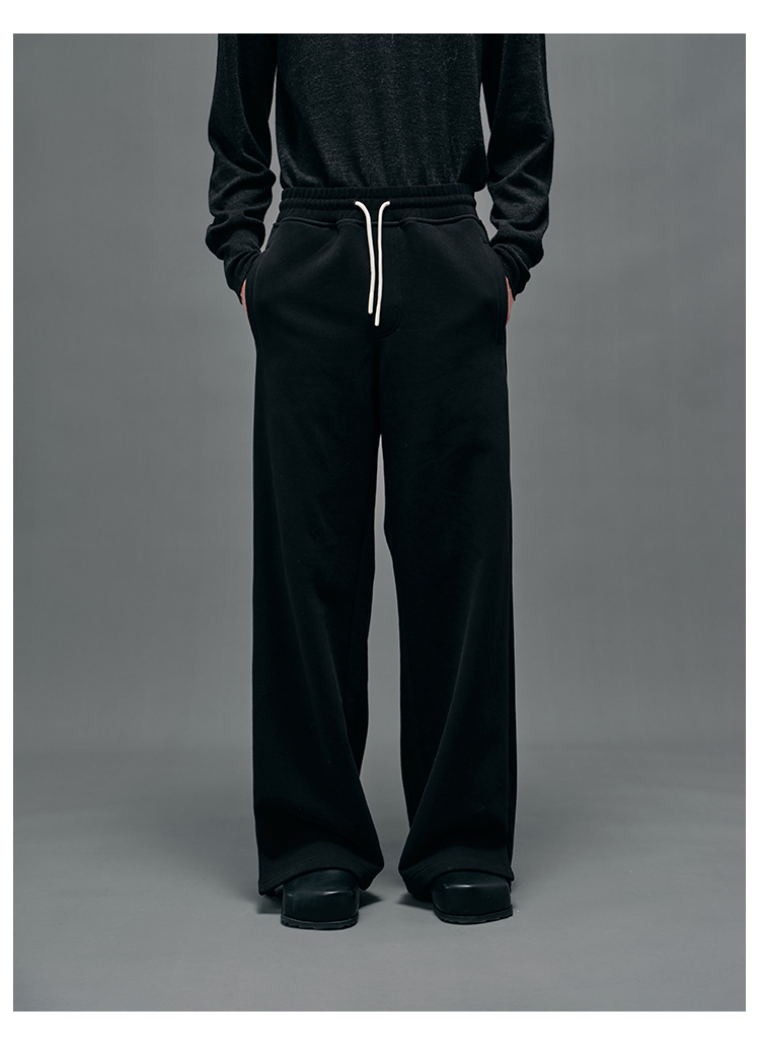 【Nans】480G Cotton Blend Fleece Terry Corduroy Patchwork Silhouette Crew Neck Sweatshirt/Straight-Leg Sweatpants