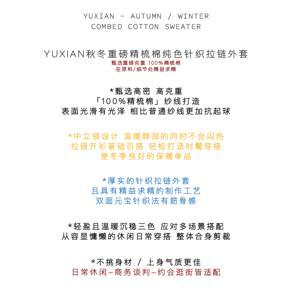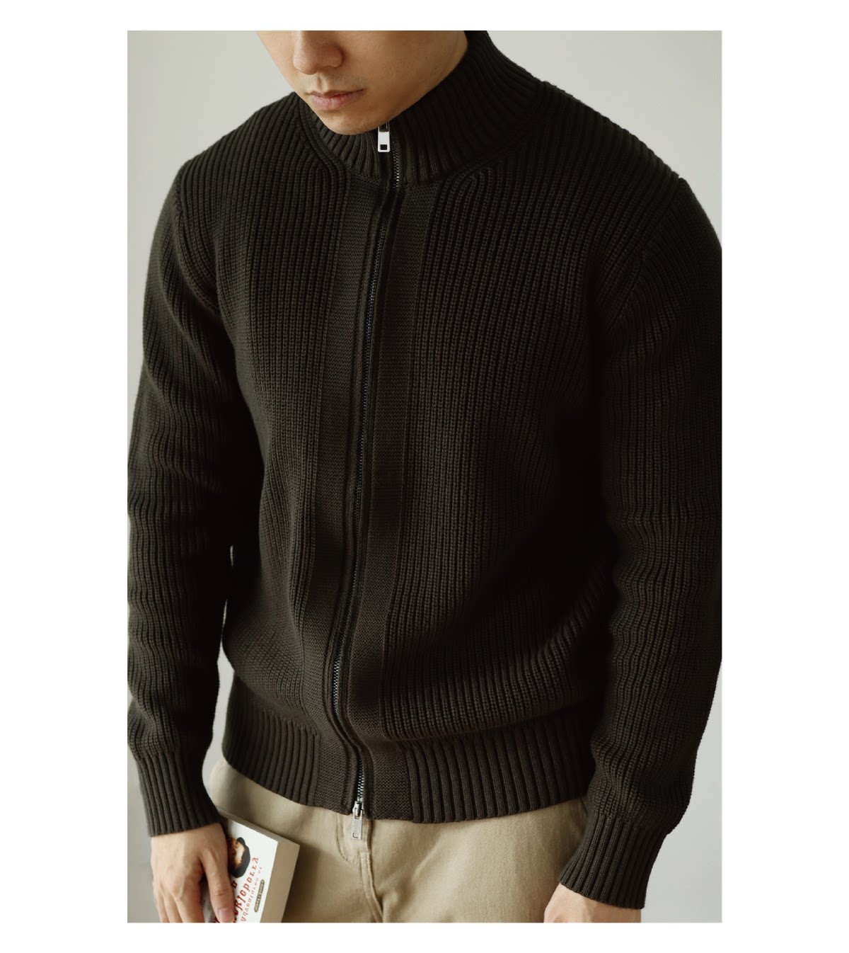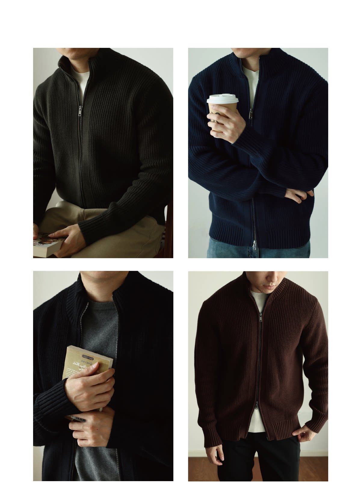 [Pioneer Series] Anti-Pilling Heavy-Duty Combed Cotton Zip-Up Jacket Knitted Solid Color Sweater Thickened for Autumn and Winter