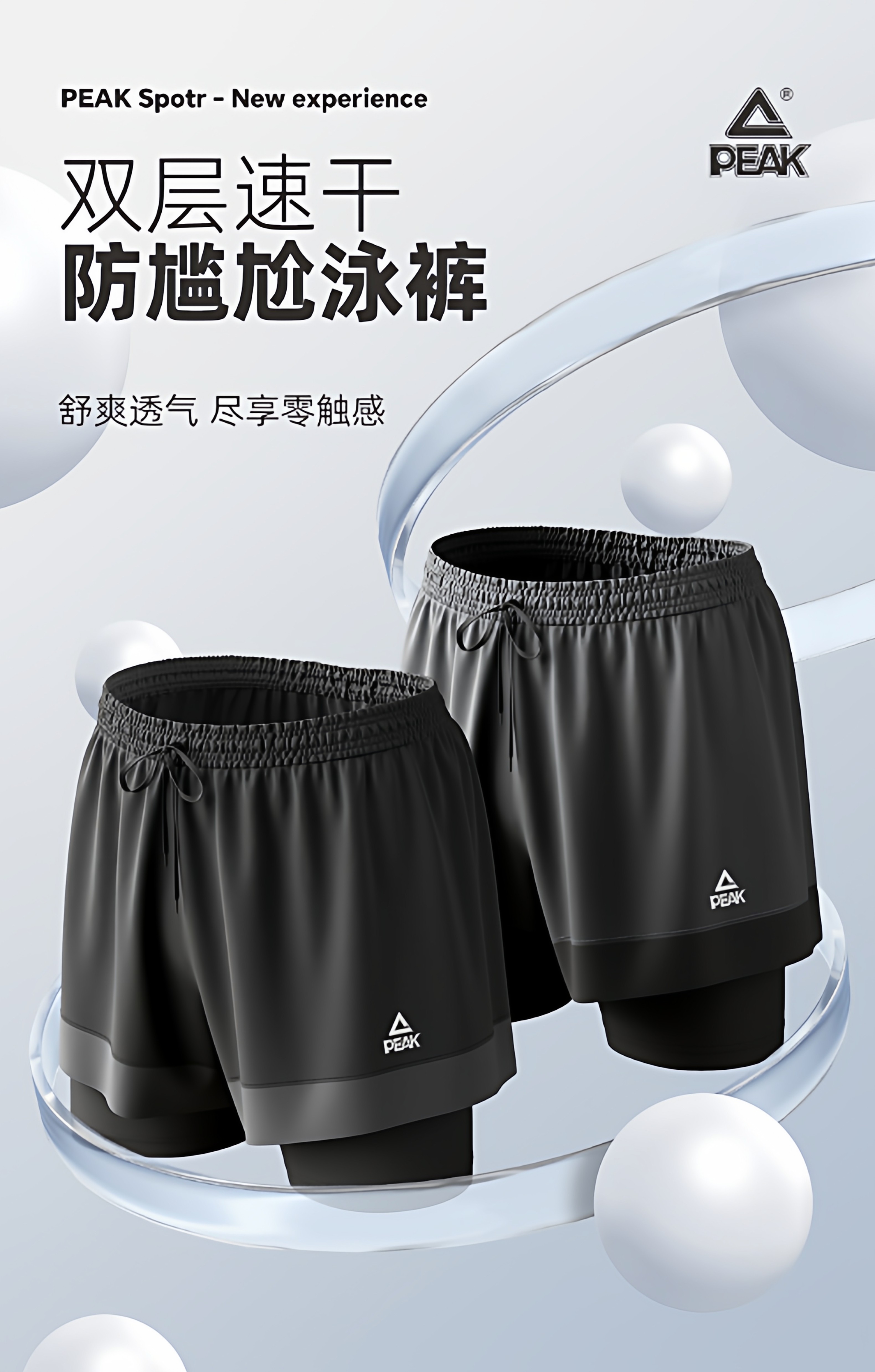 Peak Swimming Trunks Men's Swim Trunks Swim Cap Swimming Goggles Three-Piece Set Anti-Embarrassment Men's Beach Hot Spring Pants Sports Equipment