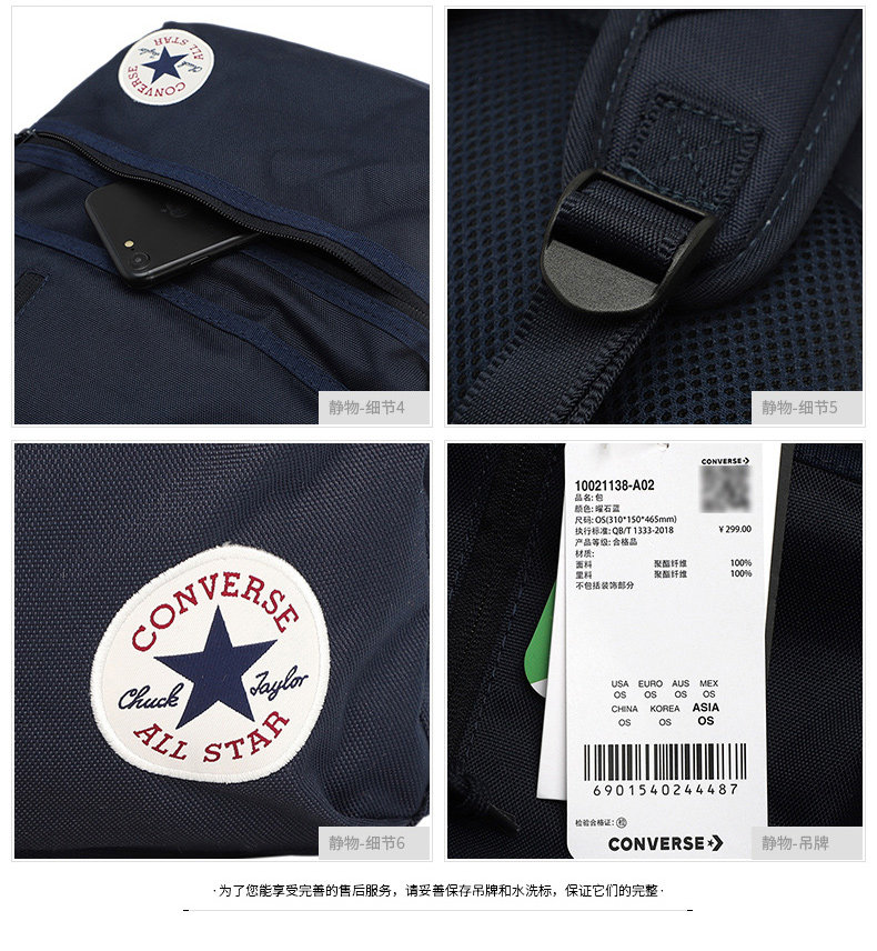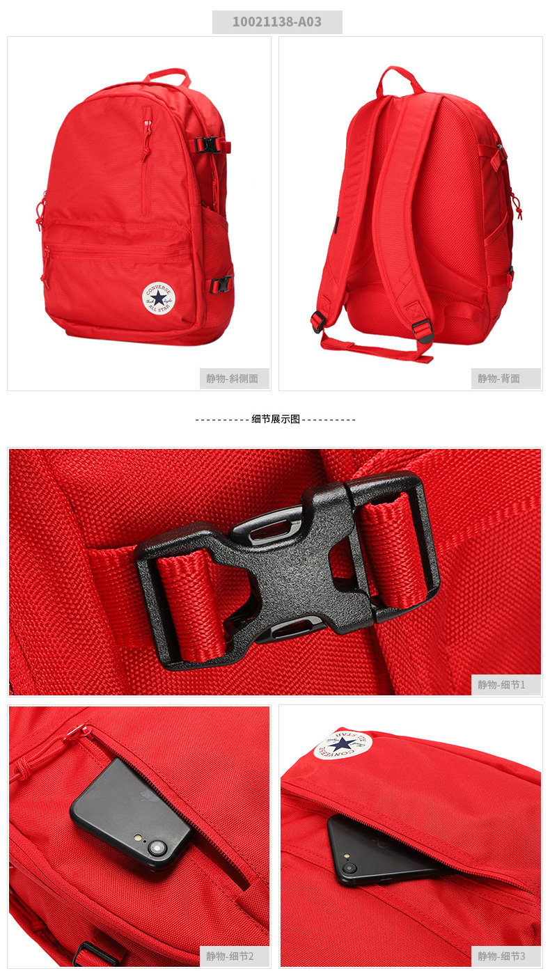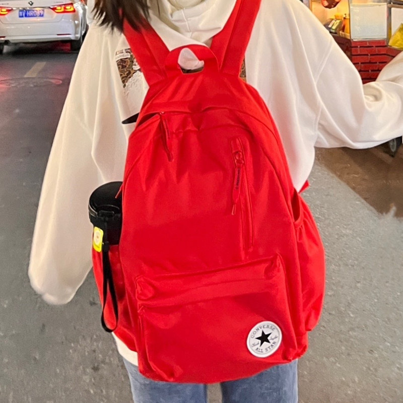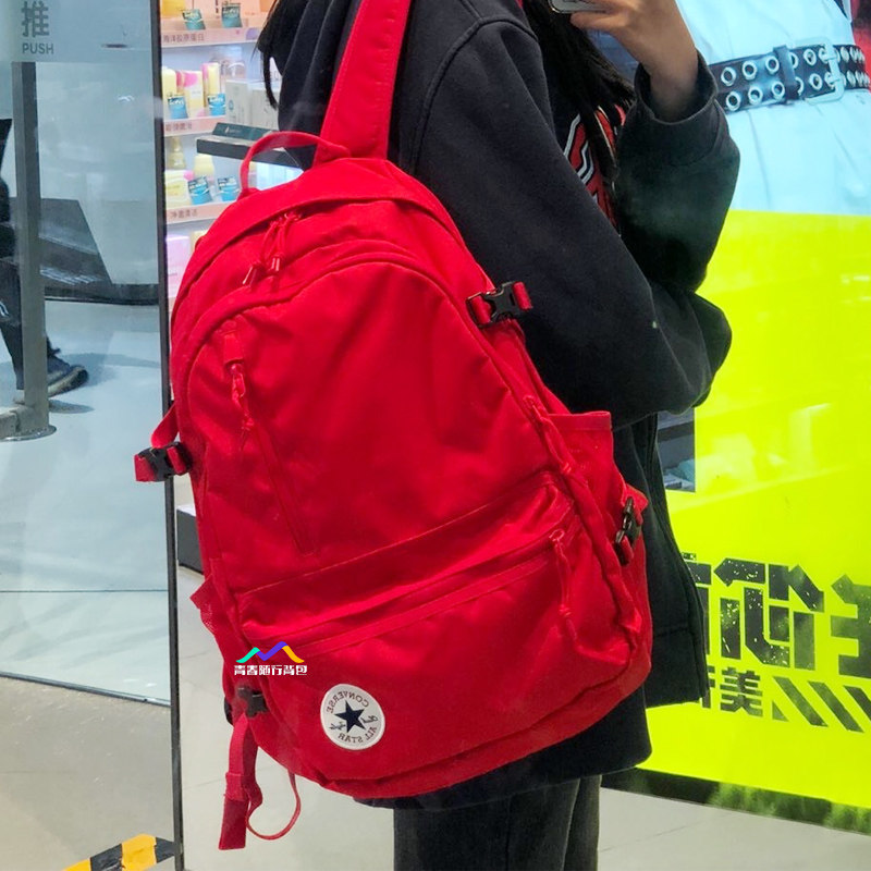 Converse Backpack Genuine School Bag for Female Students and Male Backpackers Simple Canvas Bag Sports Lightweight Travel Bag Red