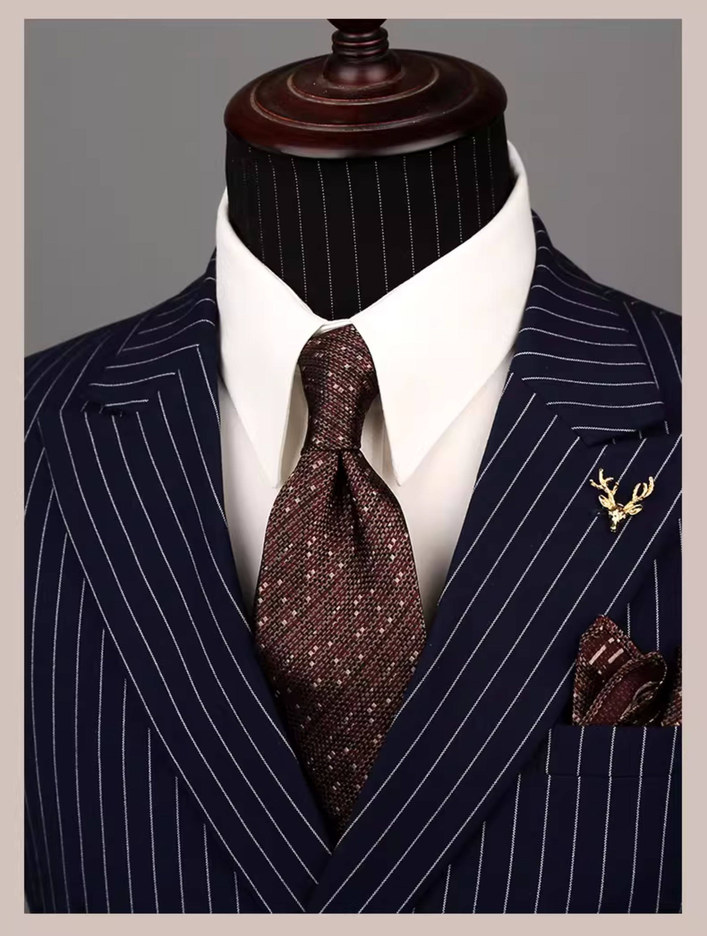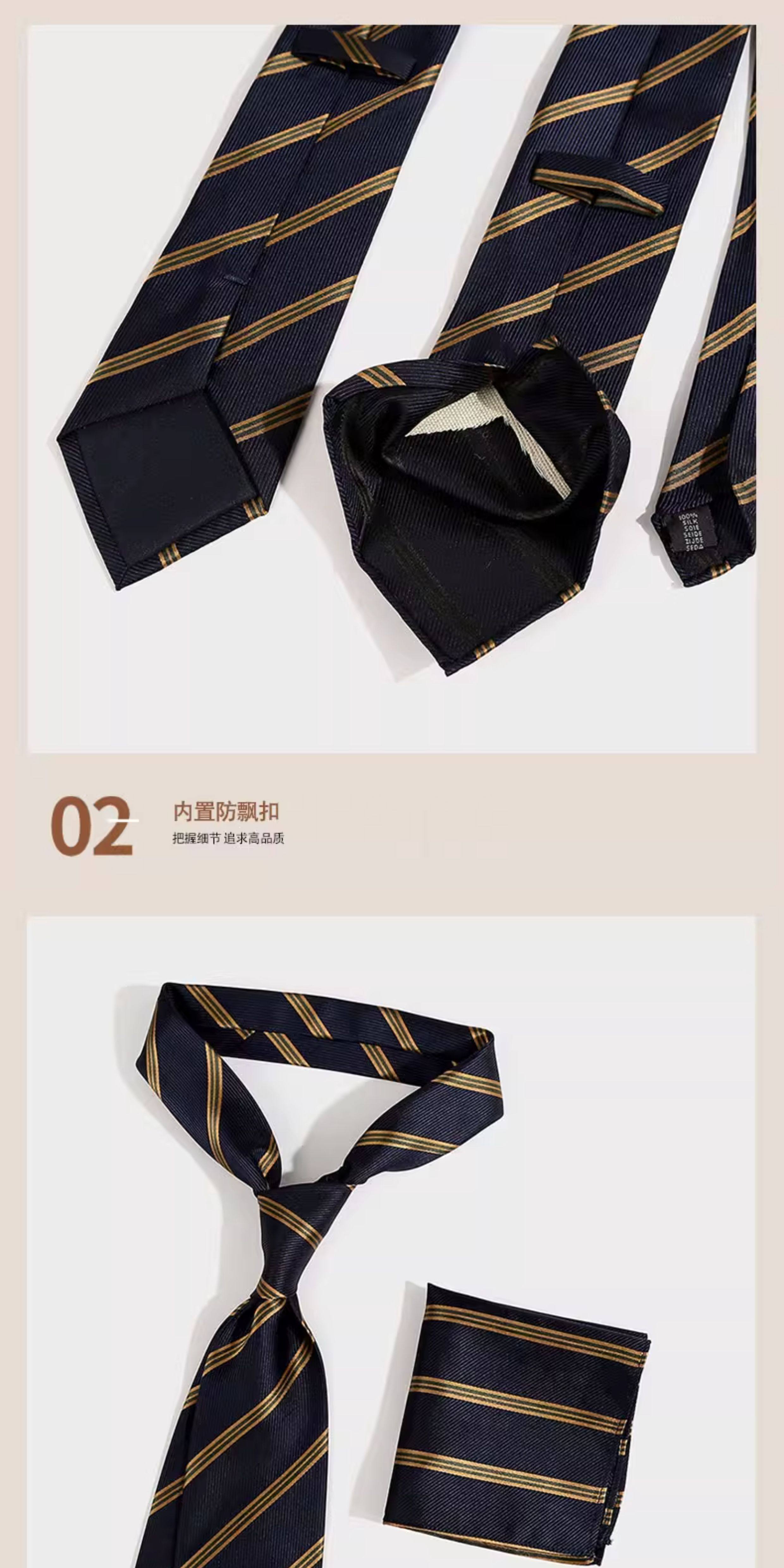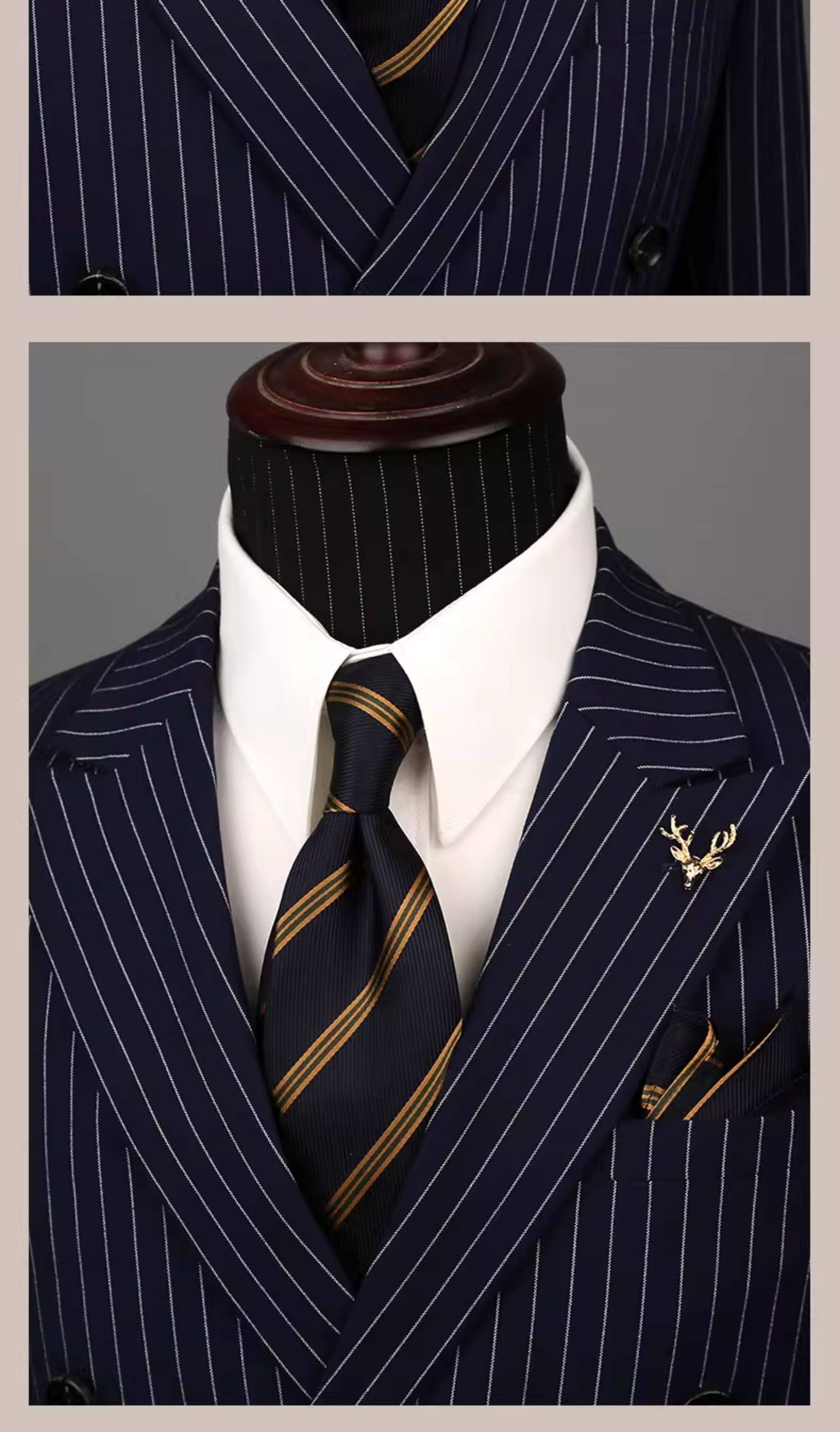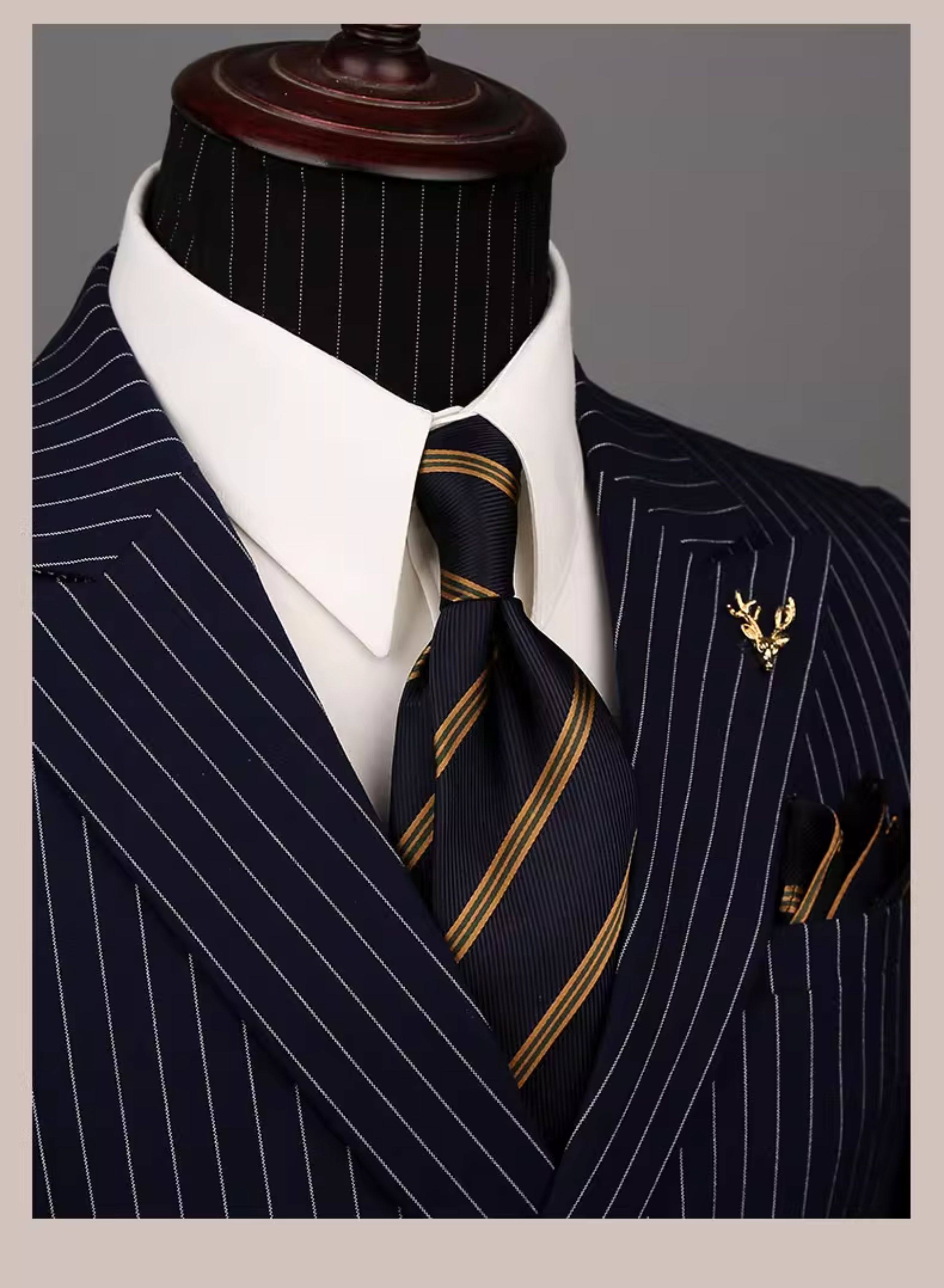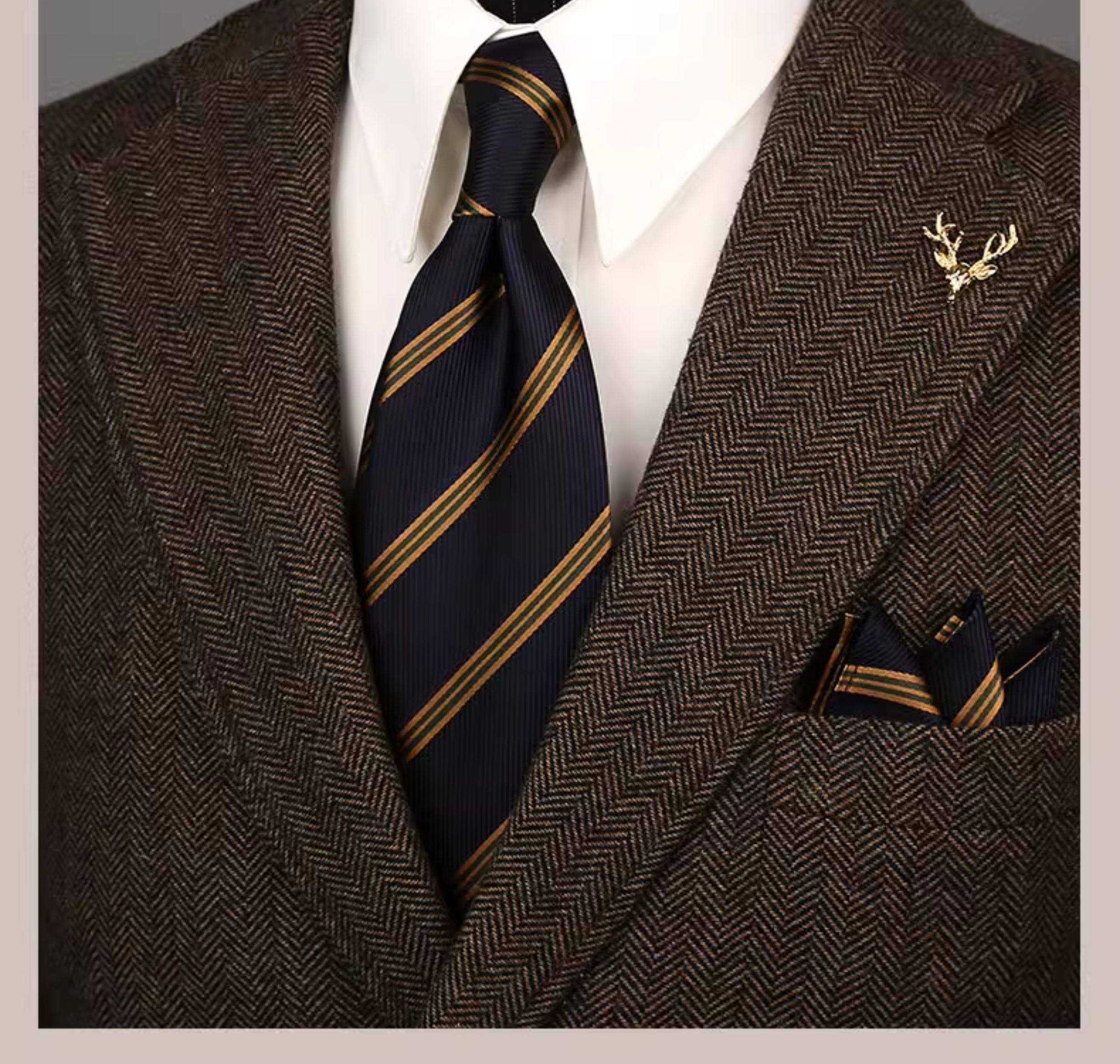 Italian-Style Wide Wool and Silk Tie for Men 70% off Rolled Edge High-End Formal Business Dark Blue Striped Gift Box Set