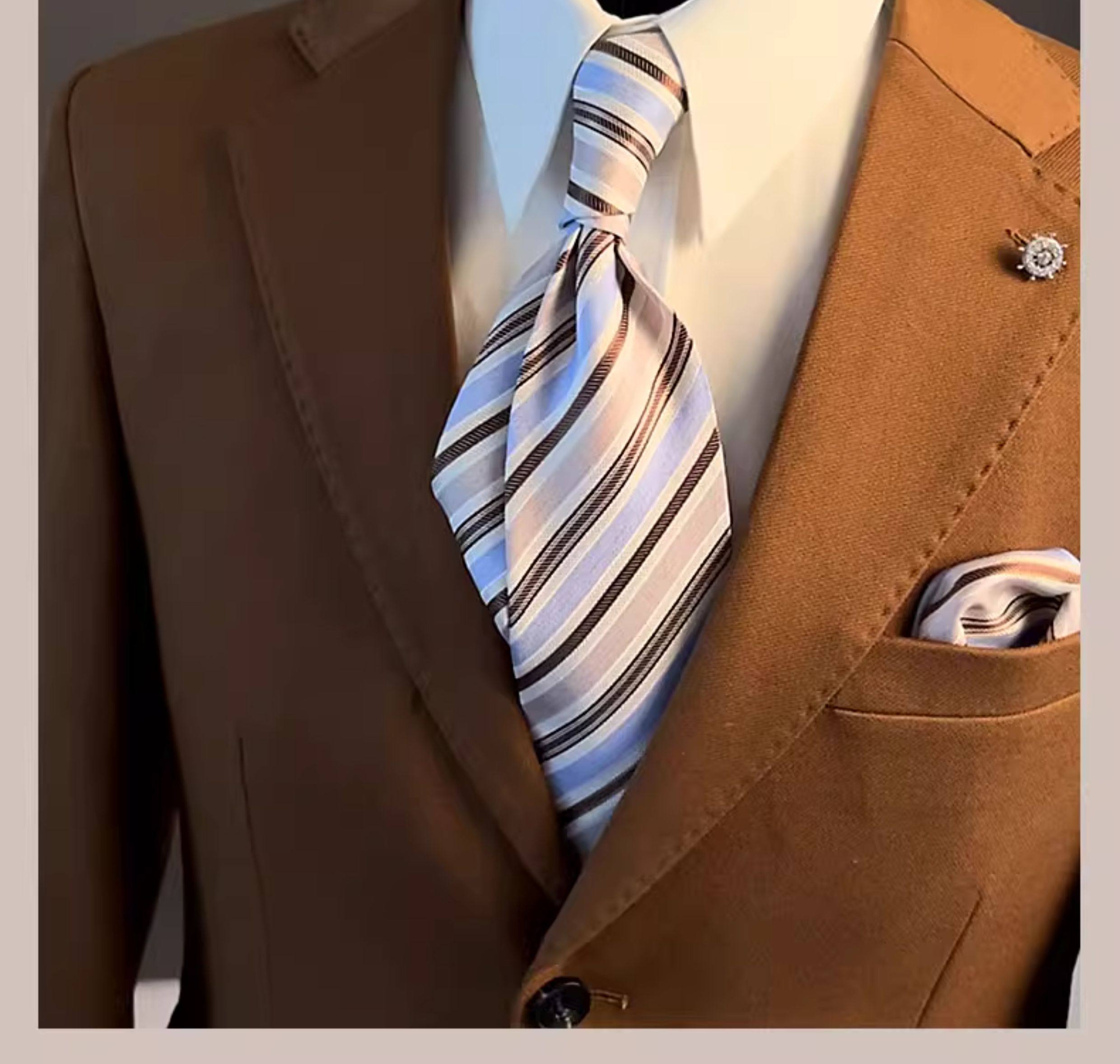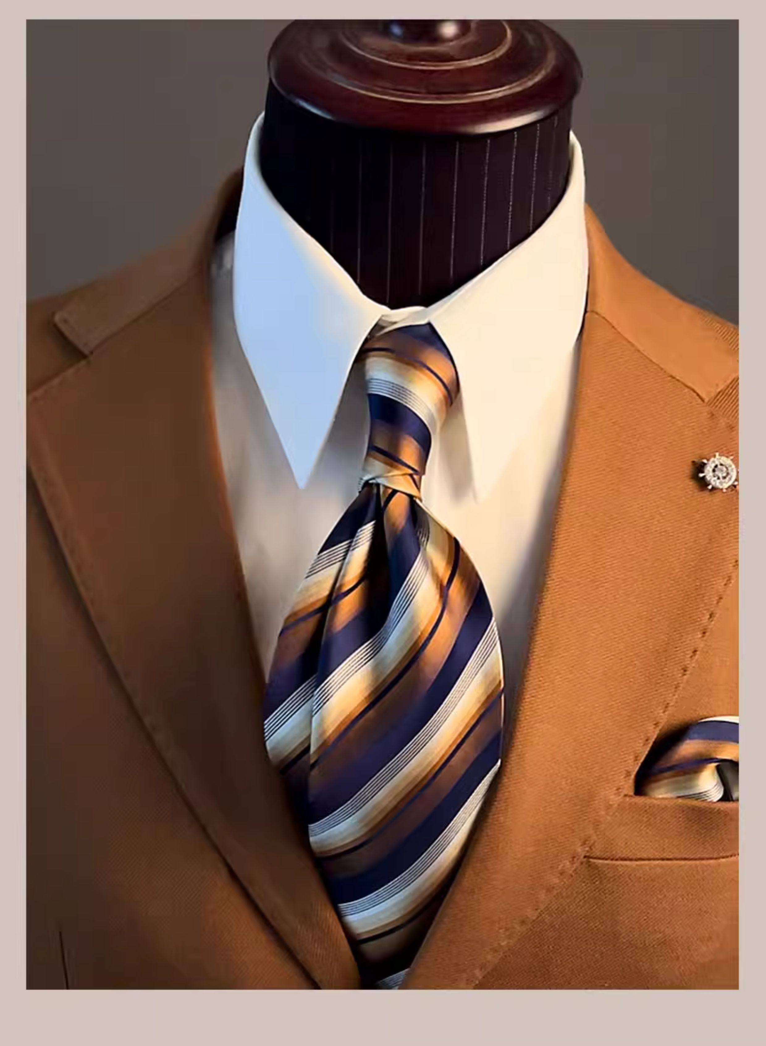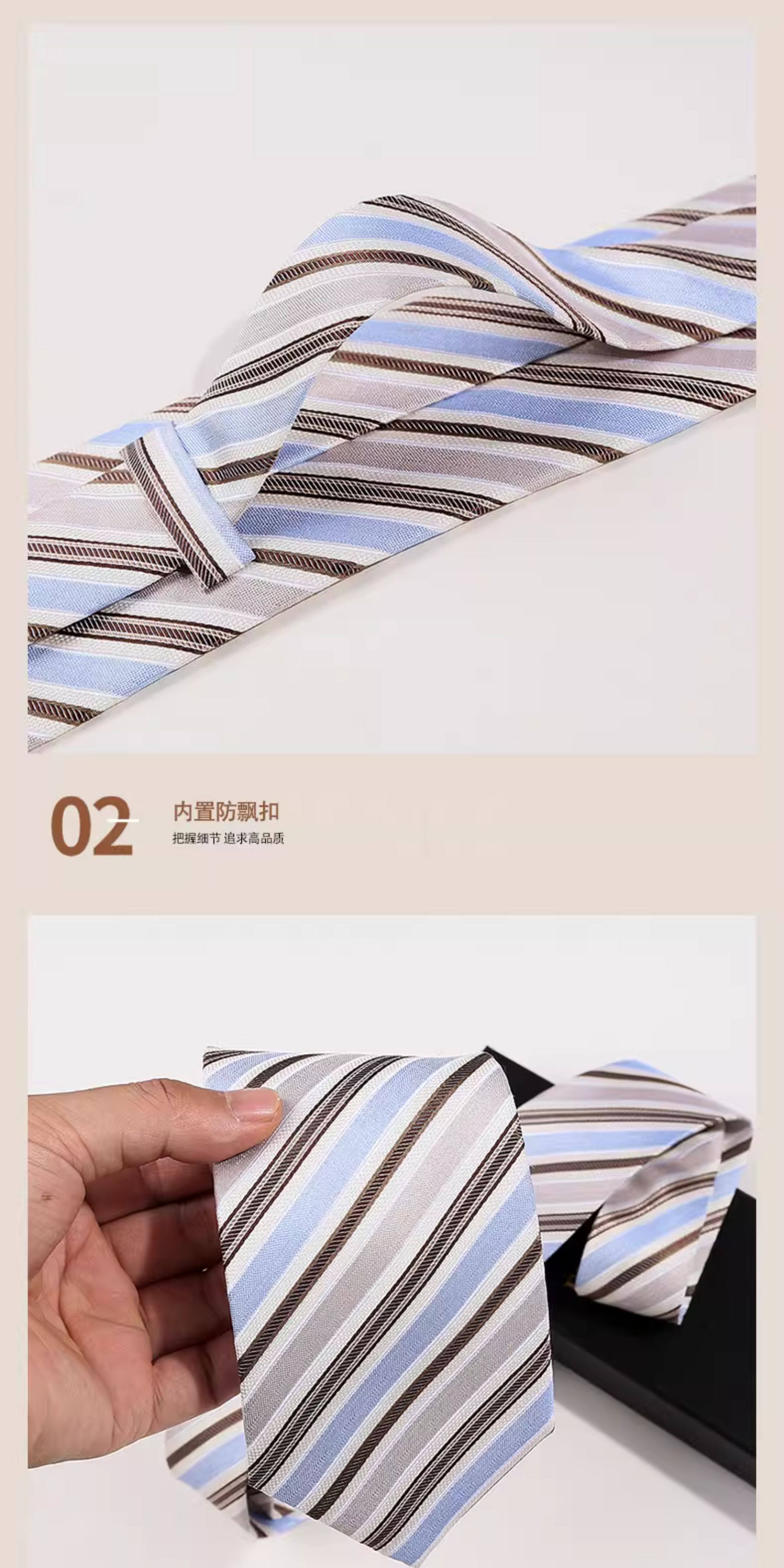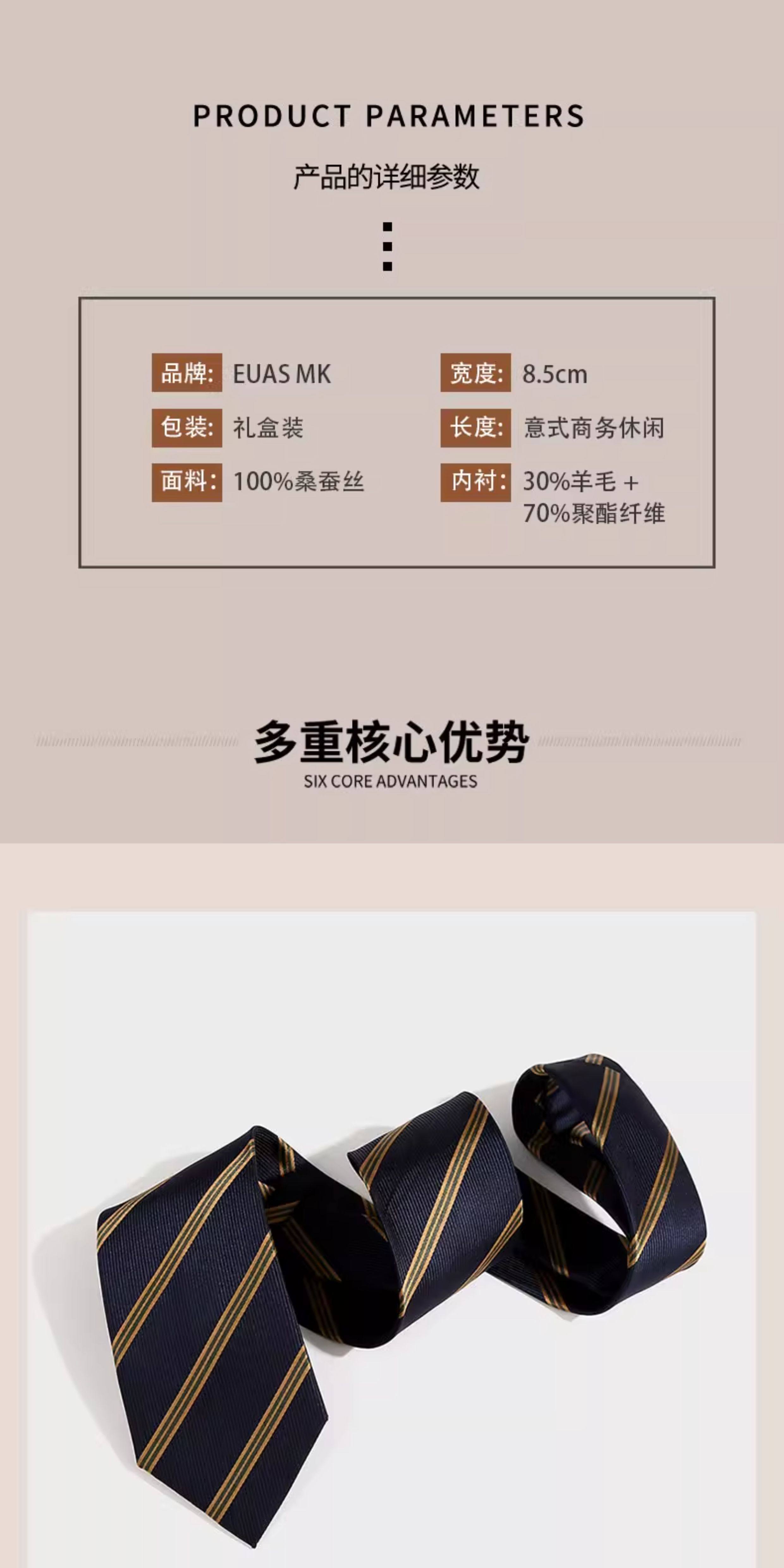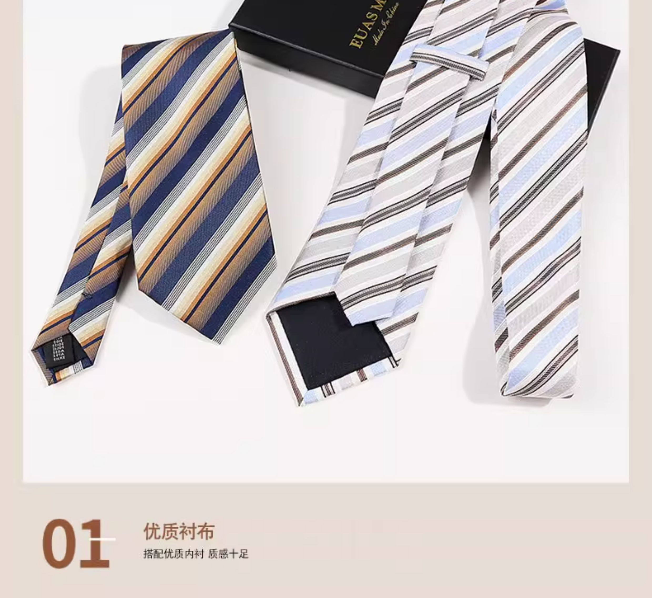 Italian-Style Wide Wool and Silk Tie for Men 70% off Rolled Edge High-End Formal Business Dark Blue Striped Gift Box Set