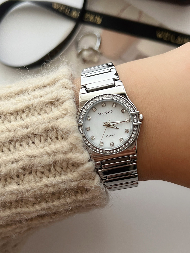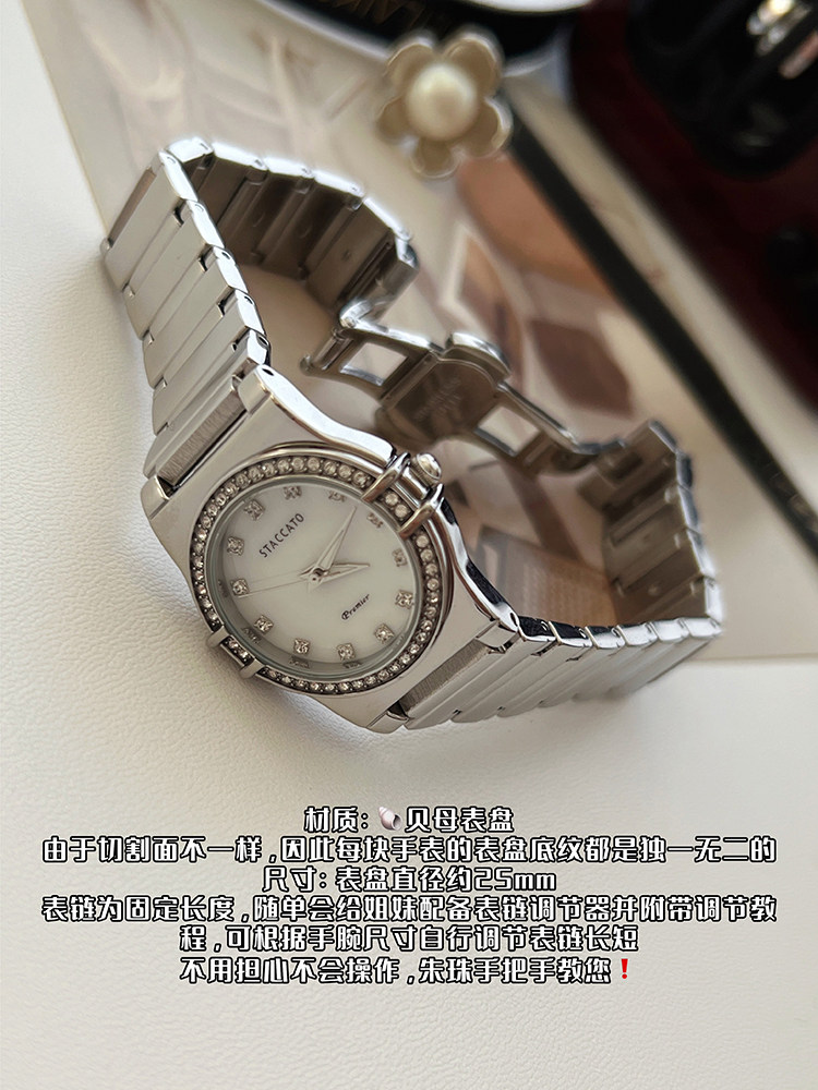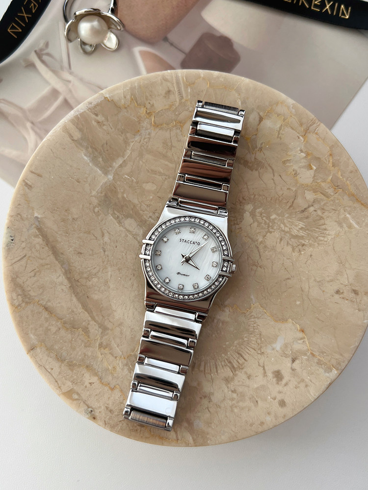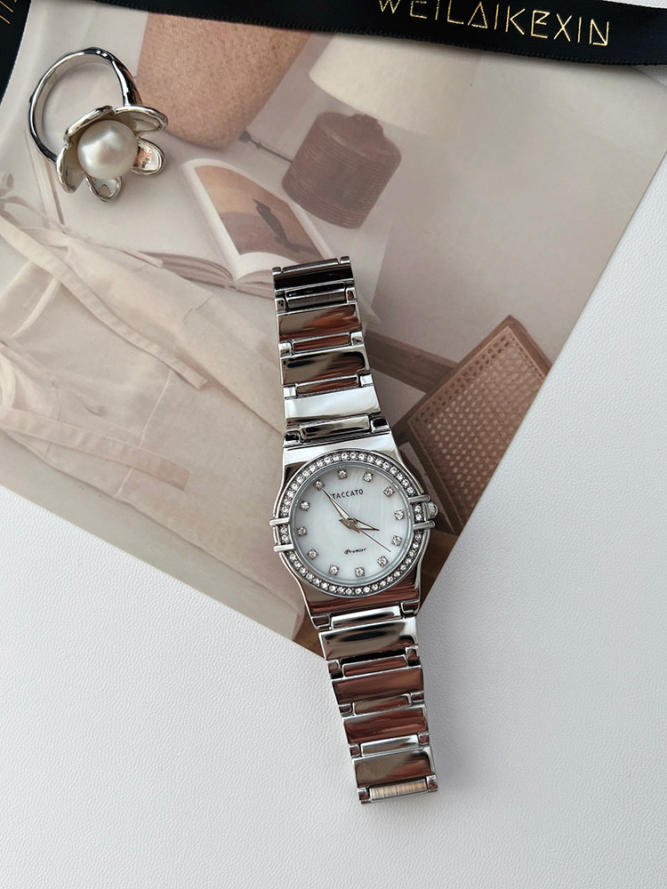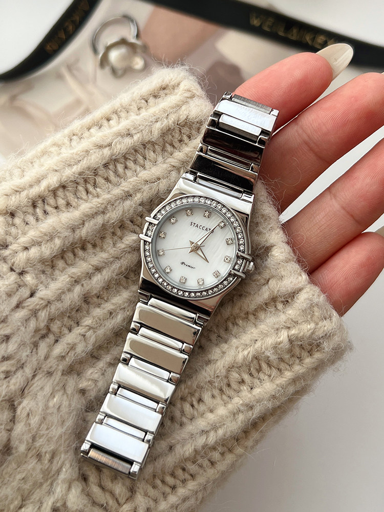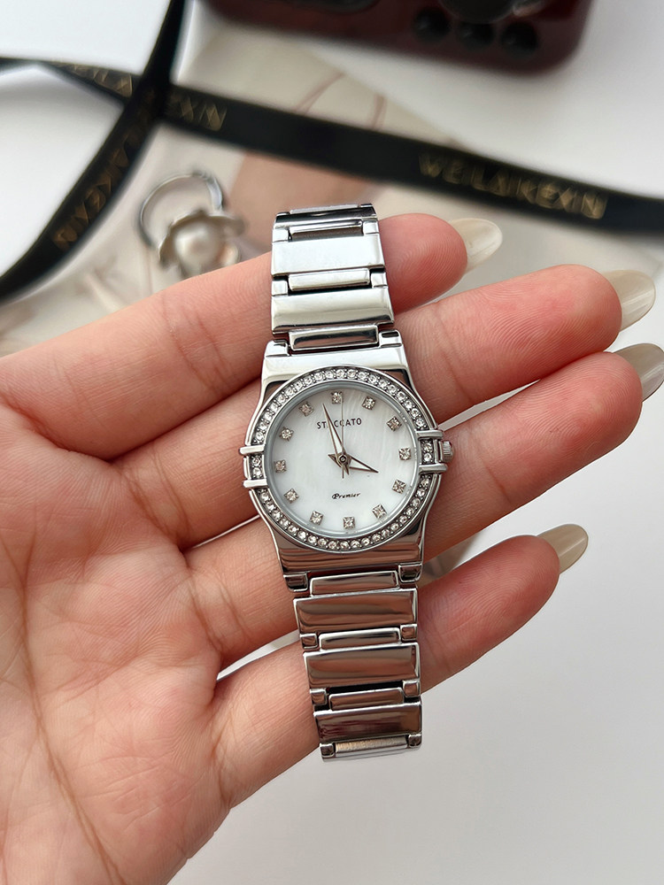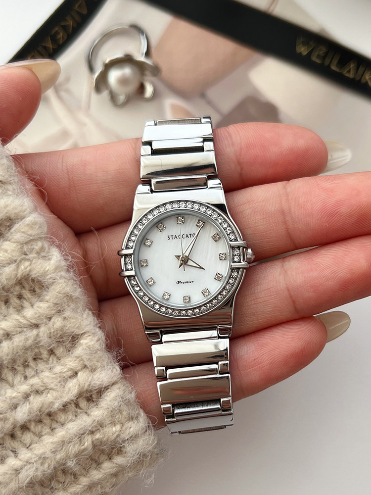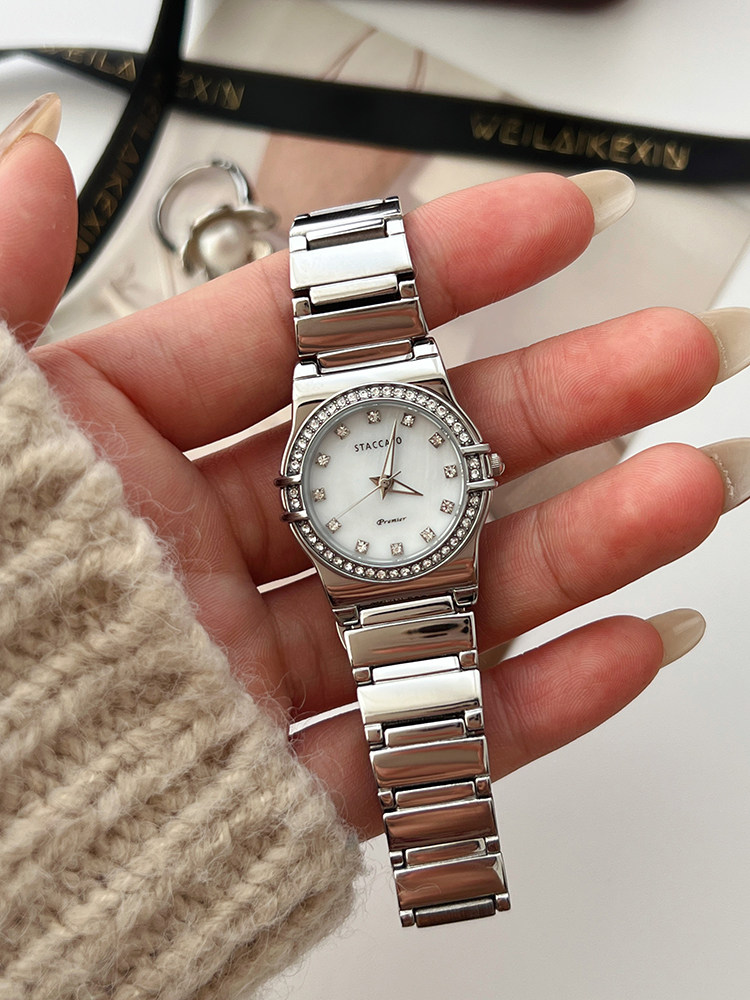 South Korea Imported Staccato Niche High-End Diamond Watch Feminine Elegant Mother-Of-Pearl Dial Ladies Steel Band Watch