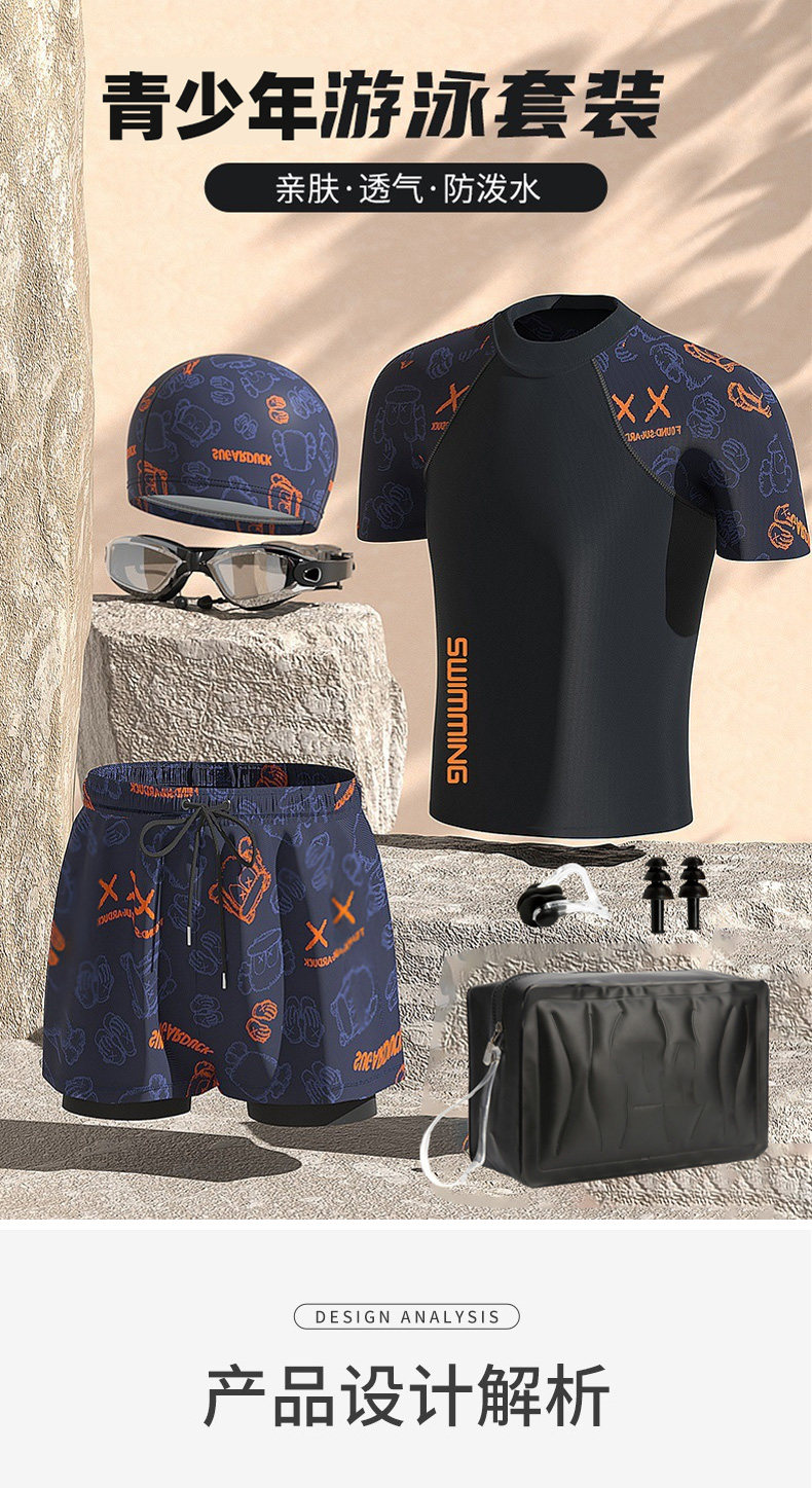Teenagers, Big Boys, Fat Boys, Professional Training Swimwear, Swim Trunks, Anti-Embarrassment, High School and Junior High School Students' Swimming Suits, Large Size