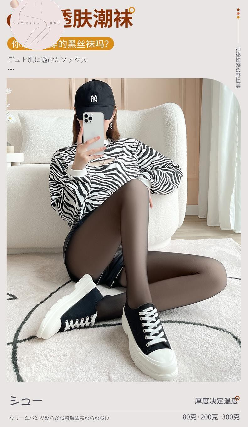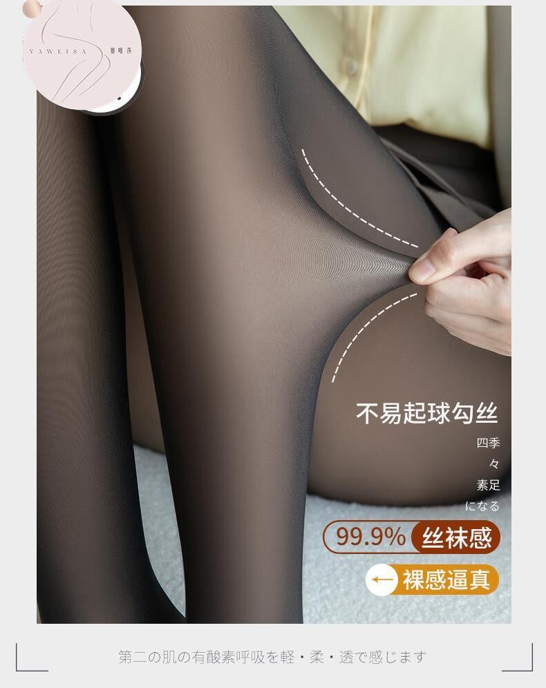 Black Sheer Pantyhose for Women, Fleece-Lined, Thick, One-Piece, Foot-Covering, Fake Sheer, Flight Attendant Gray, Plus Size, 100kg Stockings