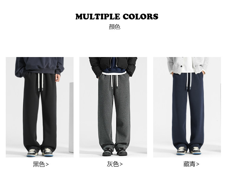 Men's Winter Thickened Lamb Fleece Straight-Leg Sweatpants, Fleece-Lined Sports Pants, Loose Casual Long Pants