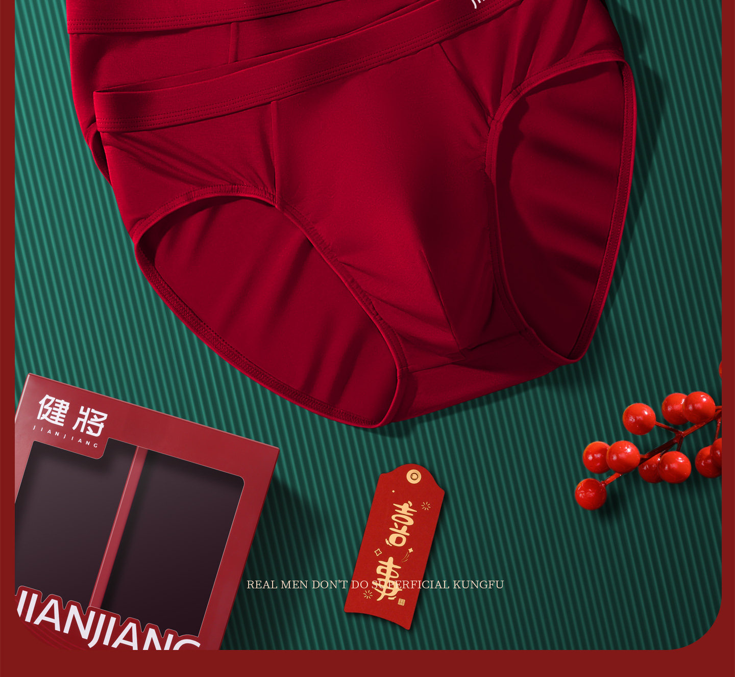 Athlete's Zodiac Year Burgundy Men's Briefs Modal Ice Silk Wedding Gift Red Shorts for Men Born in the Year of the Horse