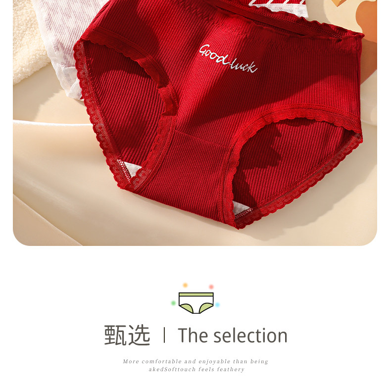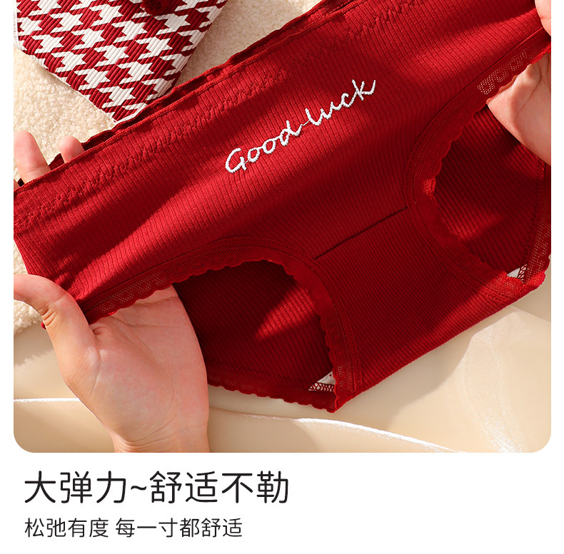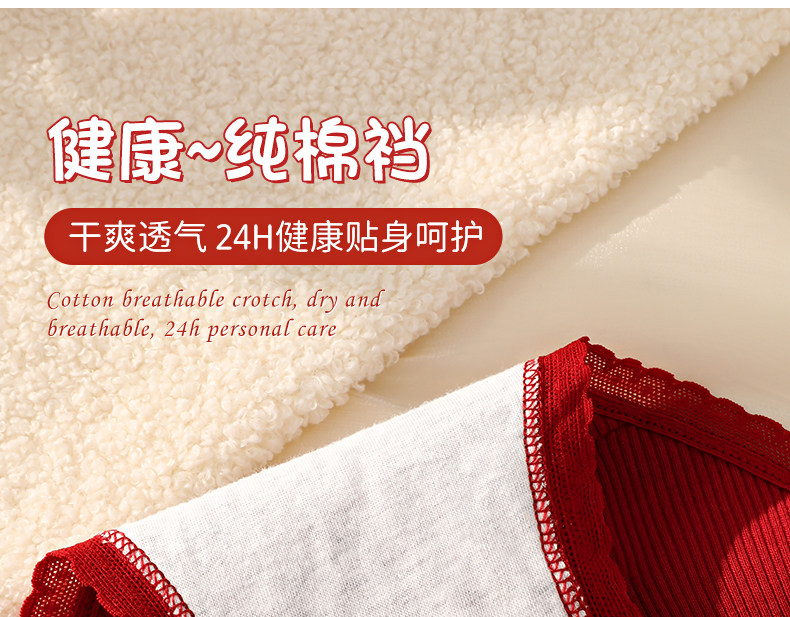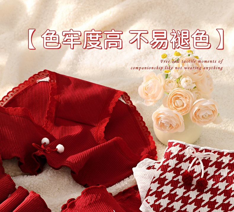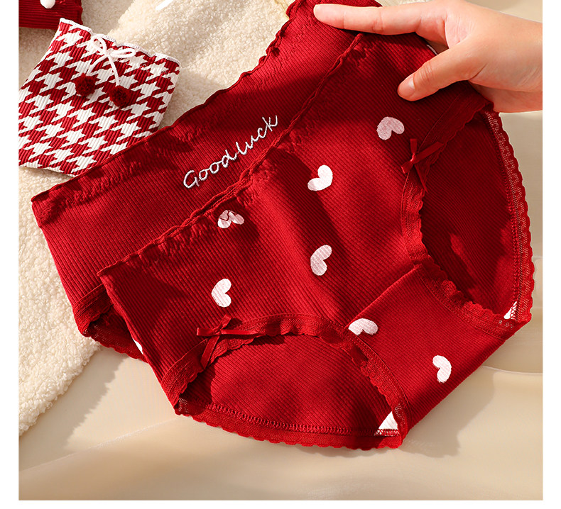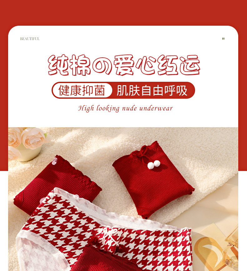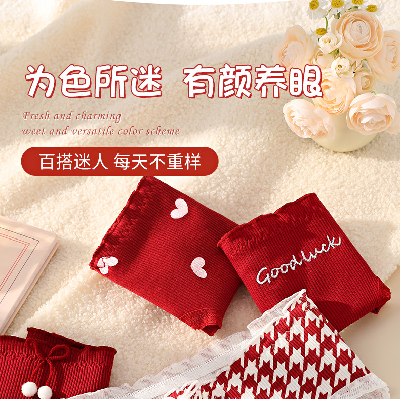 Red Cotton Antibacterial Underwear for Women in Their Zodiac Year, New Style for the Year of the Horse, Suitable for Weddings, Young Ladies' Triangle Briefs for Winter