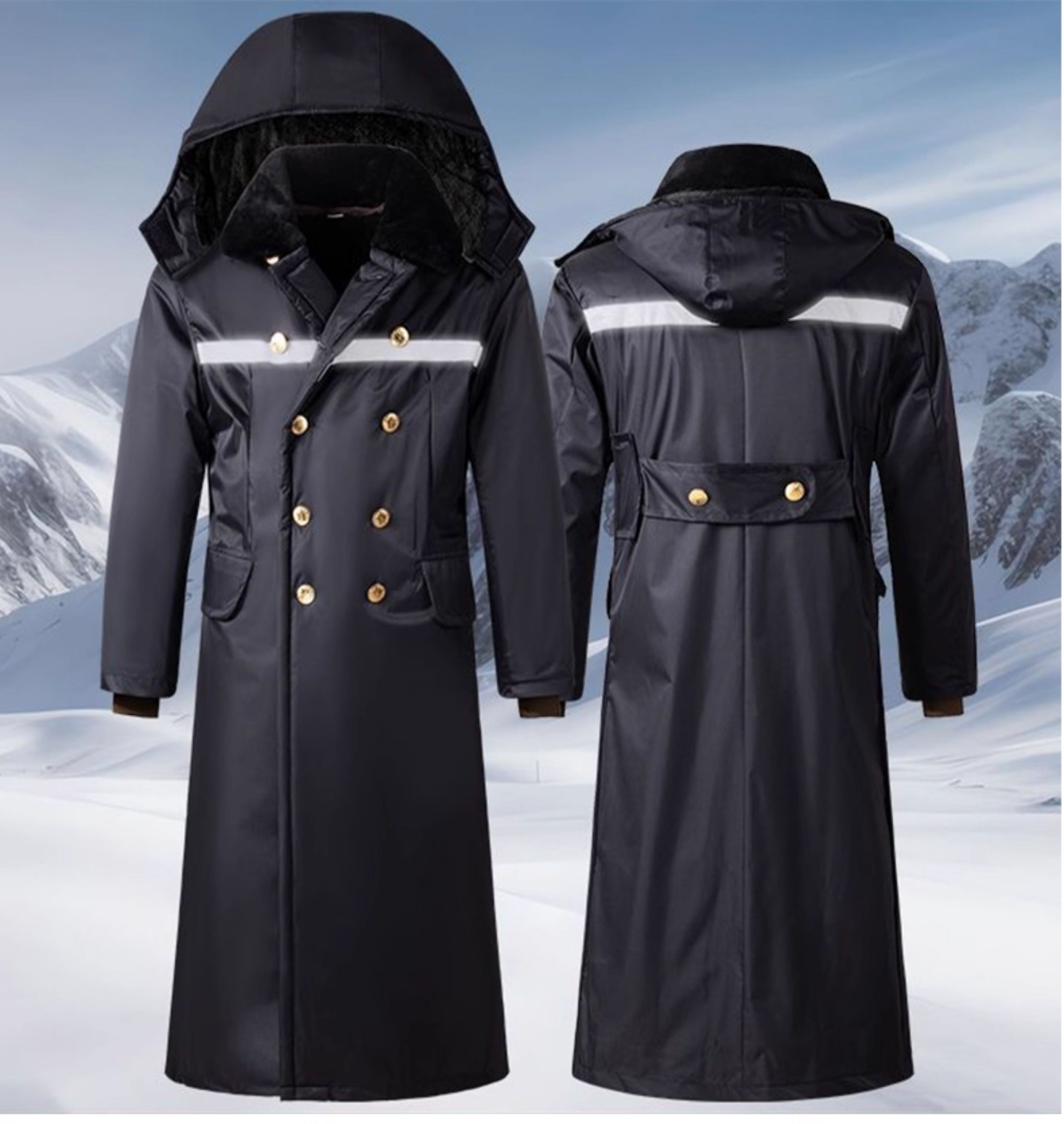 Men's Military Coat, Winter Thickened and Fleece-Lined, Long Style, Security Guard Autumn and Winter Clothing, Cold-Proof Clothing, Northeast Cotton Jacket, Old-Fashioned Military Cotton Coat