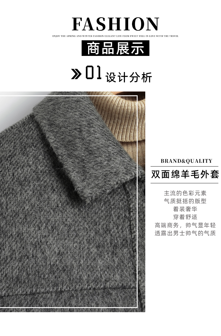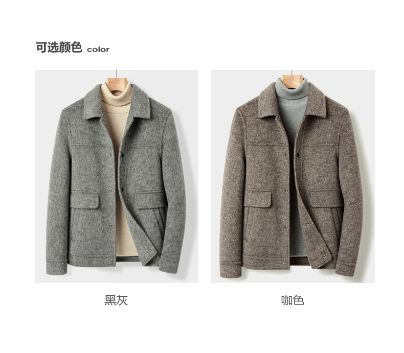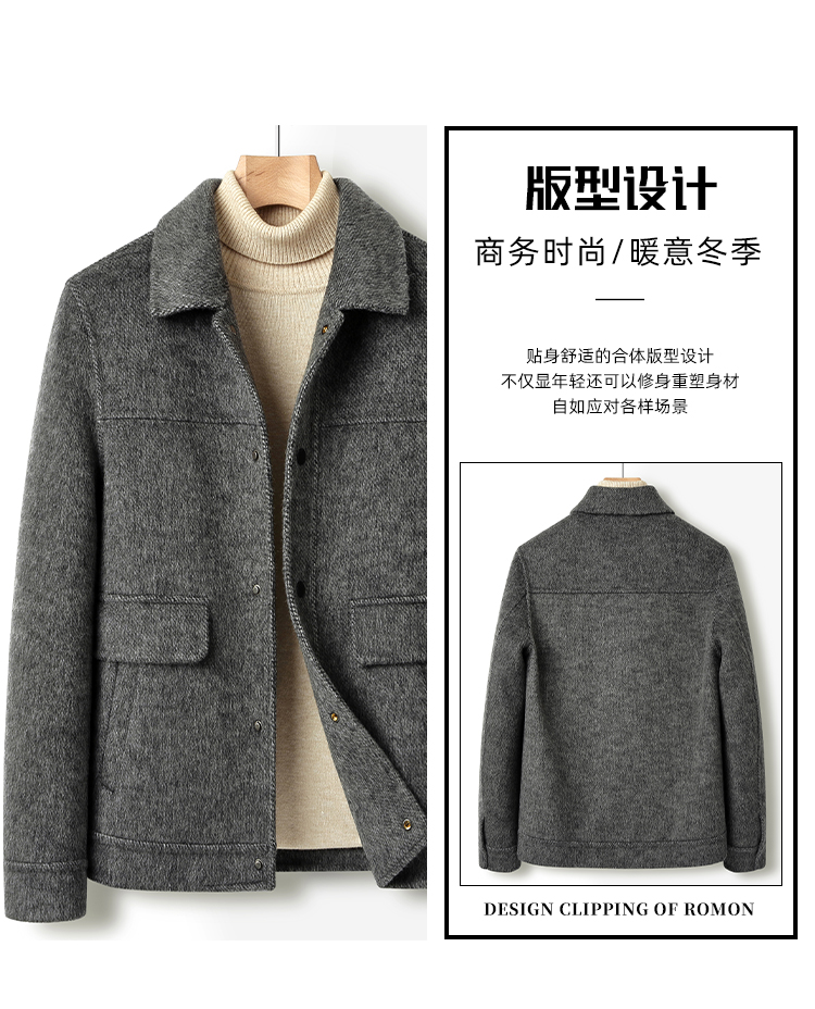 Romon Double-Sided Woolen Coat for Men, Winter Thickened down Lining, Alpaca Wool Coat, Men's Short Woolen Jacket
