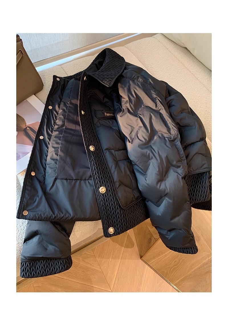 Trendy and Stylish Warm Cotton Coat with a Turn-Down Collar for Petite Women, Fashionable and Versatile for Autumn and Winter, Suitable for Both Men and Women
