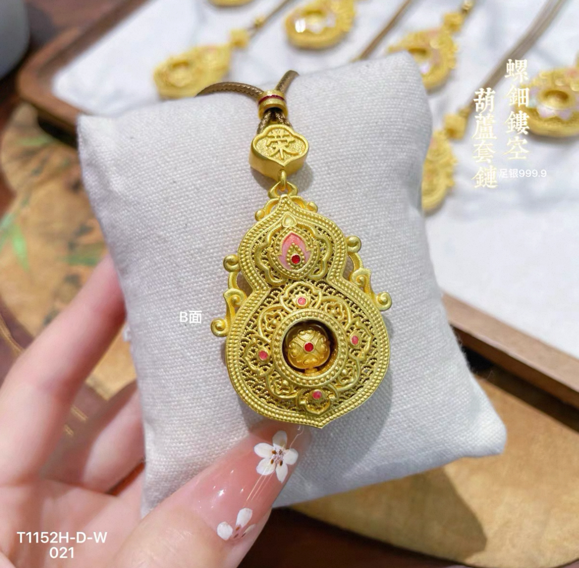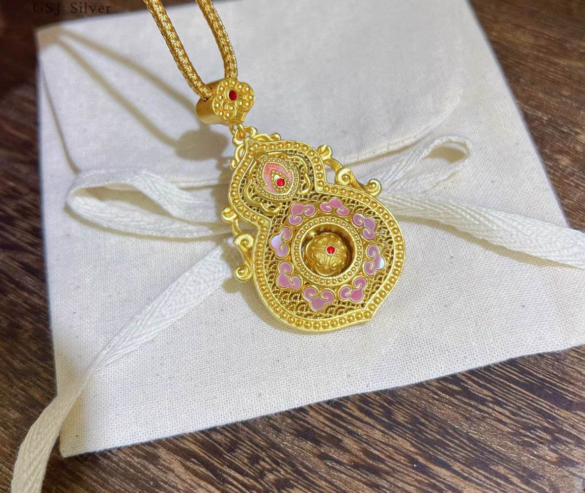 Four Joys of Life Gourd 9999 Pure Silver Gold-Plated Enamel Pure Silver Pendant for Women New Chinese Style Silver Jewelry