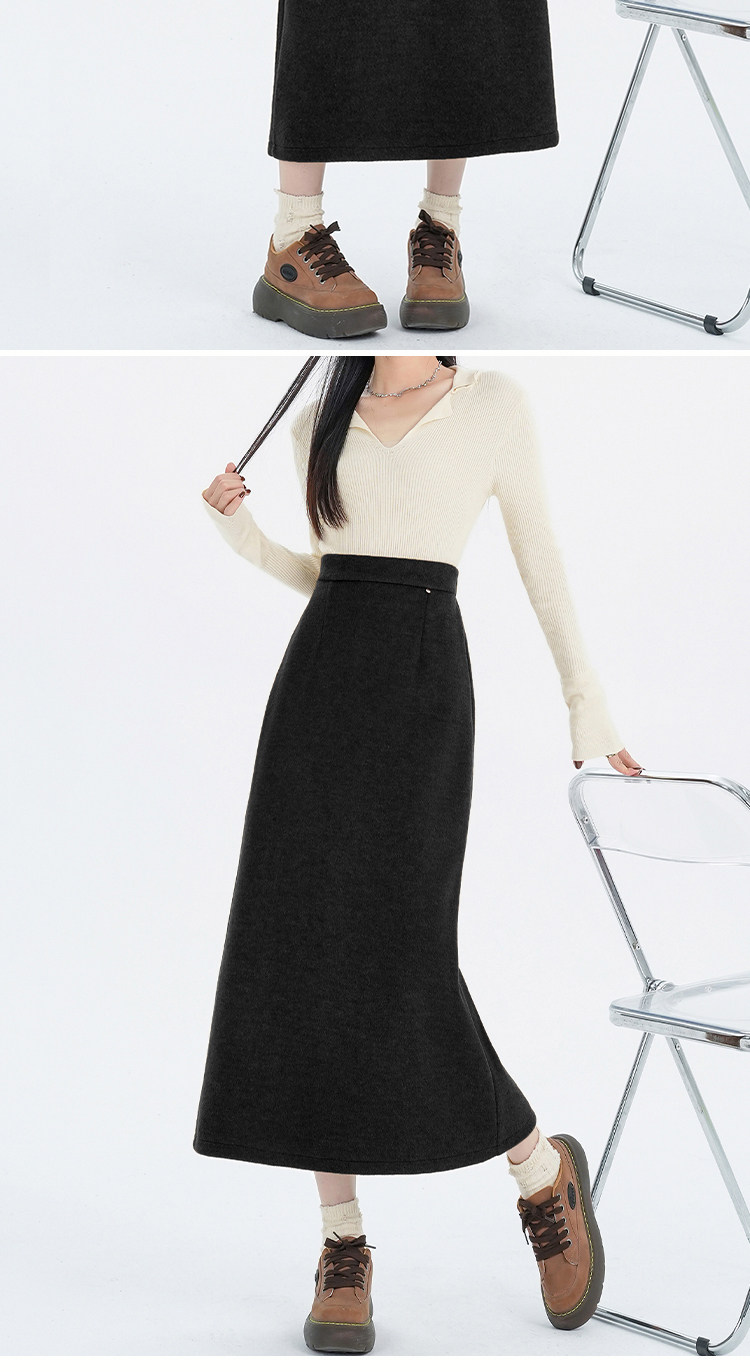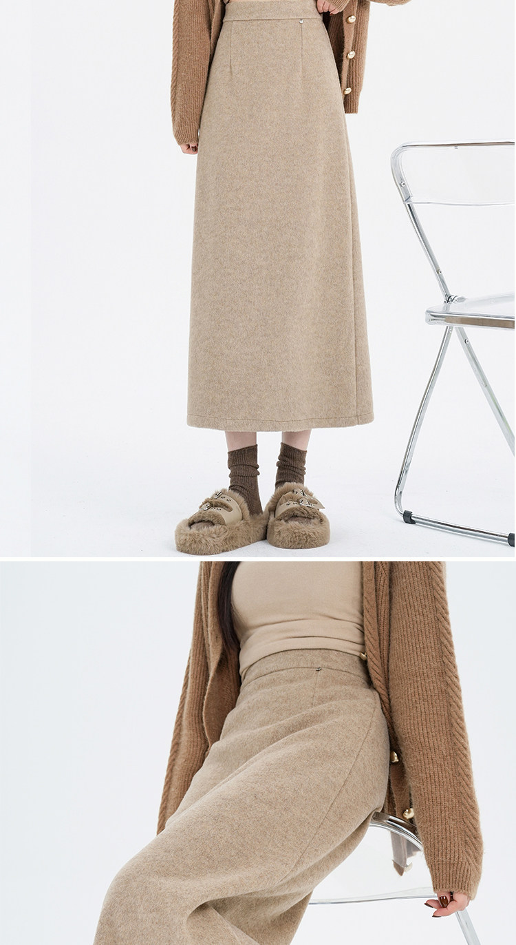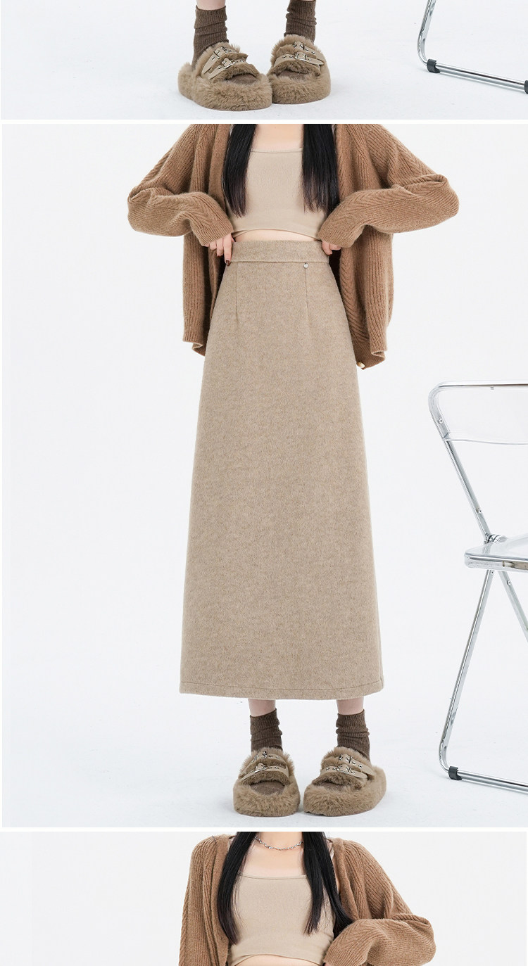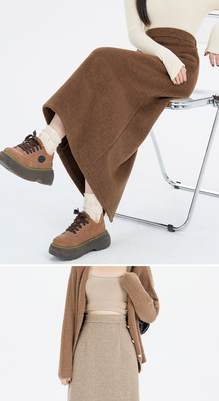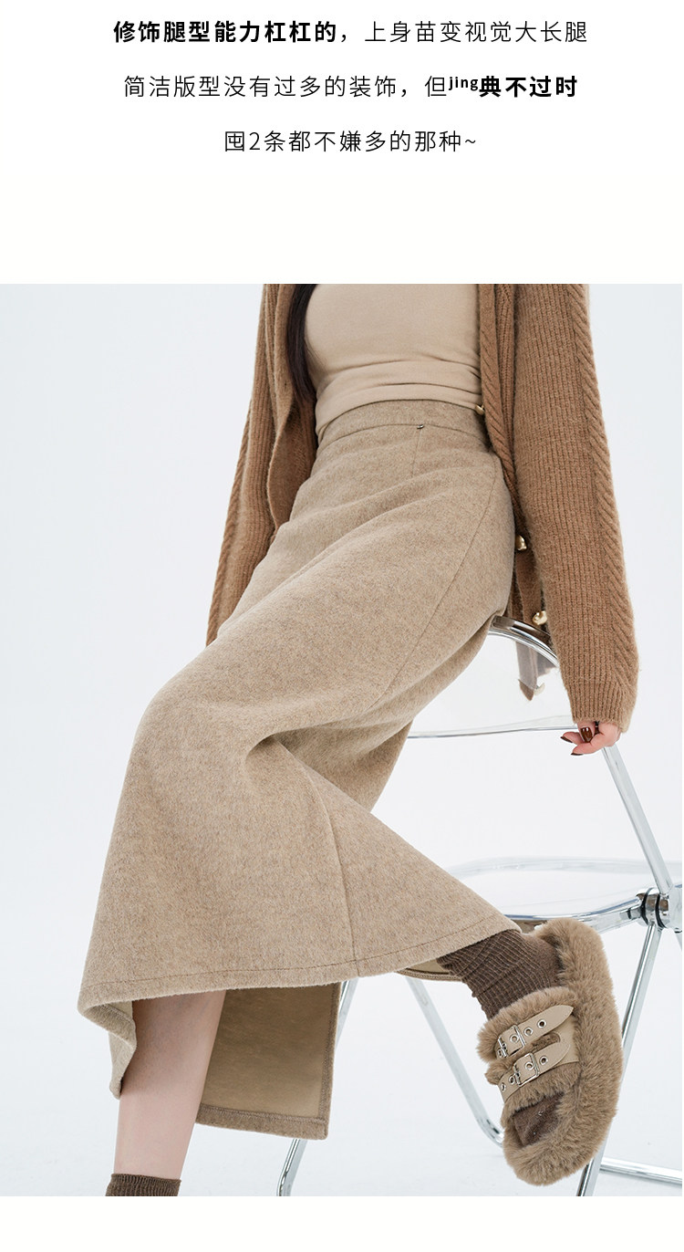 Khaki Straight Skirt for Women, Spring, Autumn and Winter, High-Waisted, Slit, Hip-Hugging, A-Line Skirt, Mid-Length Cashmere Woolen Skirt