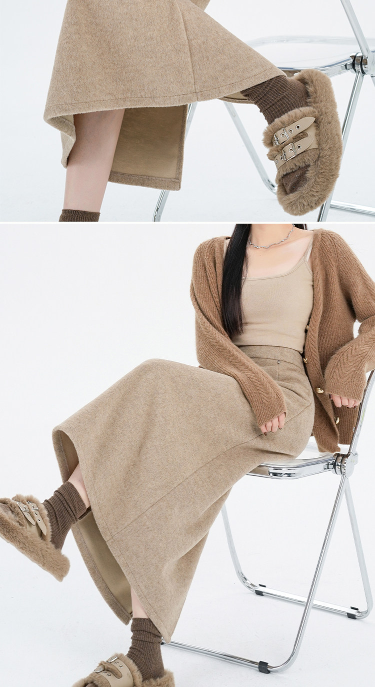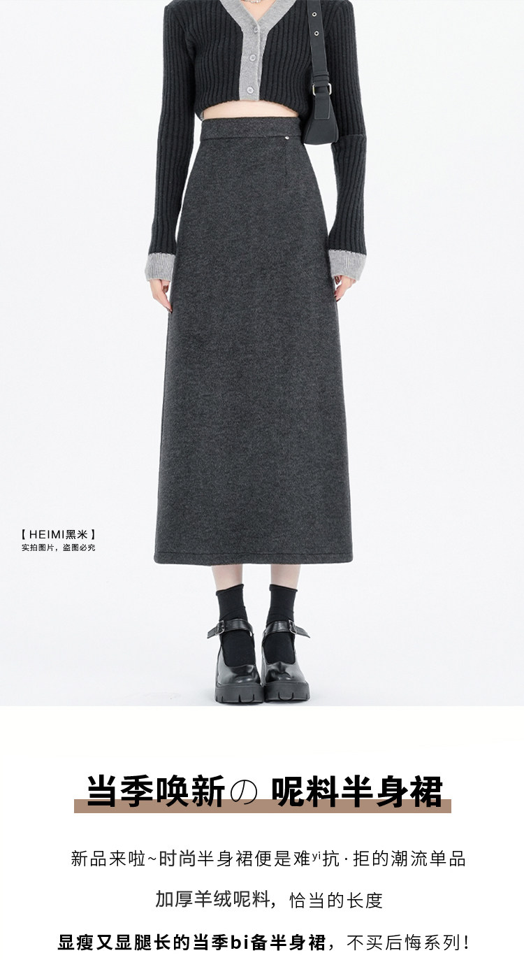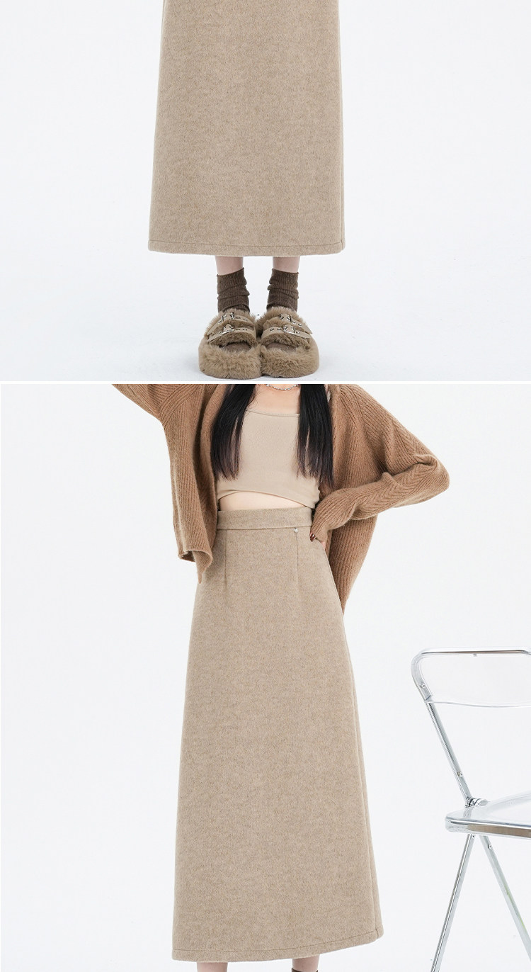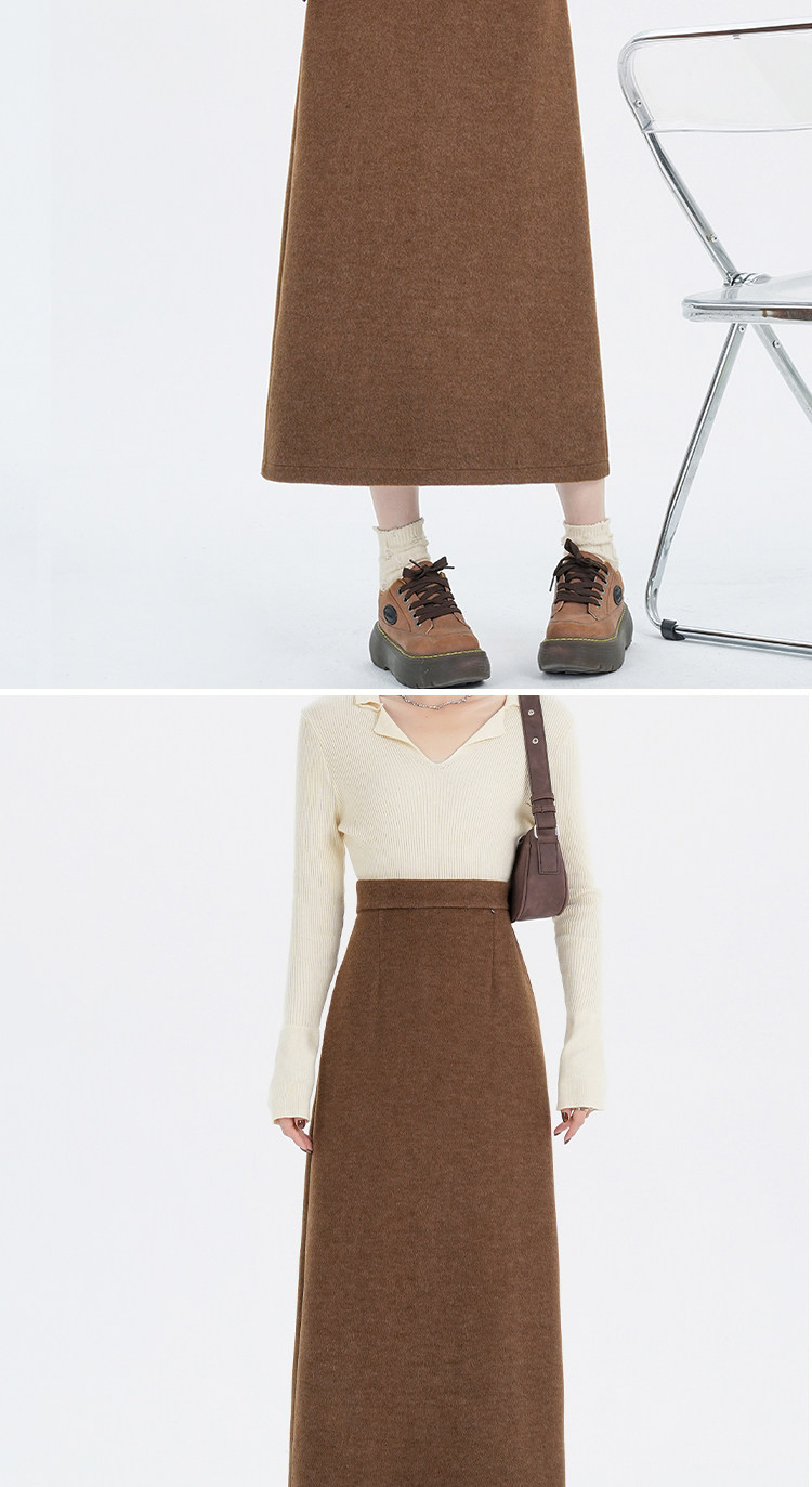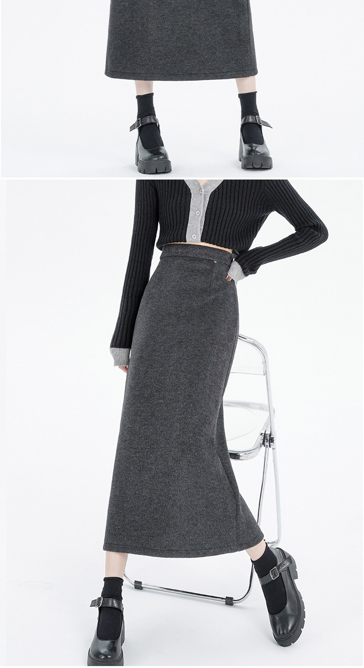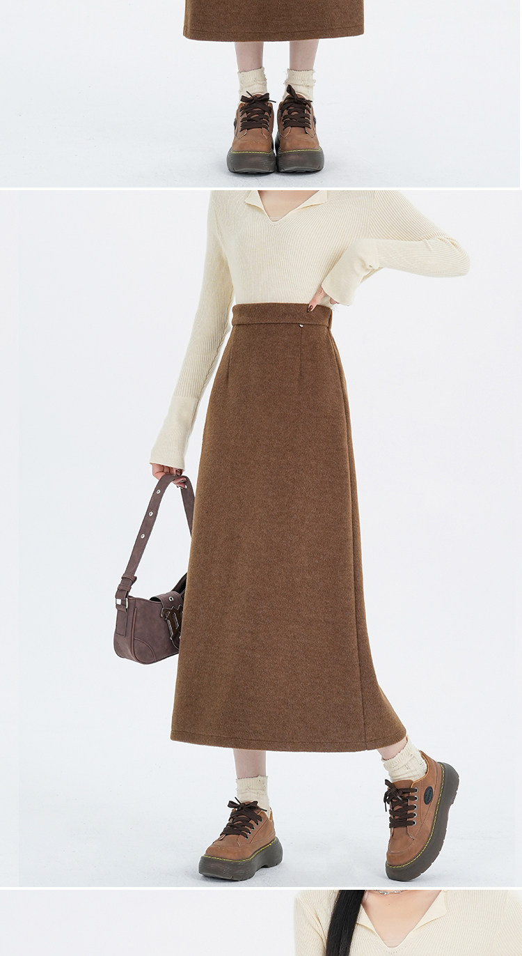 Khaki Straight Skirt for Women, Spring, Autumn and Winter, High-Waisted, Slit, Hip-Hugging, A-Line Skirt, Mid-Length Cashmere Woolen Skirt