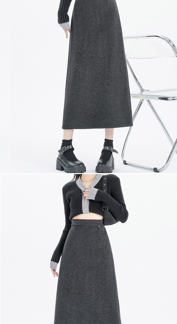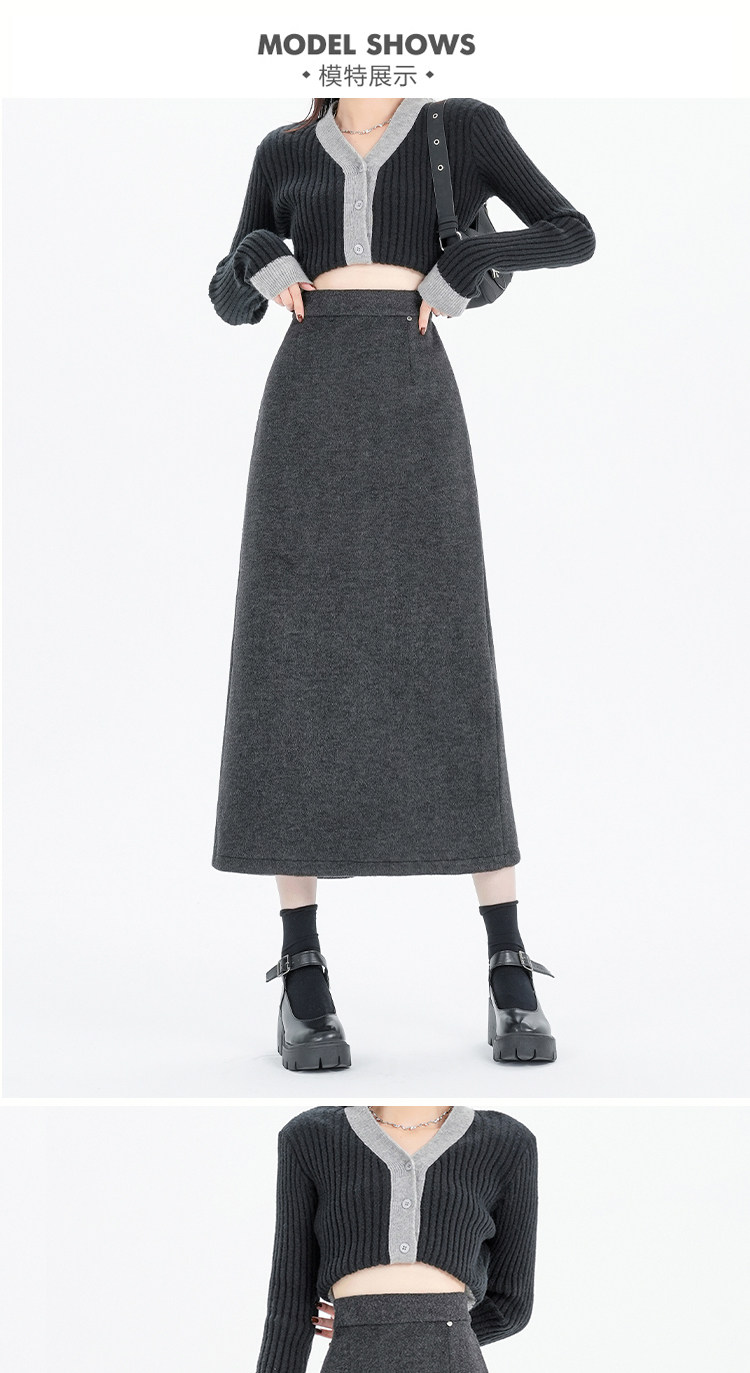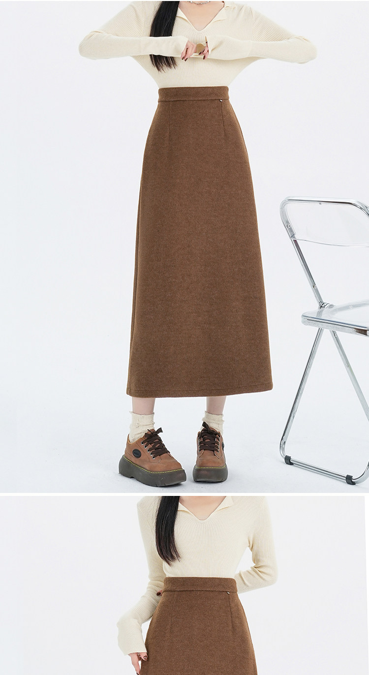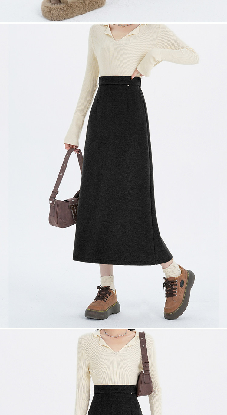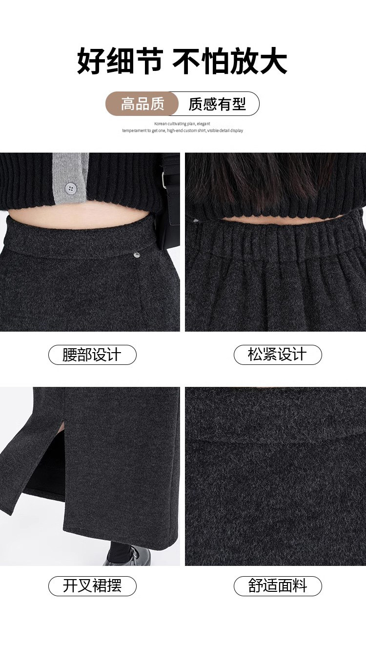 Khaki Straight Skirt for Women, Spring, Autumn and Winter, High-Waisted, Slit, Hip-Hugging, A-Line Skirt, Mid-Length Cashmere Woolen Skirt