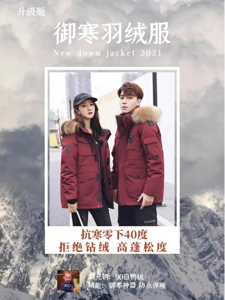 Northeast down Jacket for Men and Women, Winter Warm Couple Style Coat, Suitable for Snowy Areas Like Mohe, Harbin, and Cold Temperatures as Low as Minus 40 Degrees