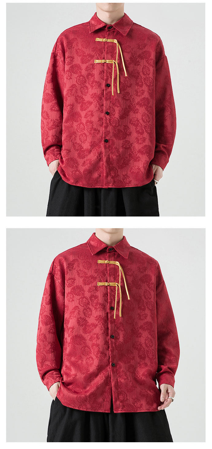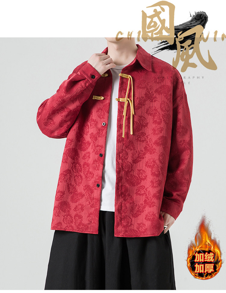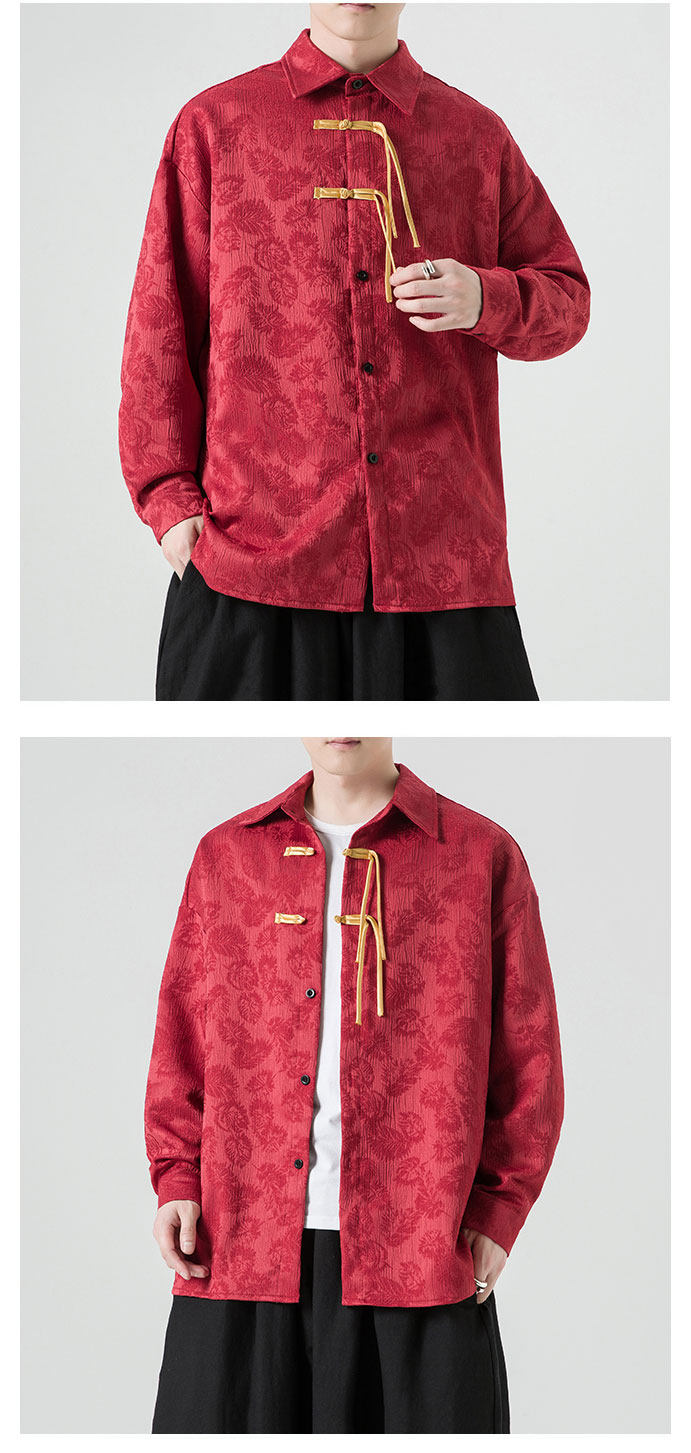 New Chinese Style Men's Clothing, Chinese Style Tang Suit Men's Red Shirt Jacket, Hanfu Top, Large Size Shirt, New Year Clothes