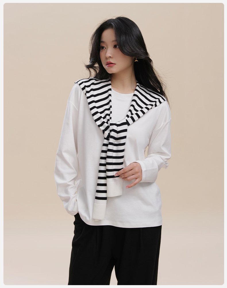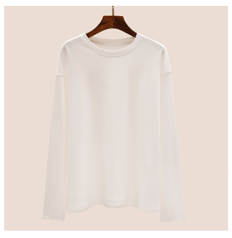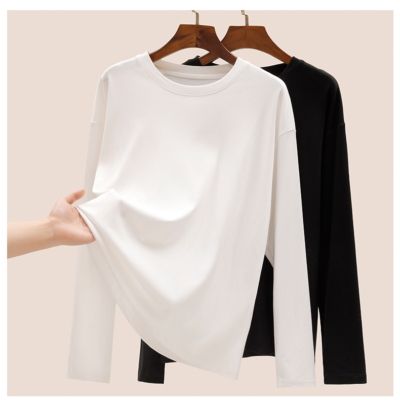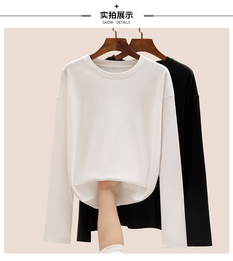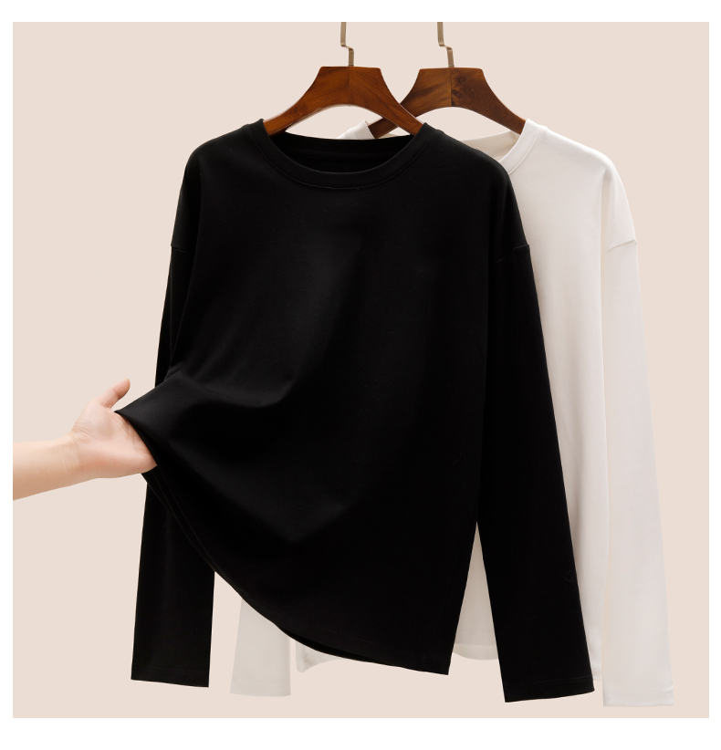 White Long-Sleeved T-Shirt Base Layer for Women, Pure Cotton Sweatshirt, 2025 New Autumn and Winter Fleece-Lined High-End Top